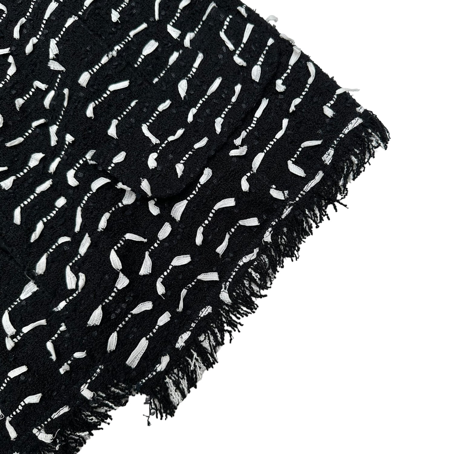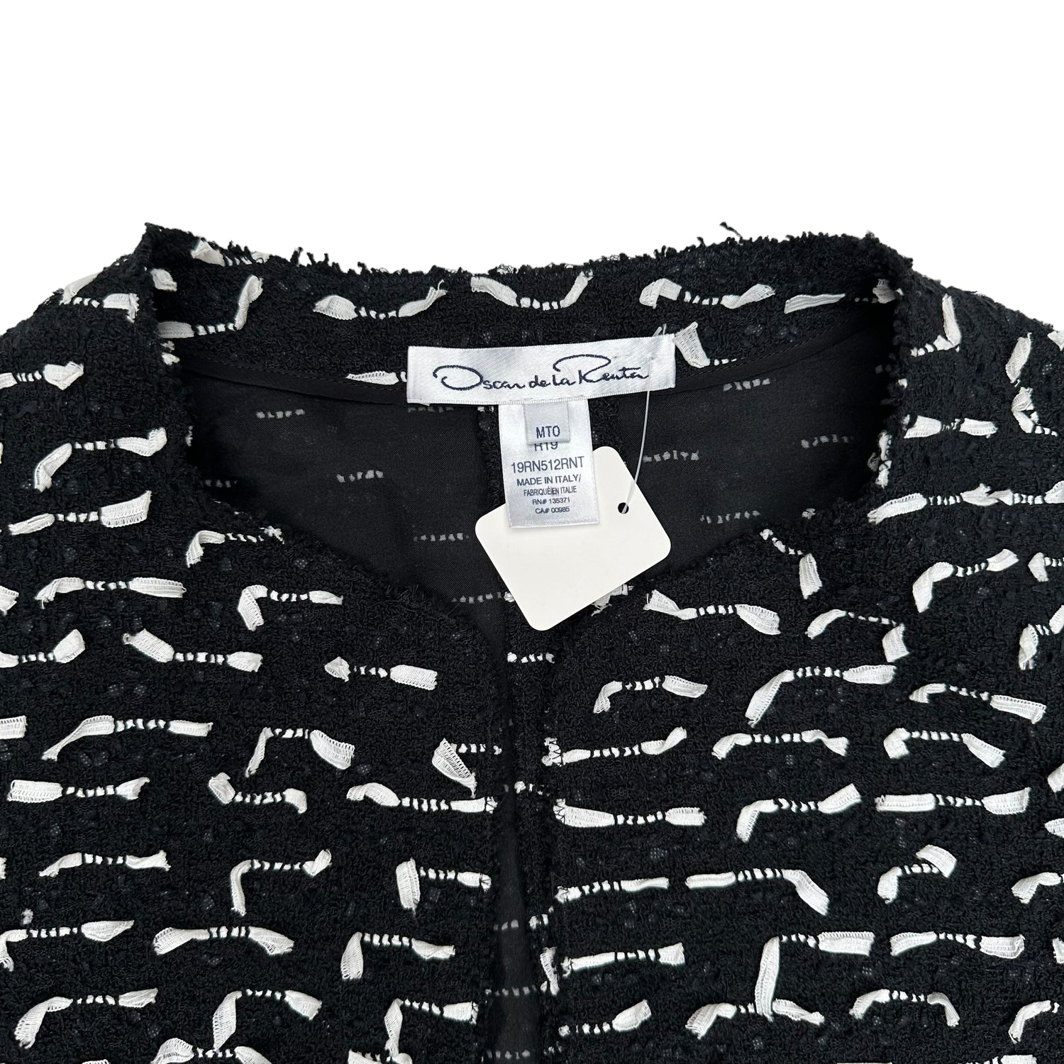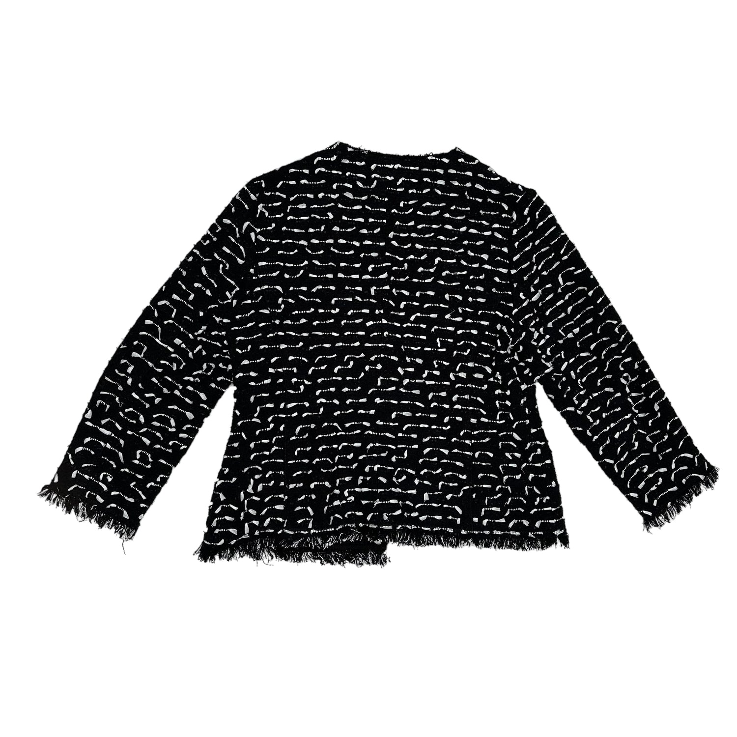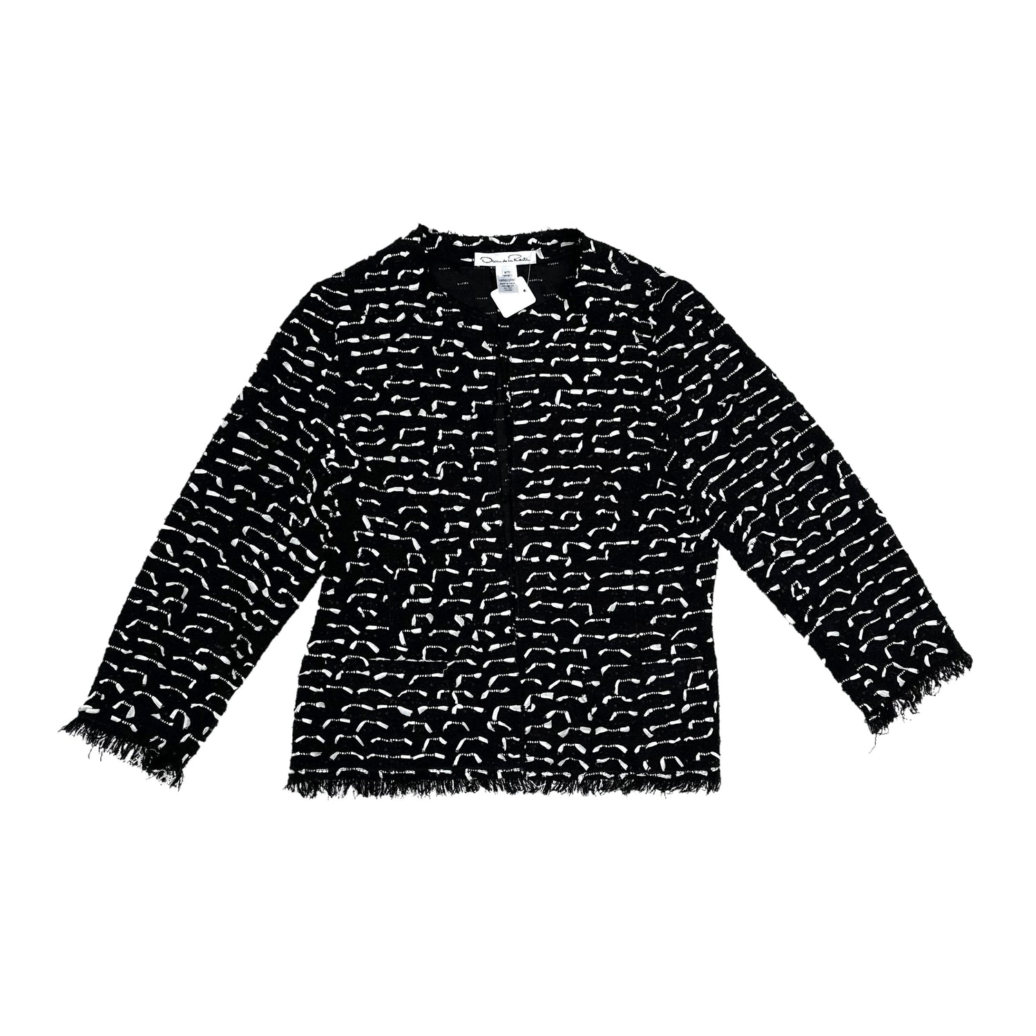 Oscar de la Renta tweed blazer. Black and white. Round collar. Raw hem.