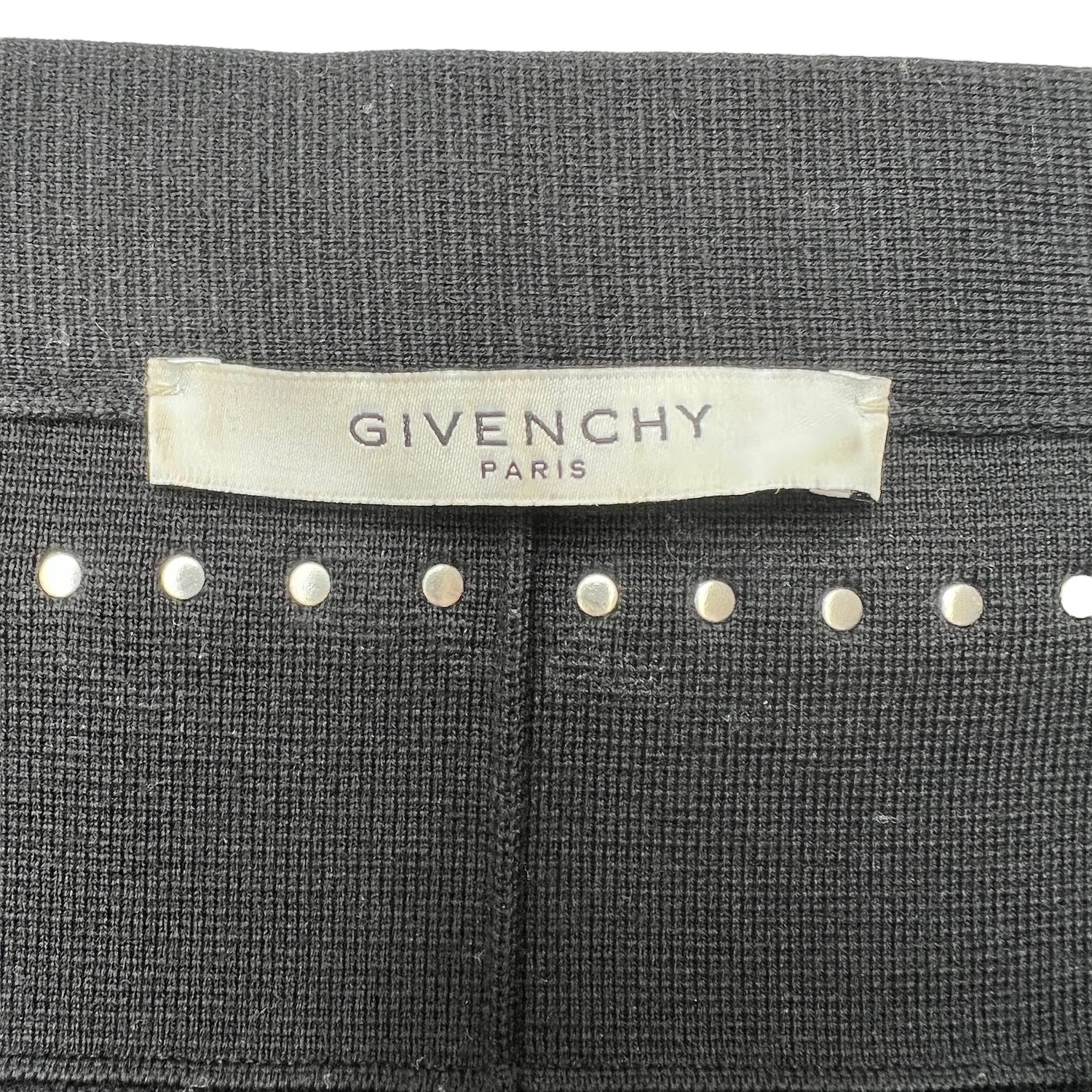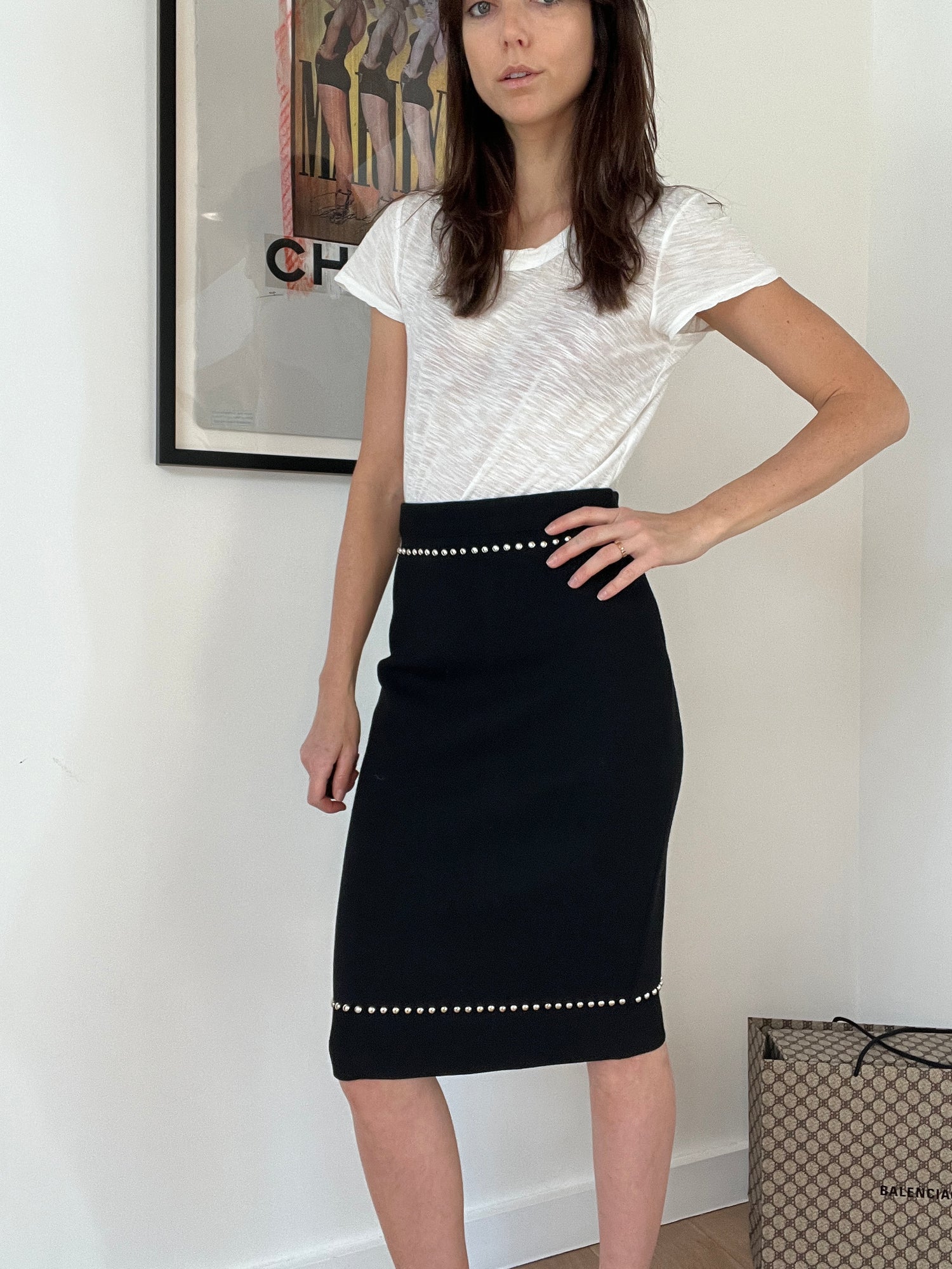 Beautiful black skirt from Givenchy. This skirt is stretchy and is meant to be fitted to the natural curve of the body. Nice details with silver tone studs.