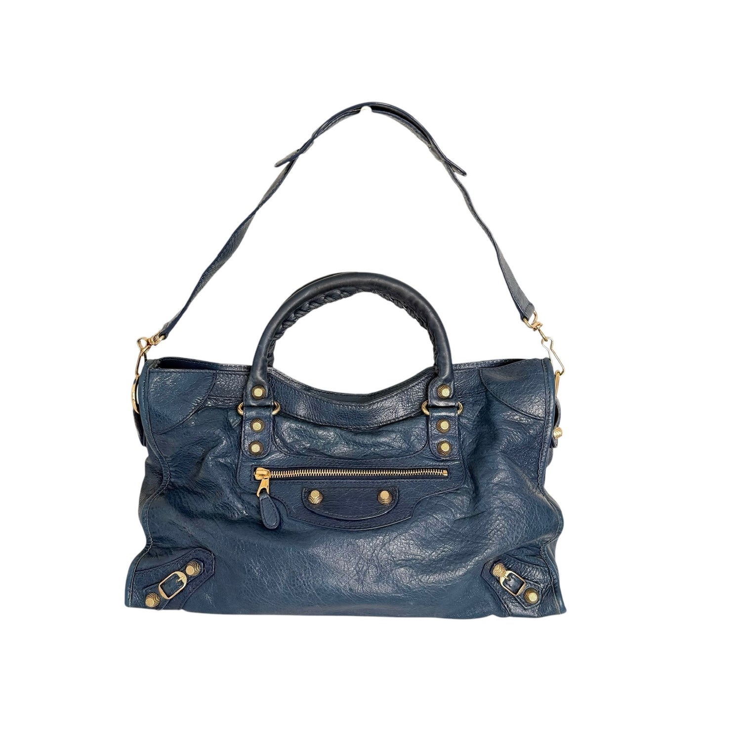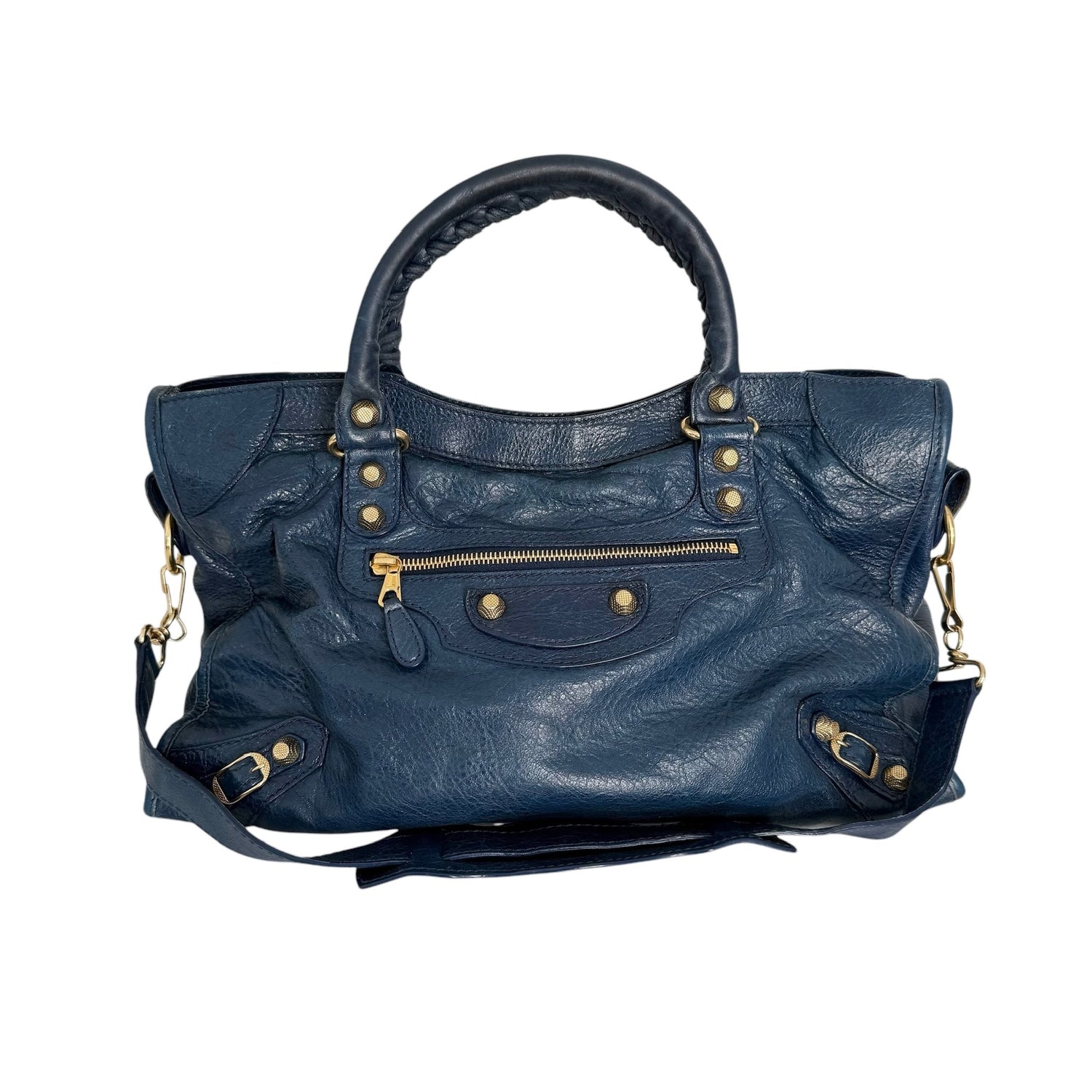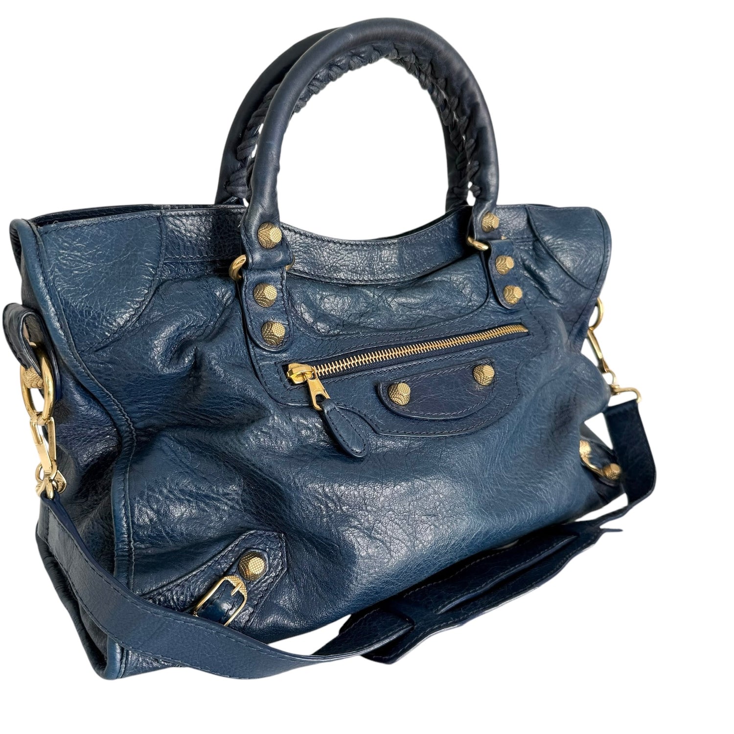 Balenciaga by Nicolas Ghesquieres blue city bag. Gold-tone hardware.