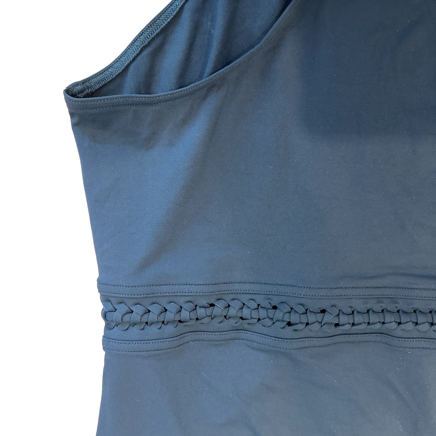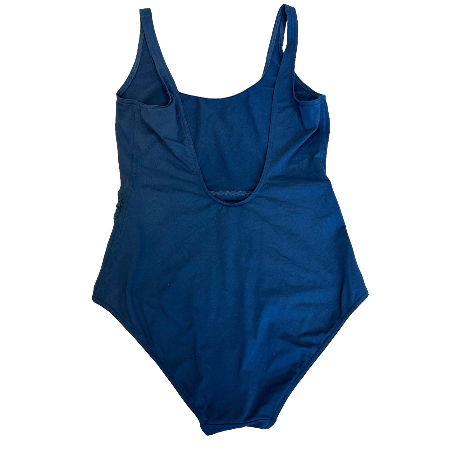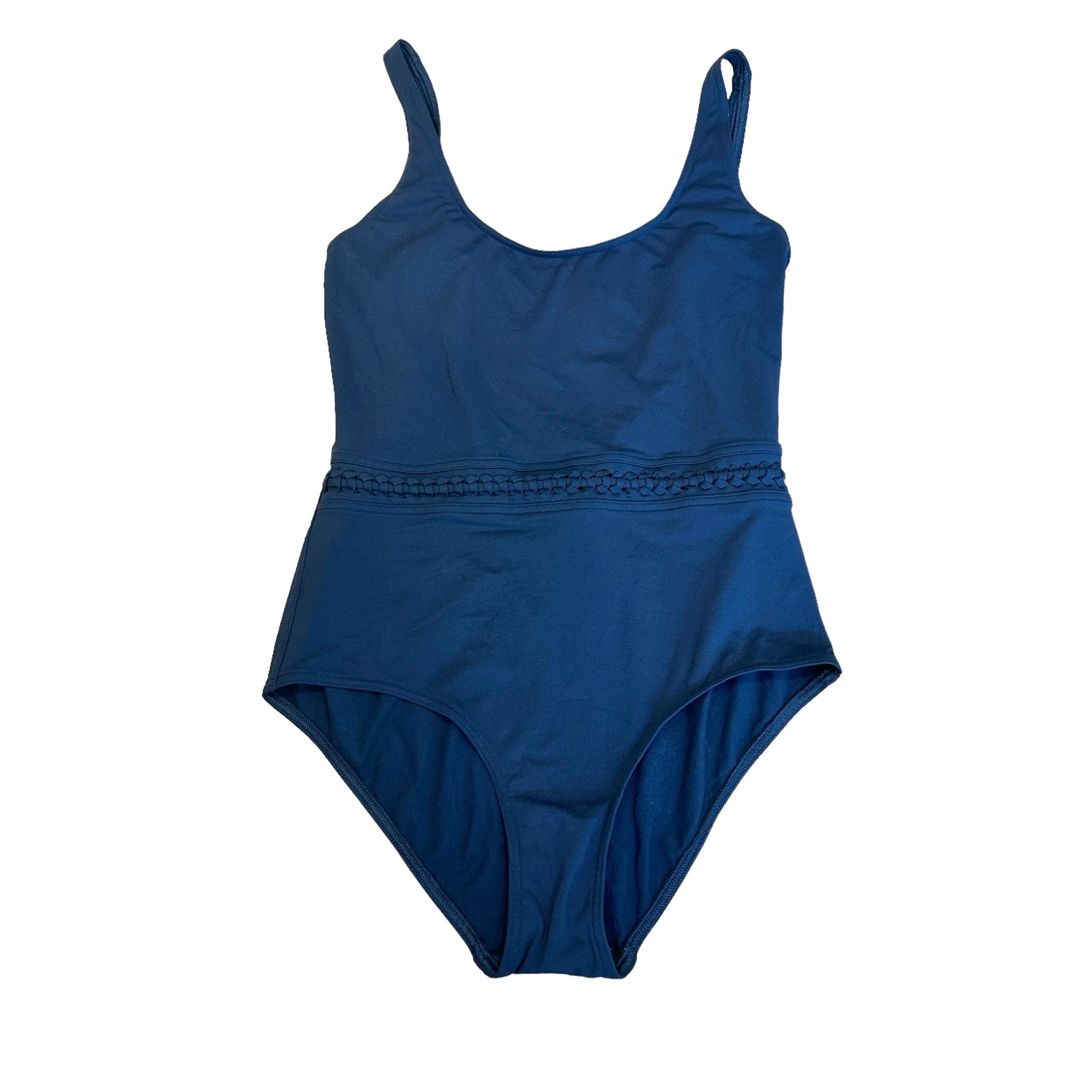 Eres deep blue one-piece swimsuit. Braid detail at waist.