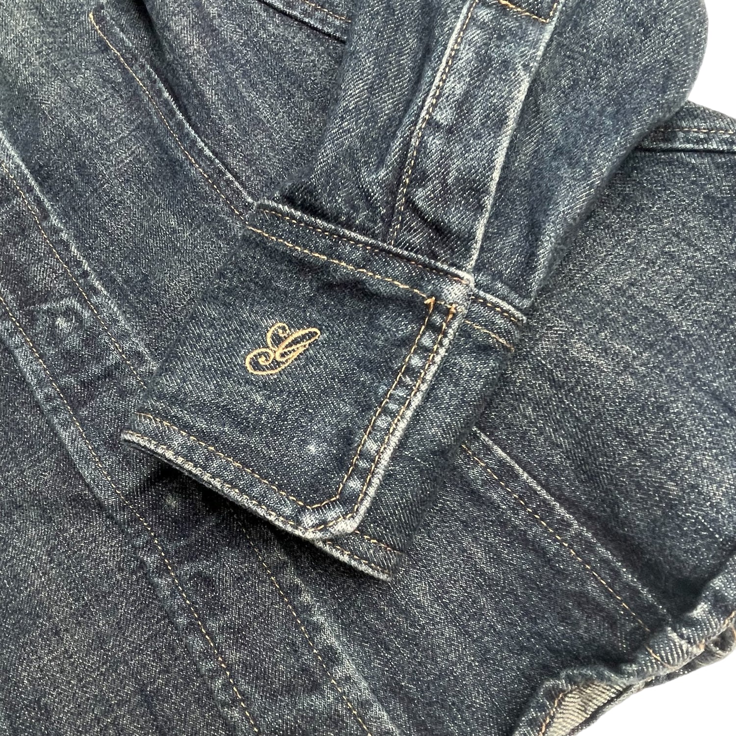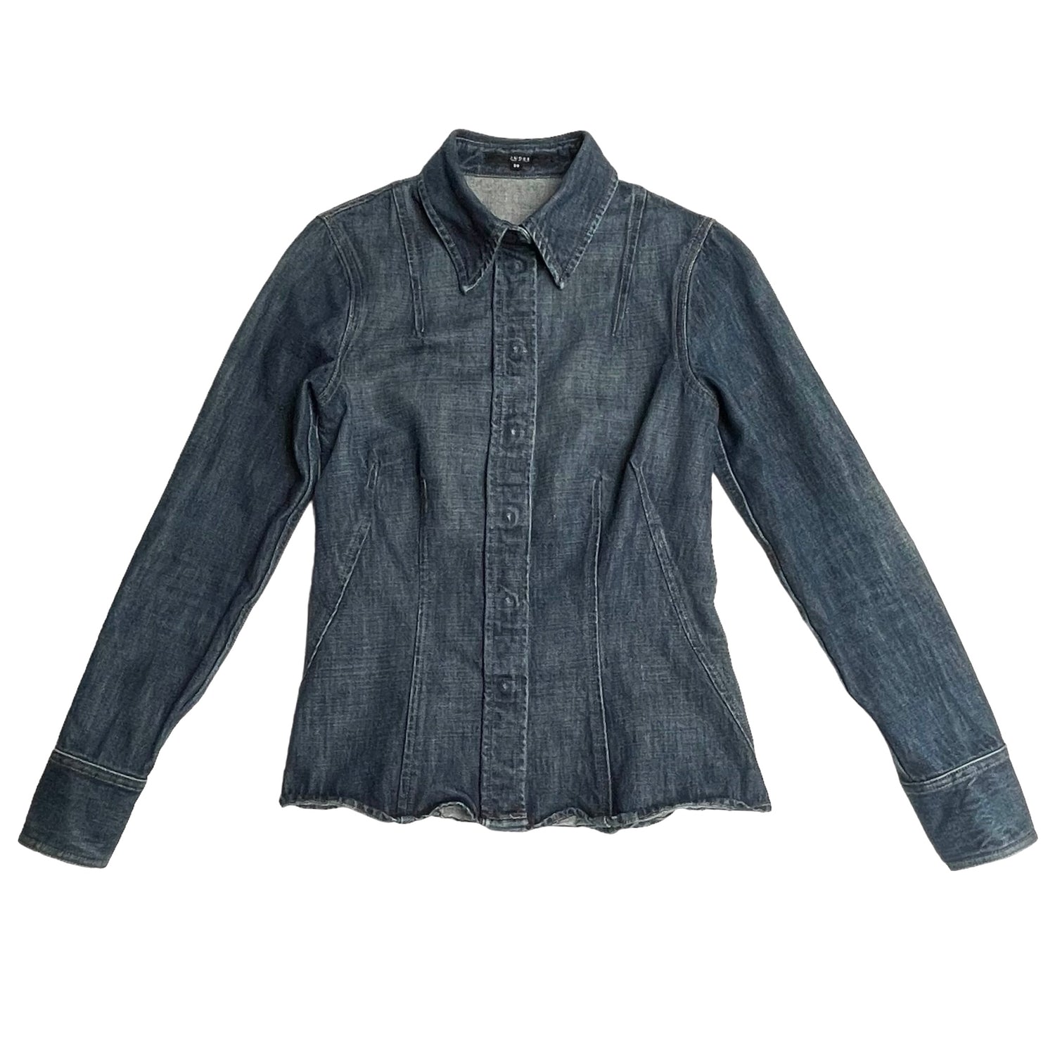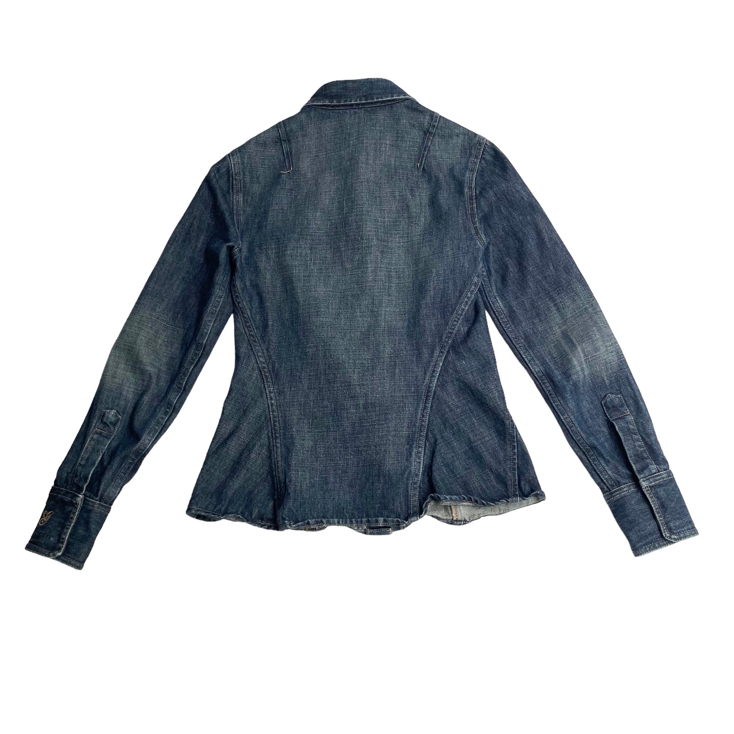 Gucci blue wash denim shirt. Vintage collection by Tom Ford. Pointed collar. G stitched logo at sleeve. Designer size 38.