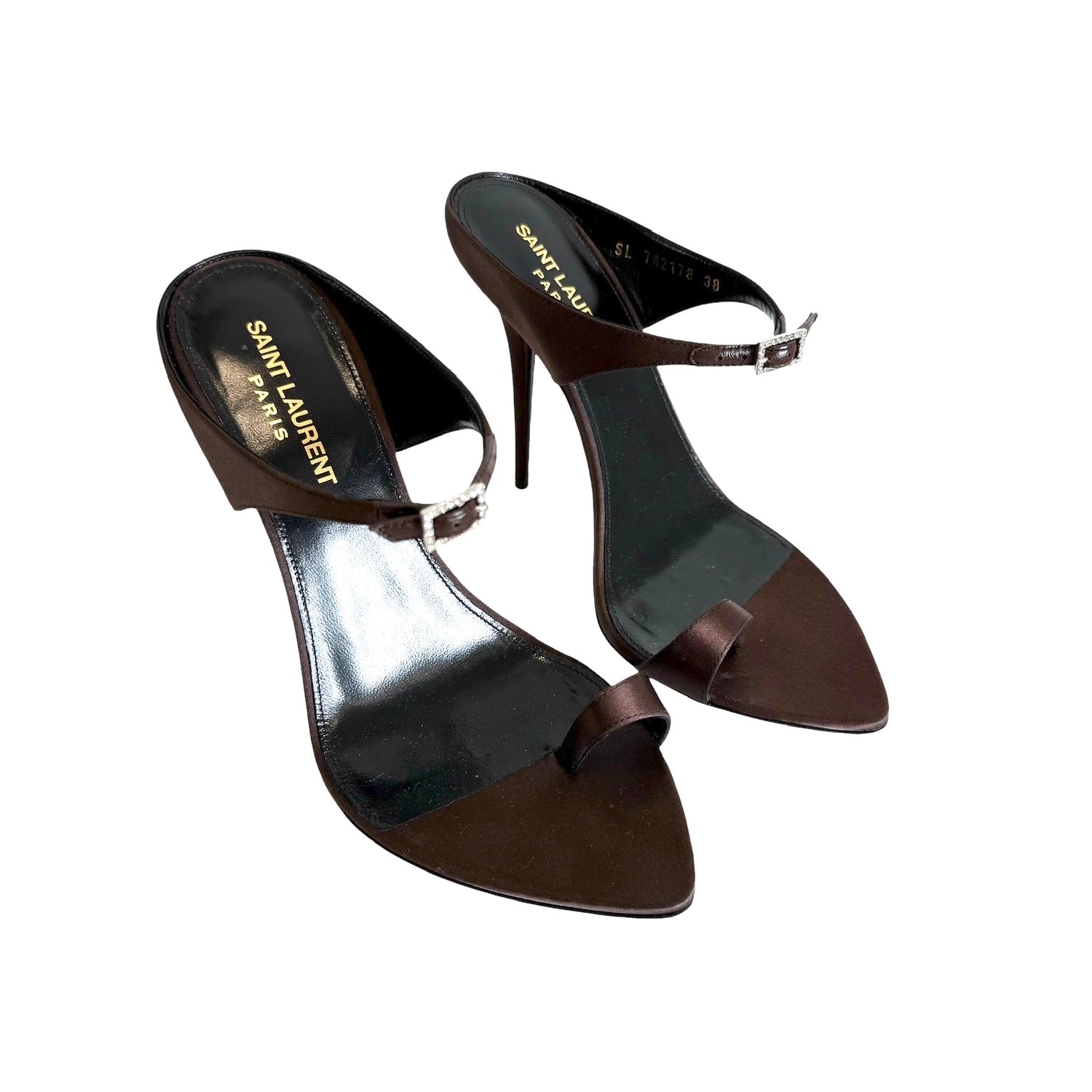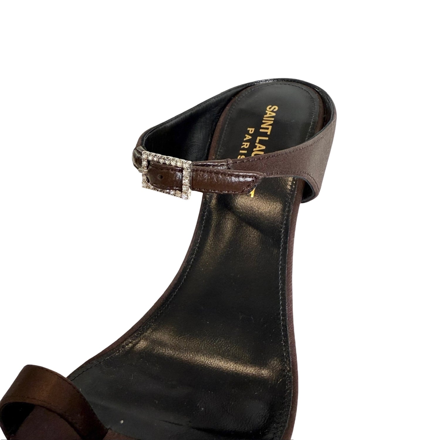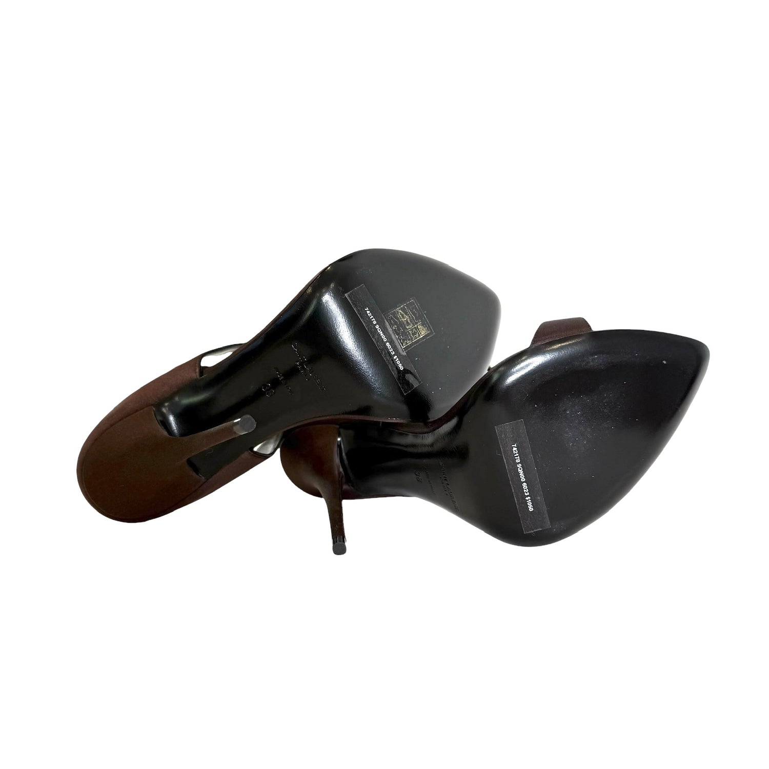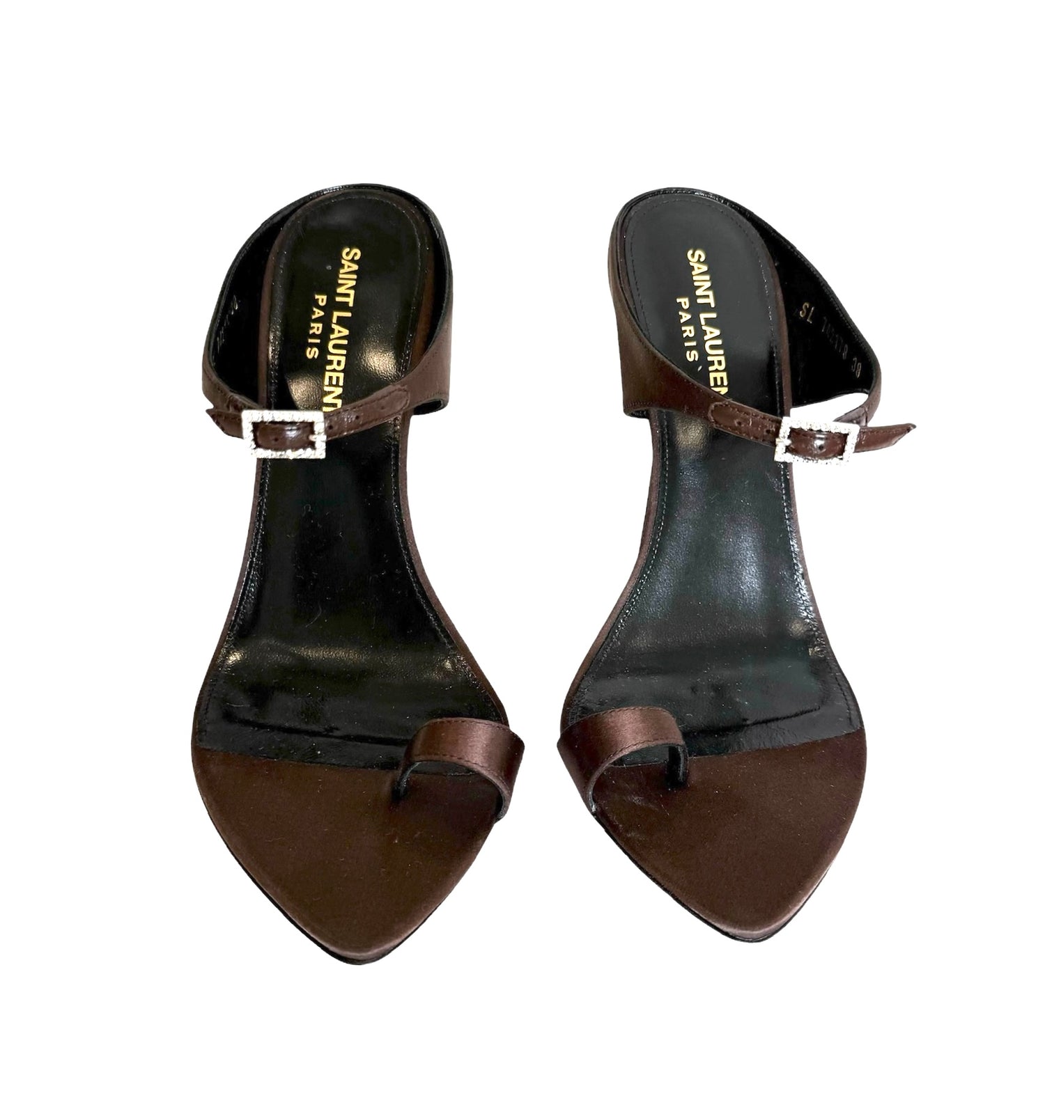 Saint Laurent square toe embellished heels. Gold-tone hardware. Slingbacks. Designer size 38.