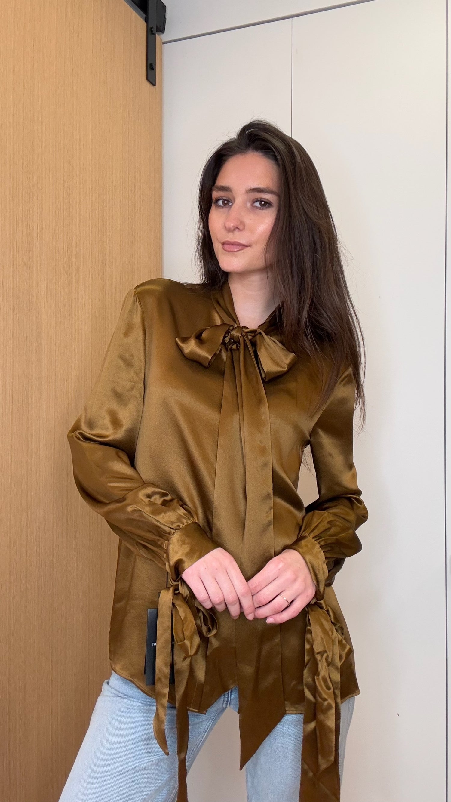 Saint Laurent silk shirt. Beautiful brown. Bow details at neck and sleeves. Designer size 40.