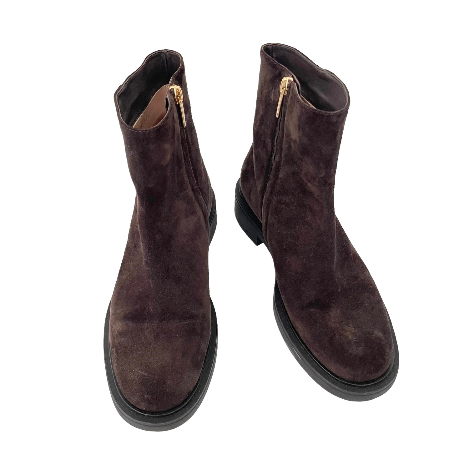 Gianvito Rossi brown suede boots. Zipper closure. Round toe. Designer size 36.5.
