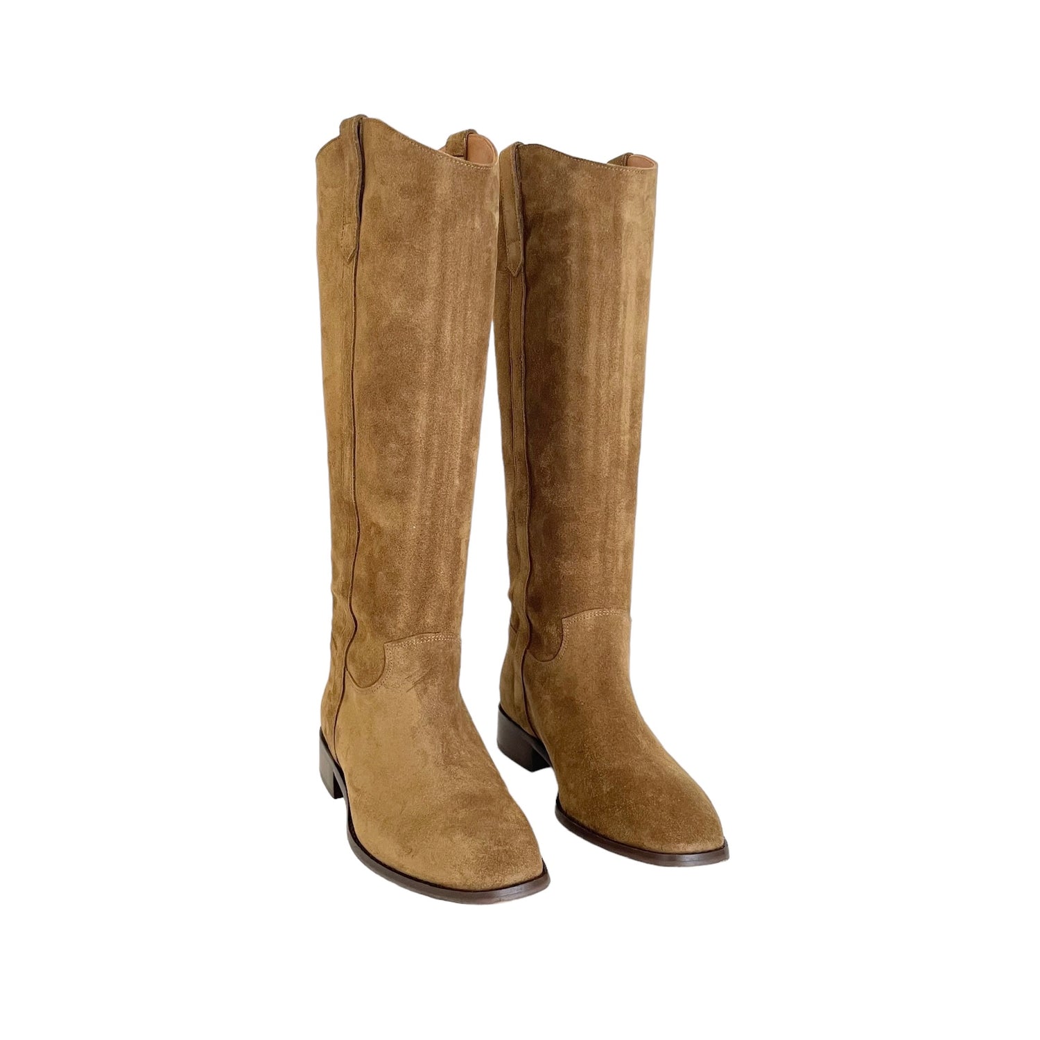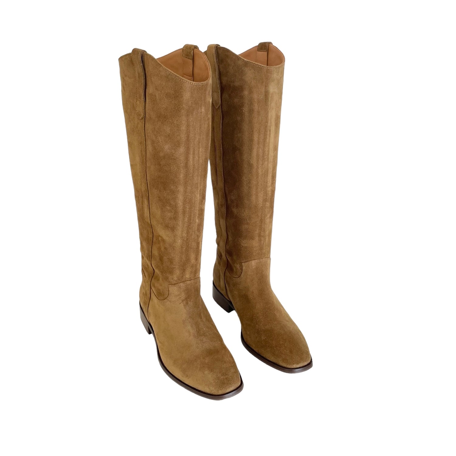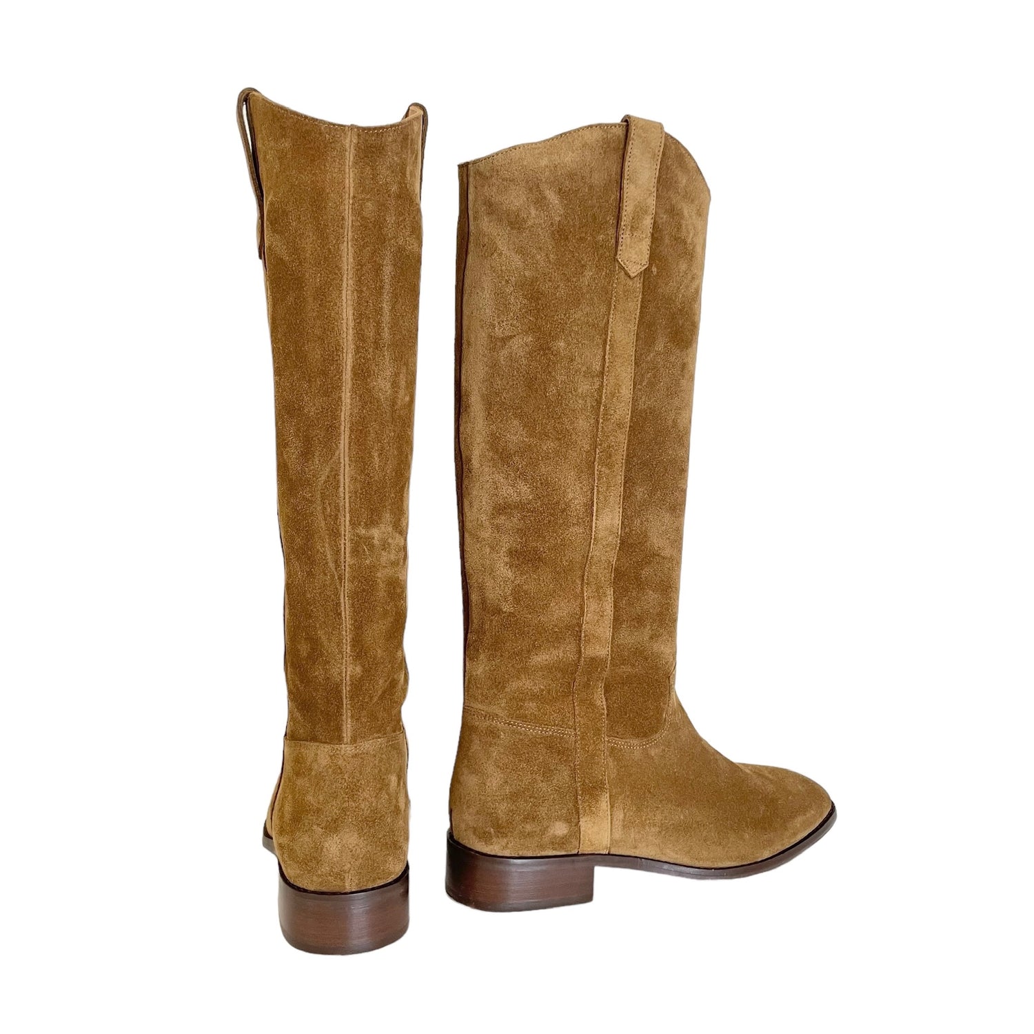Sezane brown tall boots. Brown suede. Round toe. Slip boots. Designer size 37.