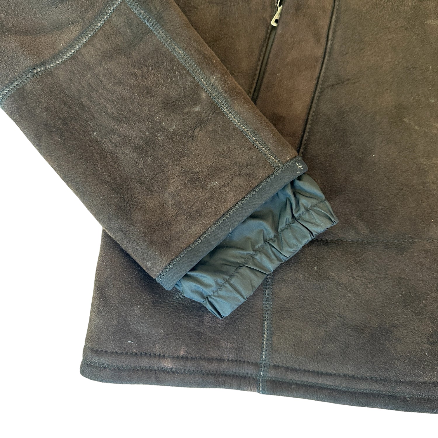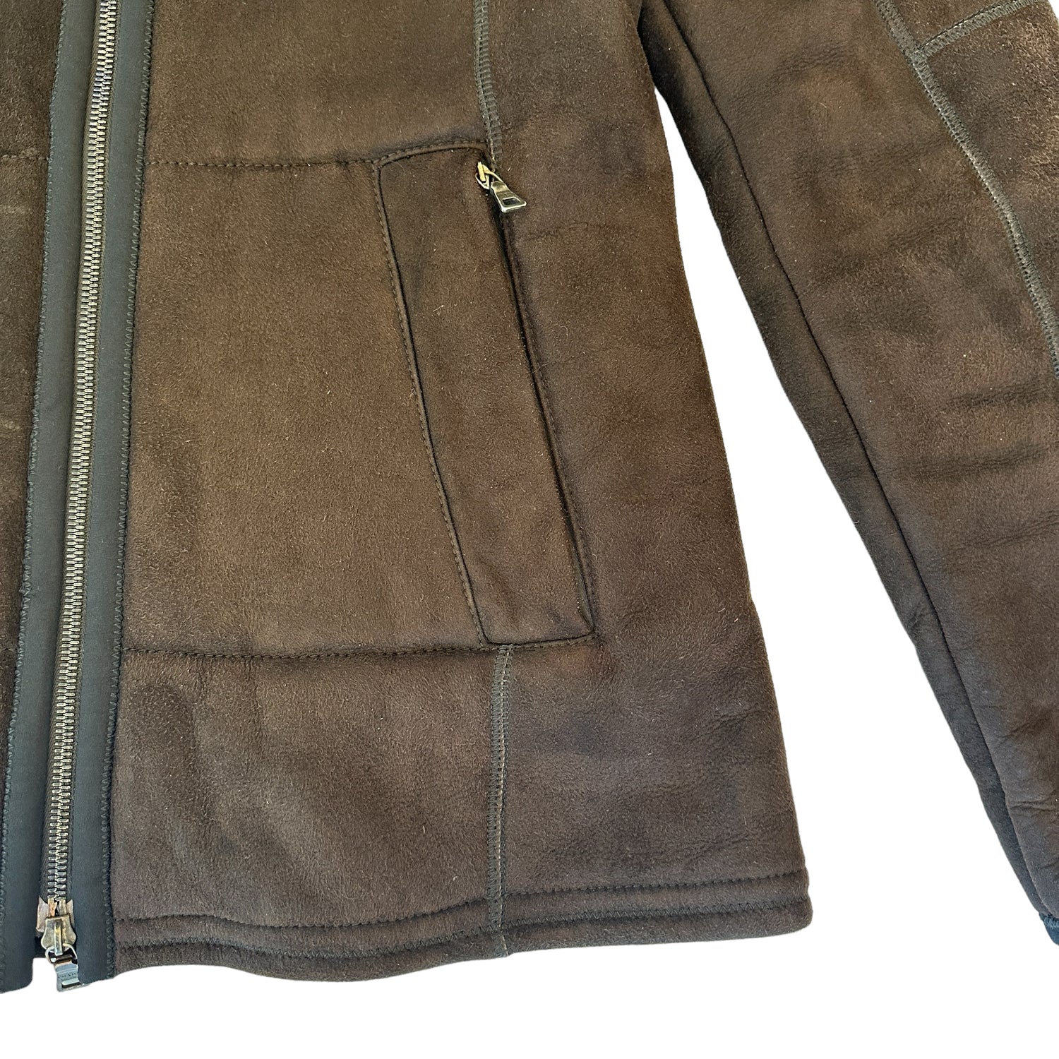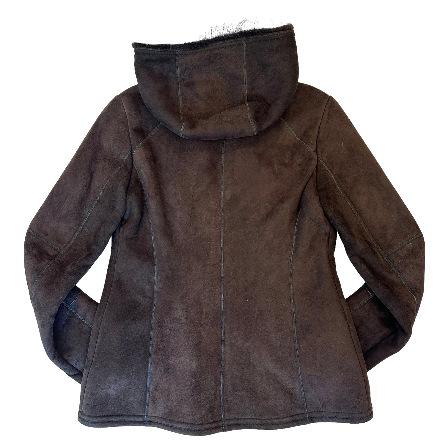 Prada brown suede and fur coat. Vintage from the 2007 collection. Hoodie. Zipper closure at front. Two zipper pockets.