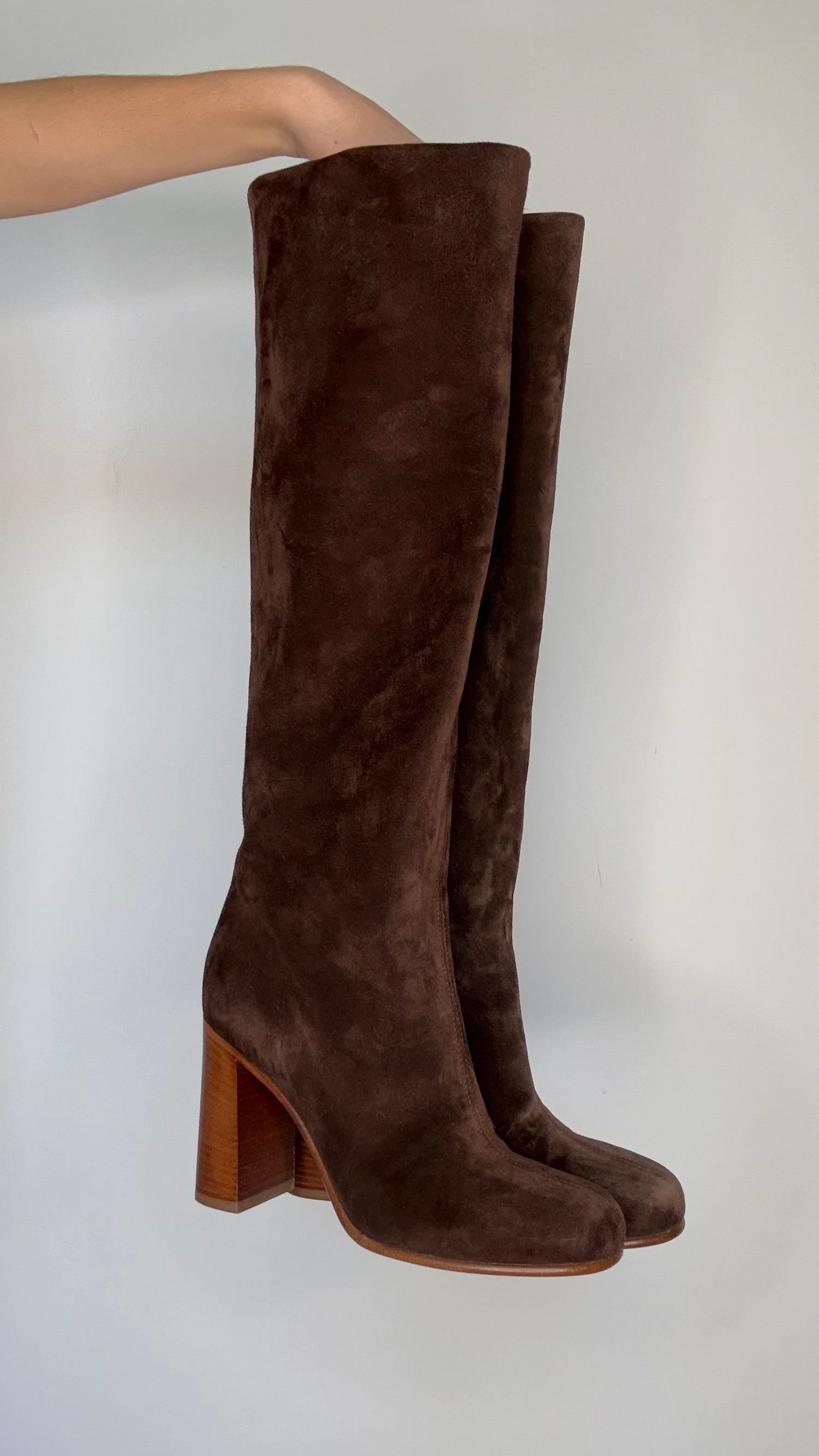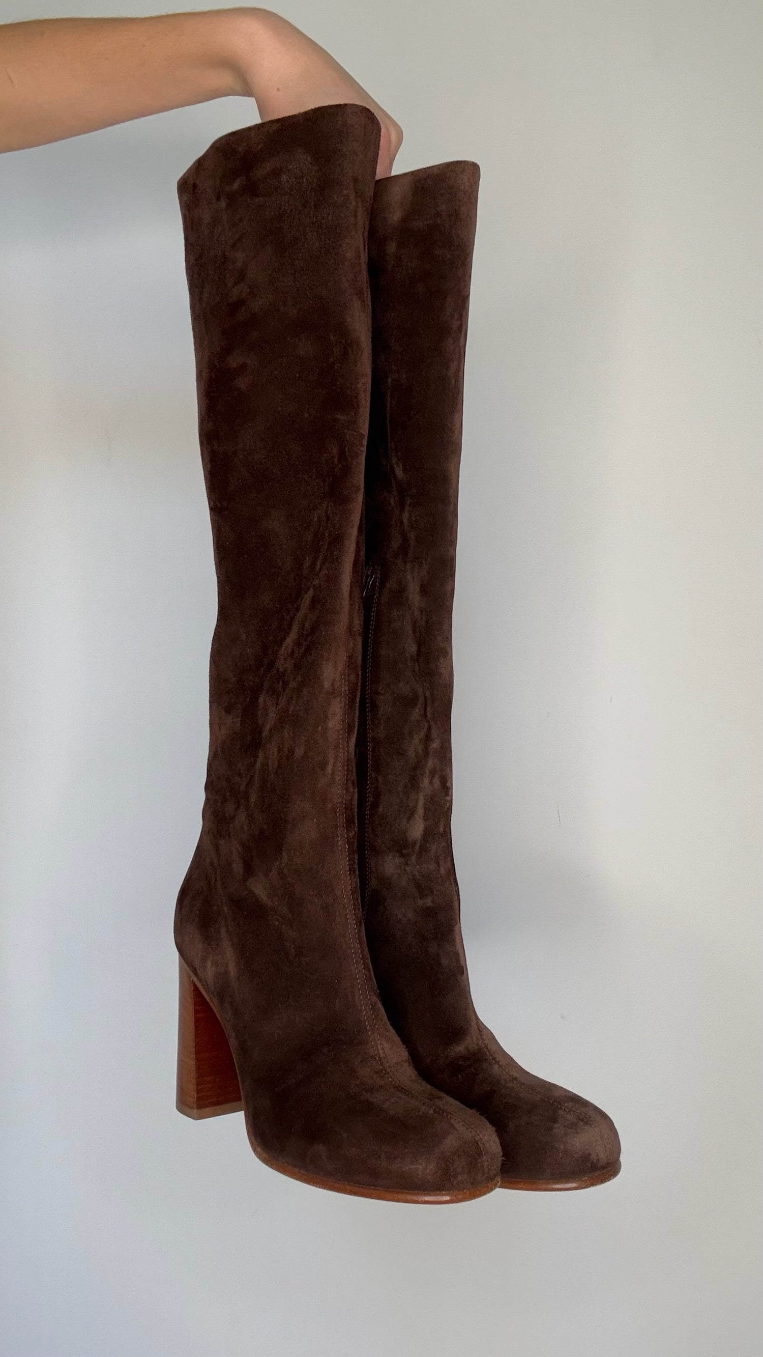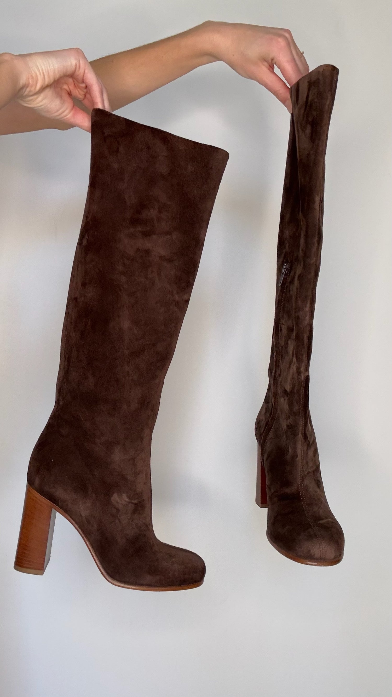 Khaite brown suede boots. "Willow Knee-High Boots". Designer size 38.