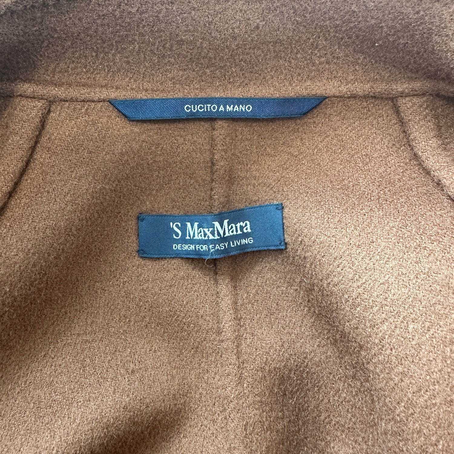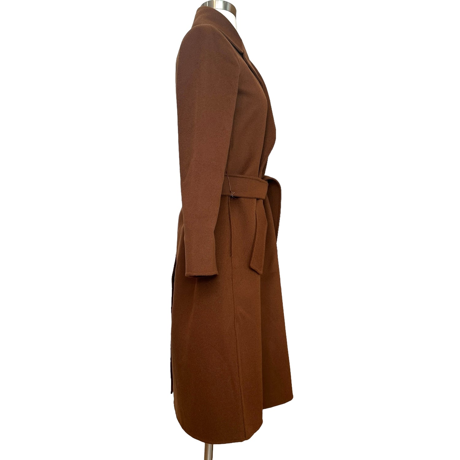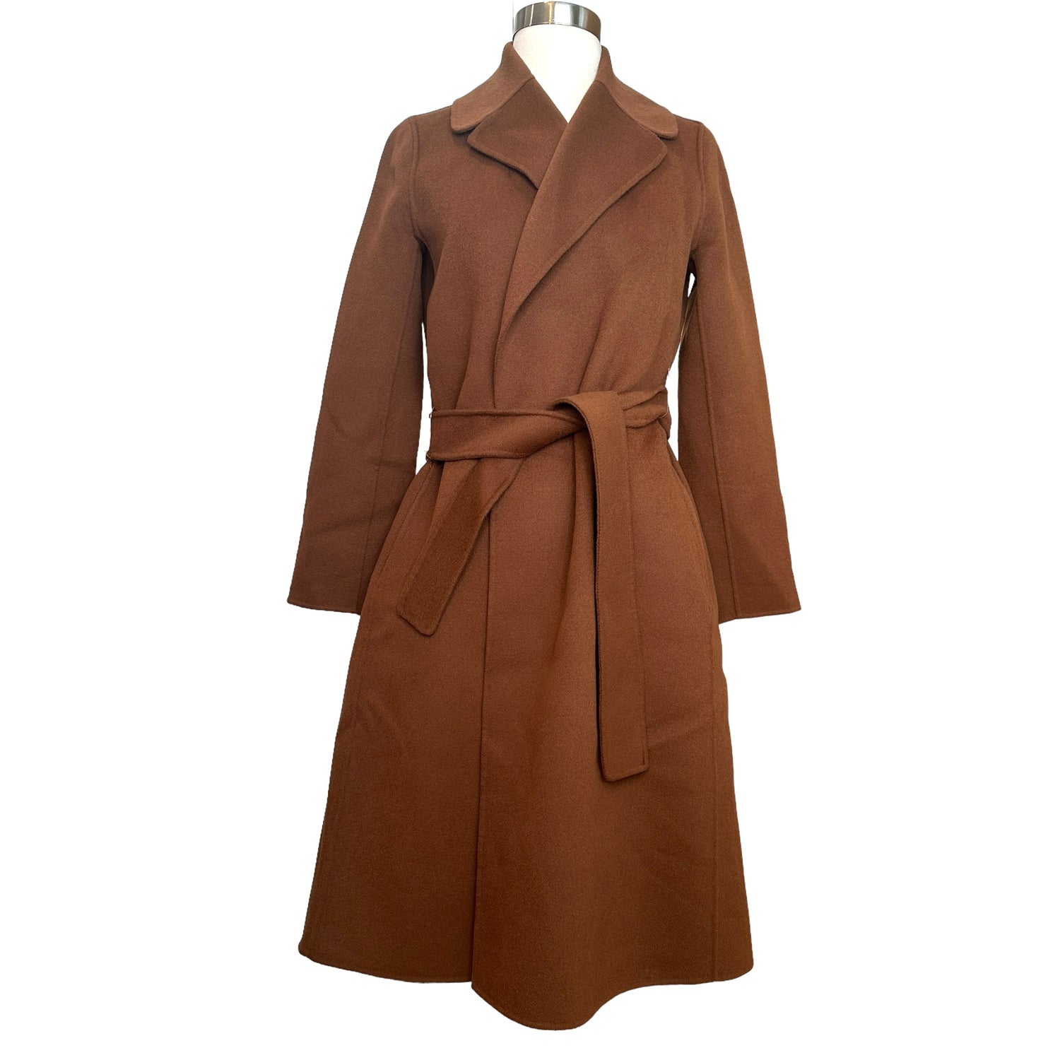 Max Mara brown coat. Open front with removable tie. Extra soft. Pointed collar. Two slit pockets. Designer size US 0.