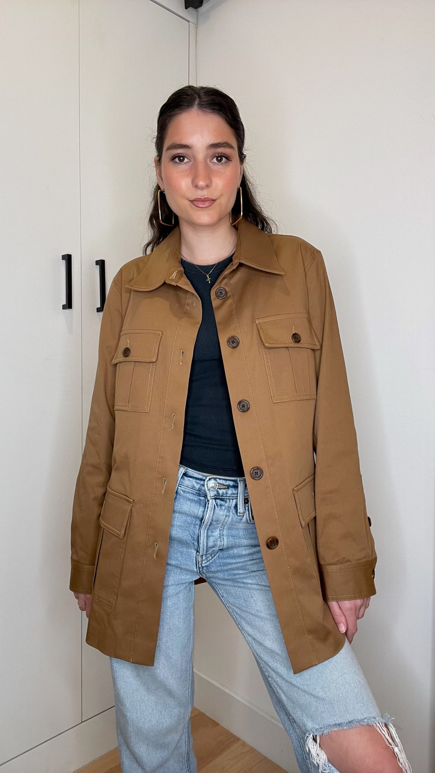 Nili Lotan camel utility jacket. Four pockets. Button at front. Designer size Medium.
