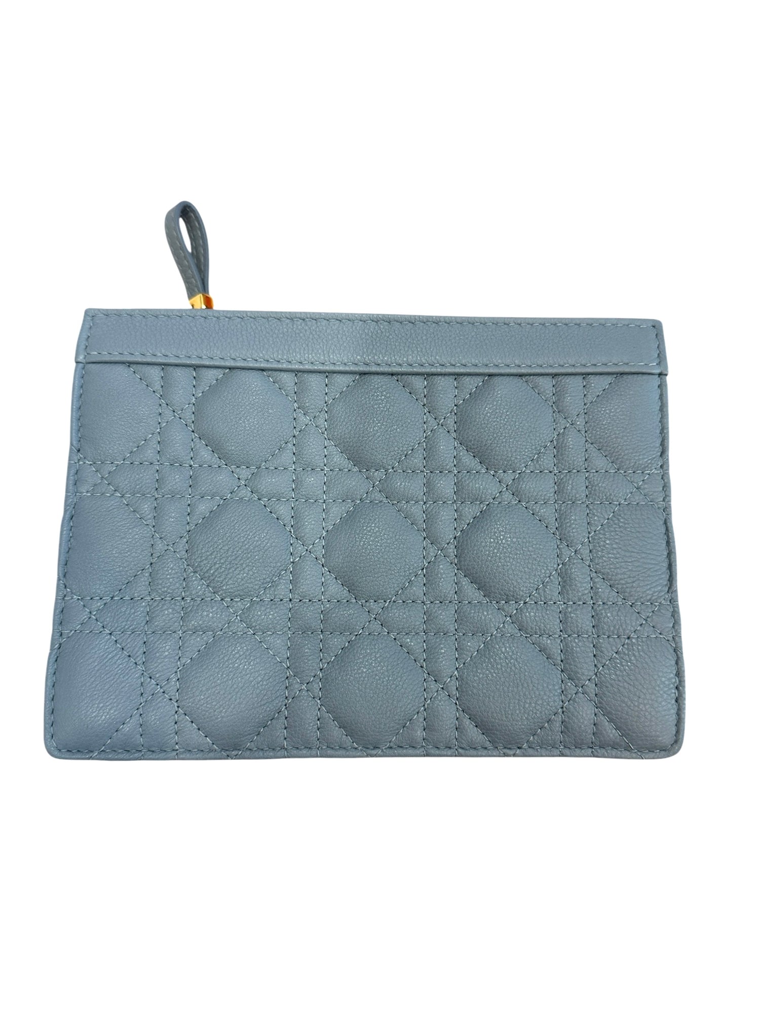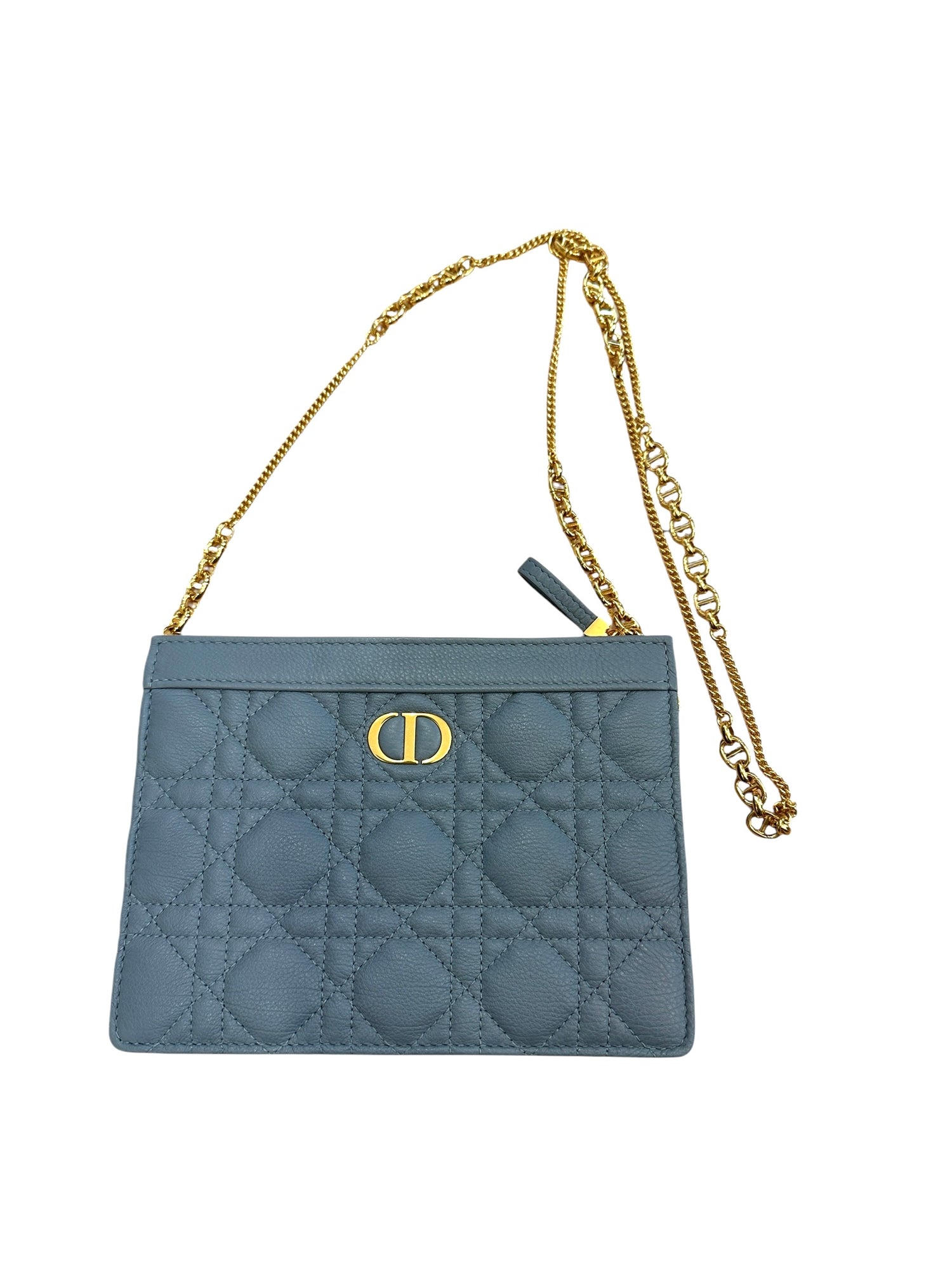 Christian Dior blue cannage wallet on chain. Removable chain to carry as a clutch. Gold-tone hardware.