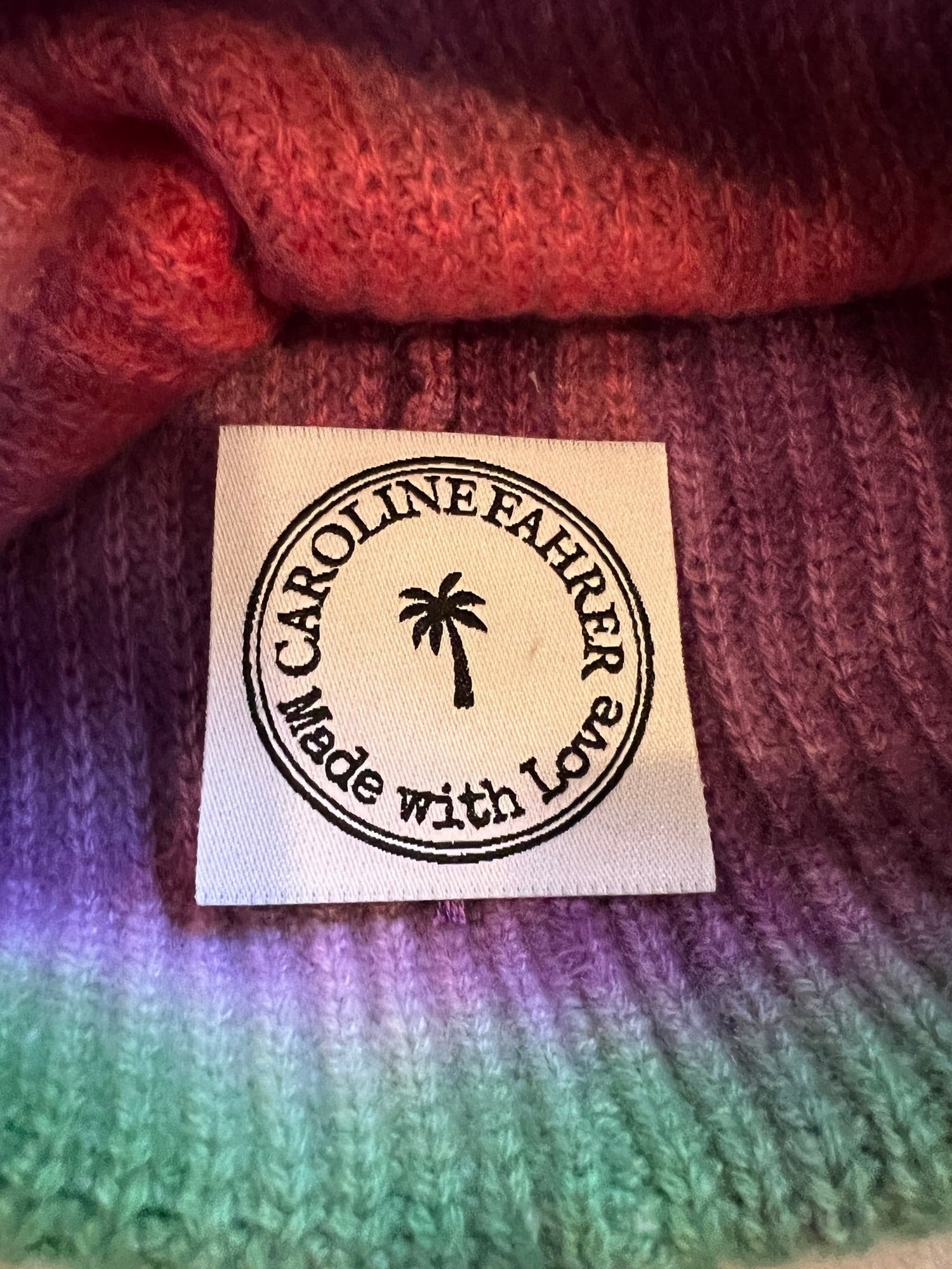 Stunning soft cashmere. Handmade in Los Angeles. These are all unique pieces. Small stitches at border which makes Caroline Fahrer’s beanies recognizable.