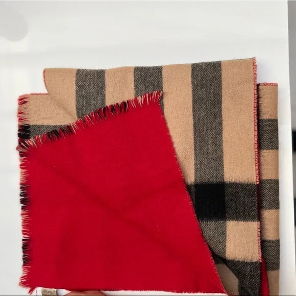 Get it right in time for the holidays! One side red, one side iconic black and camel pattern.