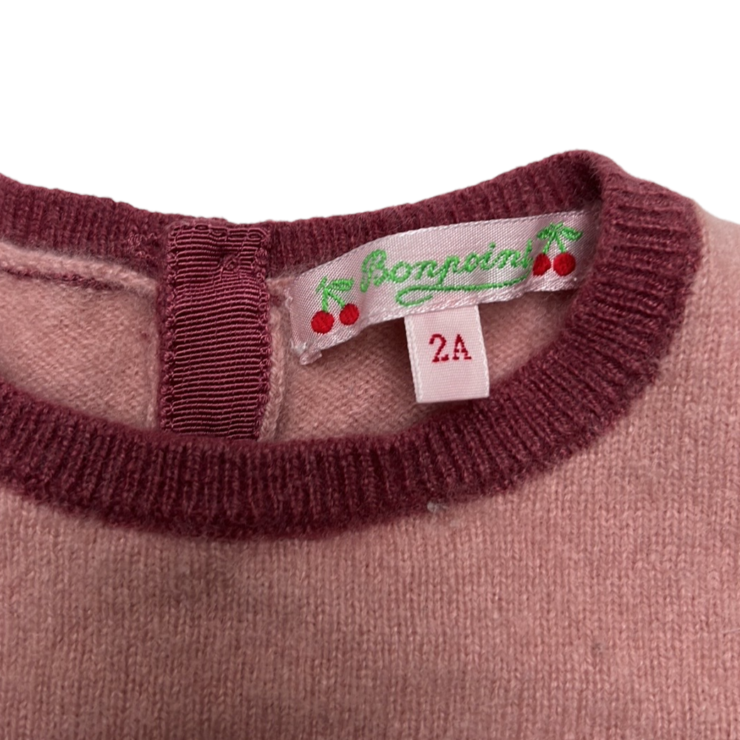Adorable Cashmere sweater for toddler. Iconic Bonpoint cherry logo. Two buttons closure at back. Very soft. Size 2 year old.
