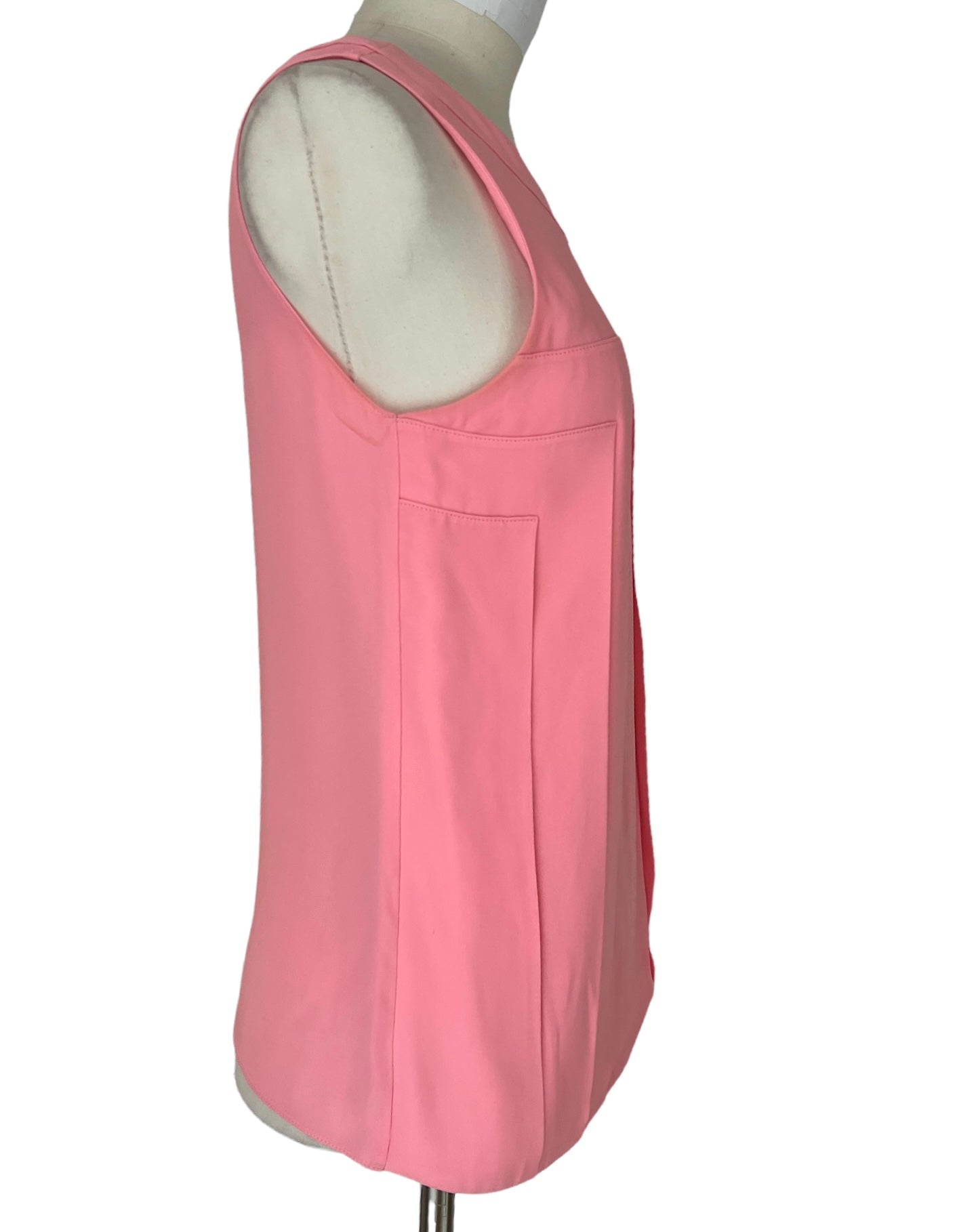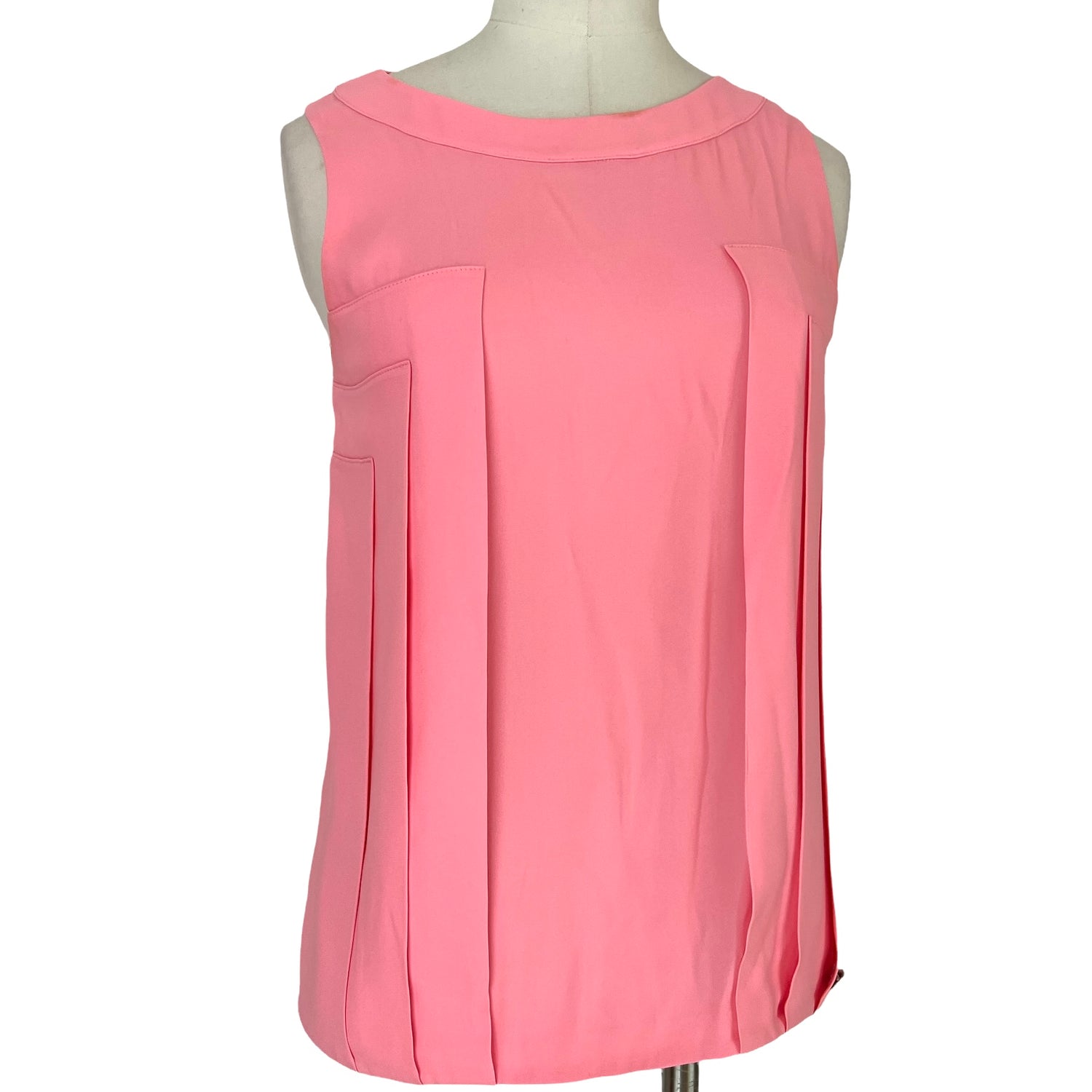 Pink silk fabric tank top from Chanel. Concealed zipper on the side and CC logo detail at bottom.
