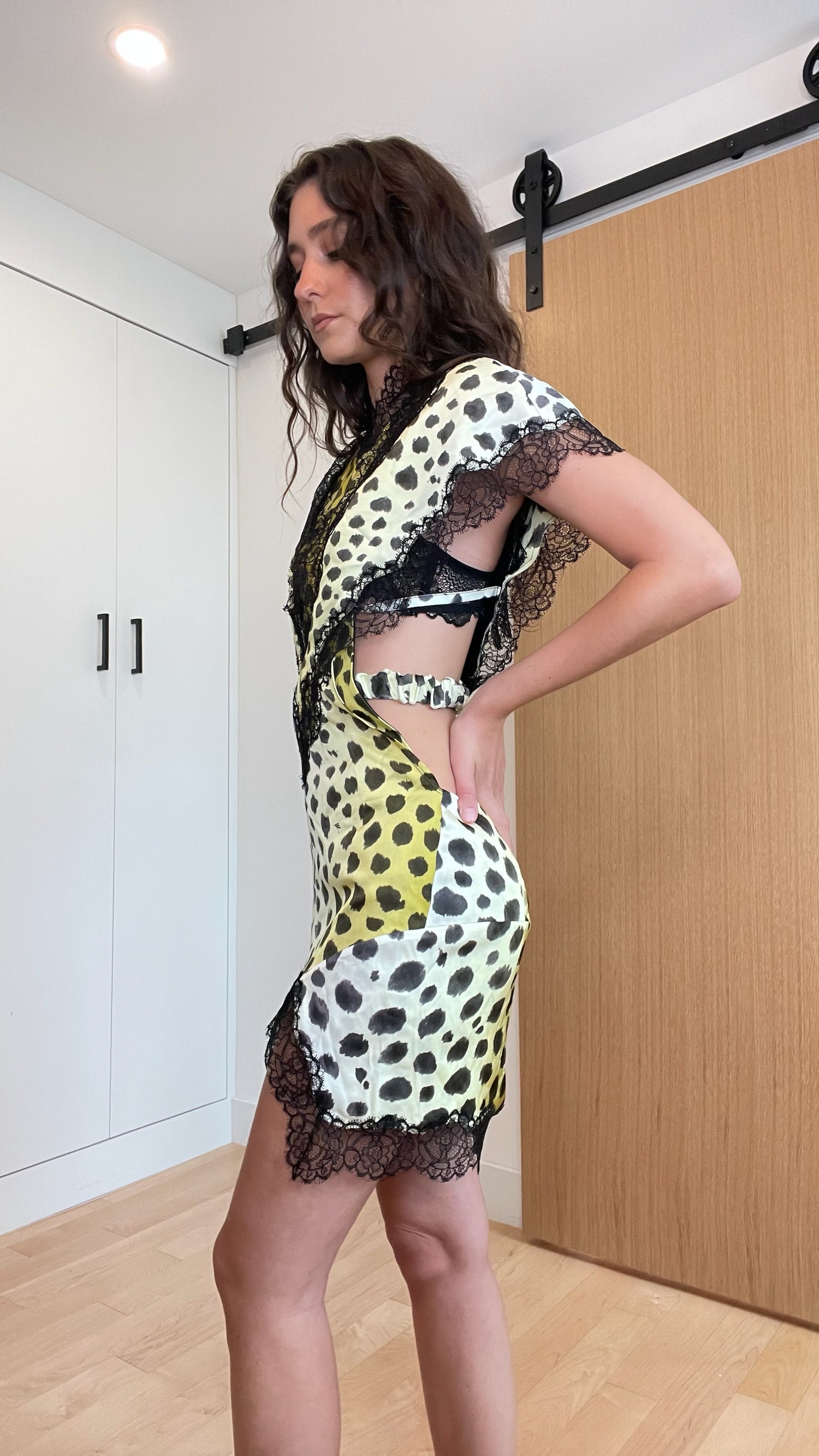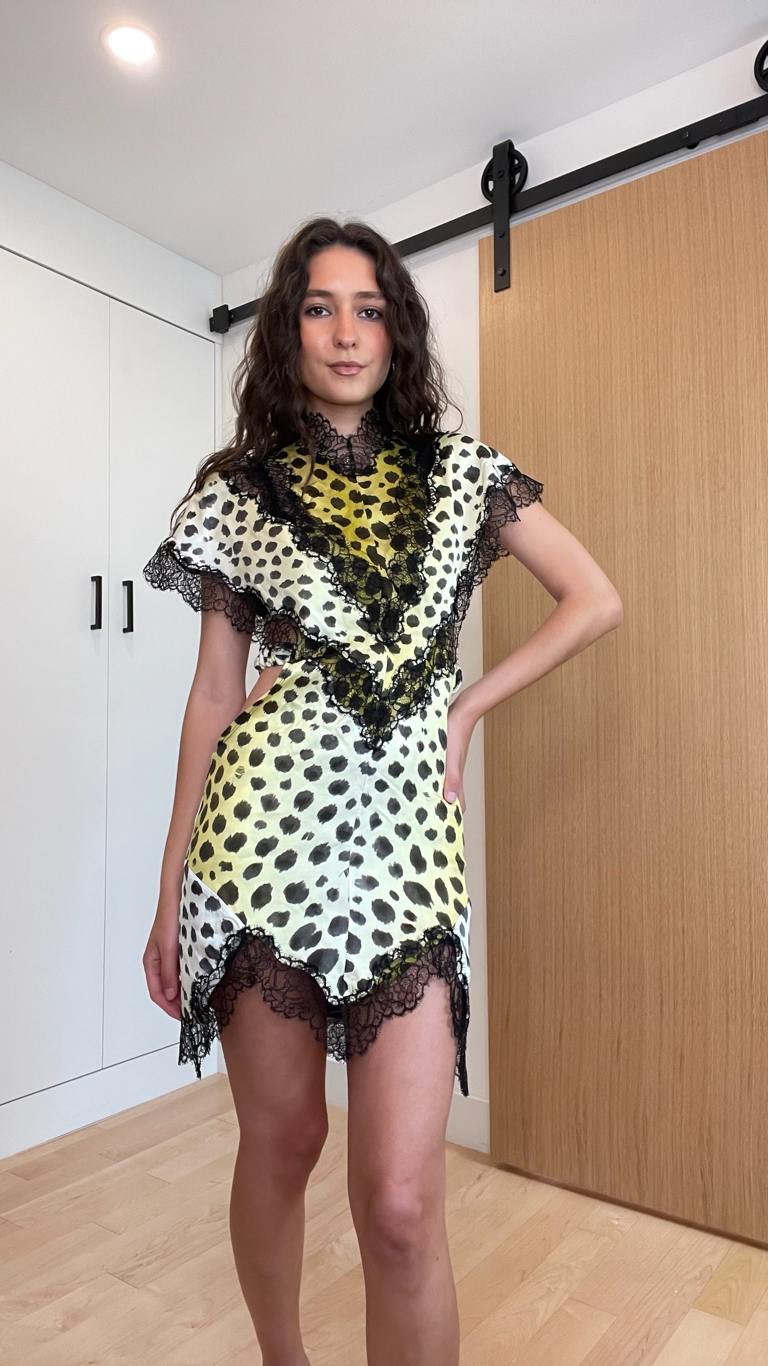 The Attico cheetah dress. Beautiful print with fine lace trims. Designer size 38.