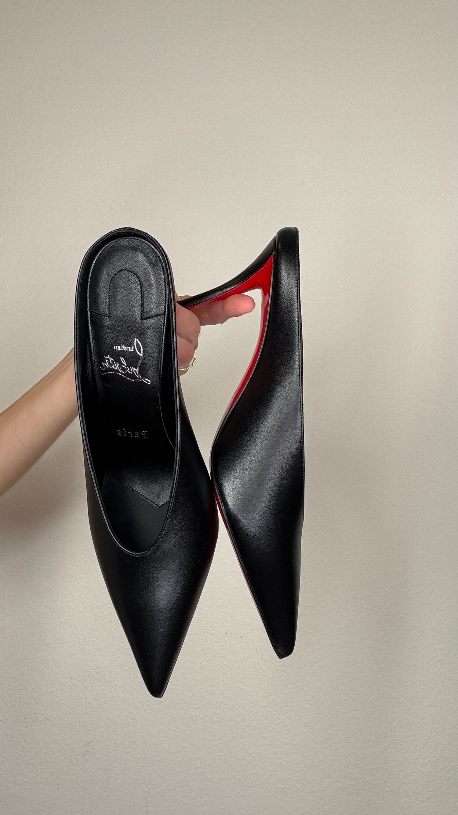 Christian Louboutin black leather heeled mules. Designer Size 39