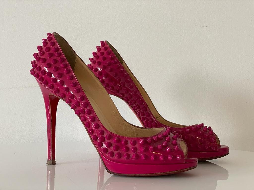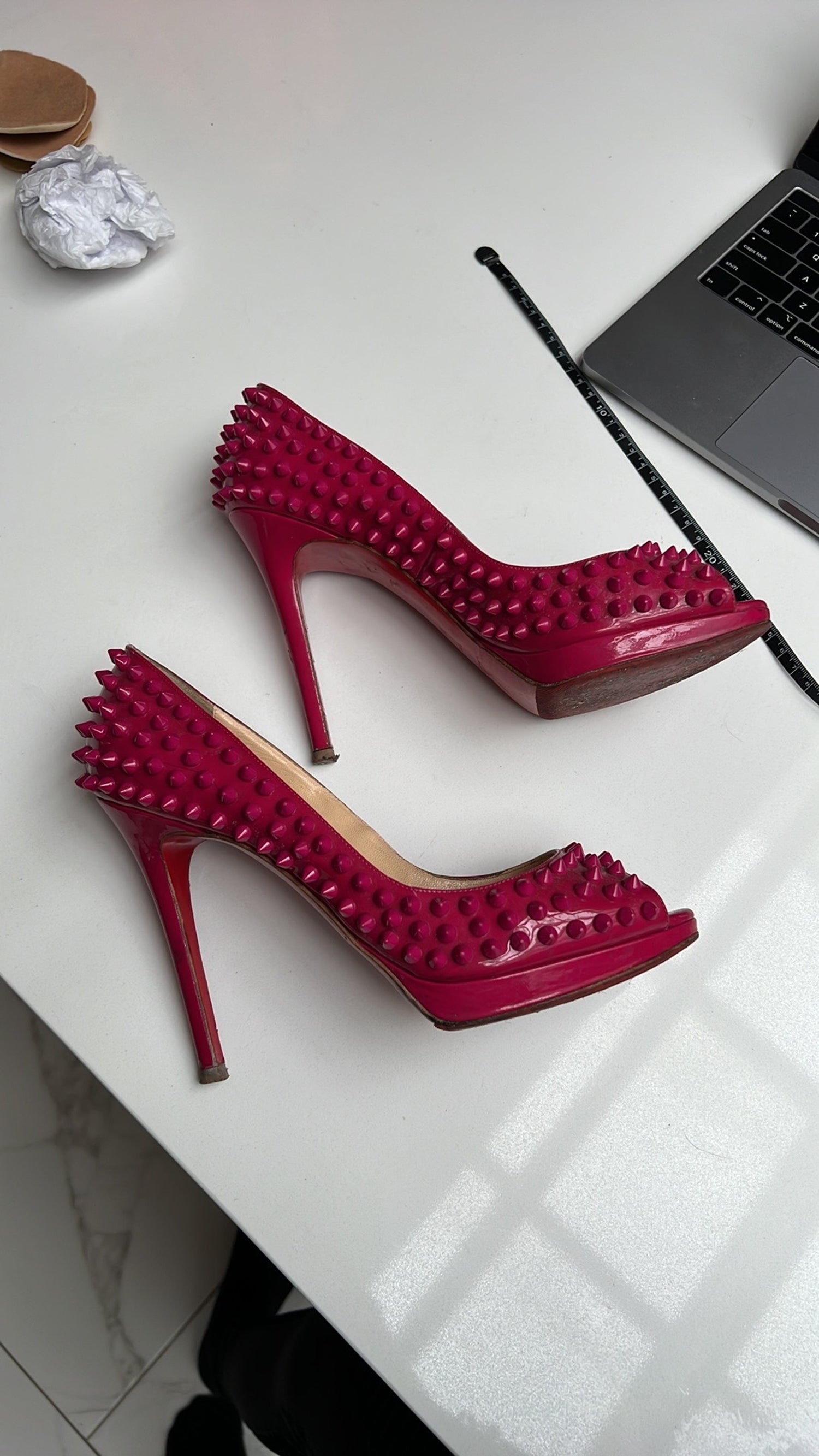 Condition: Preowned condition. One missing spike. Not noticeable when worn. Some marks. New soles were added for protection.