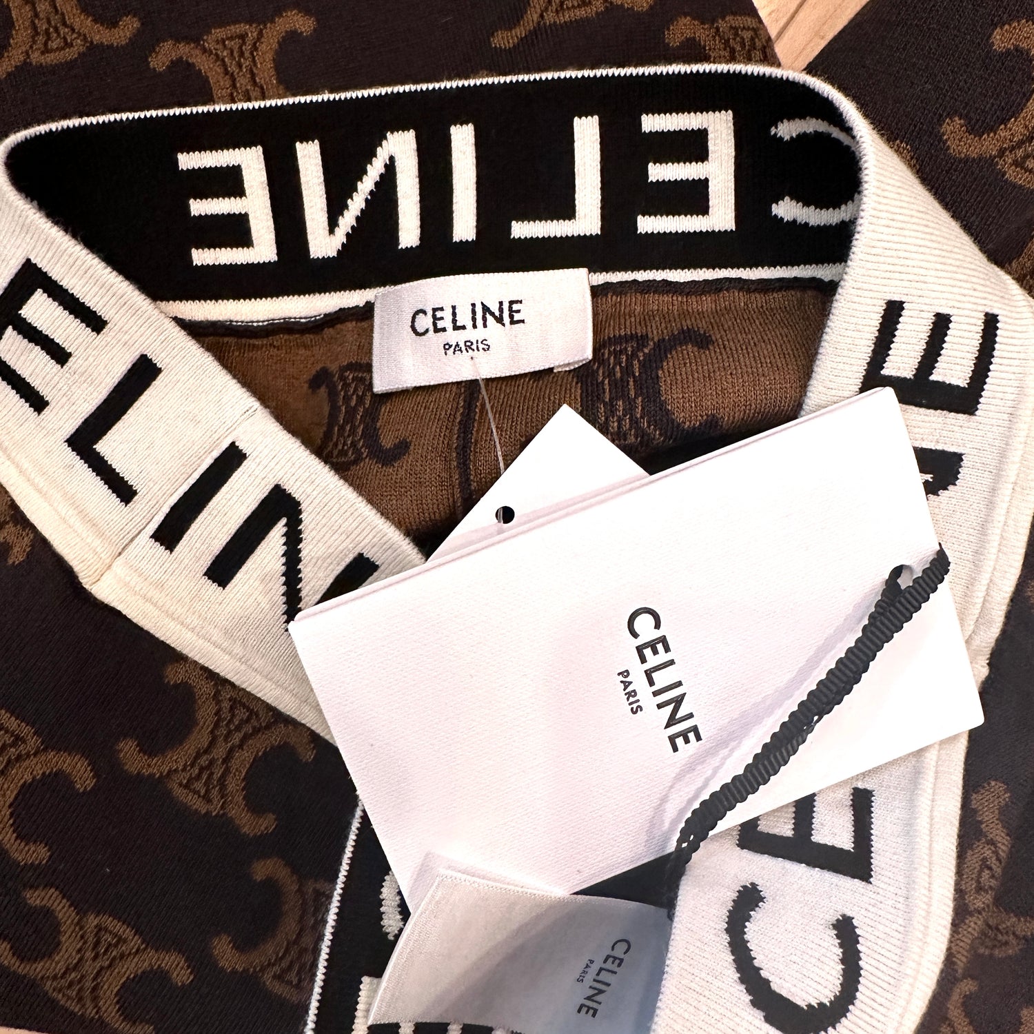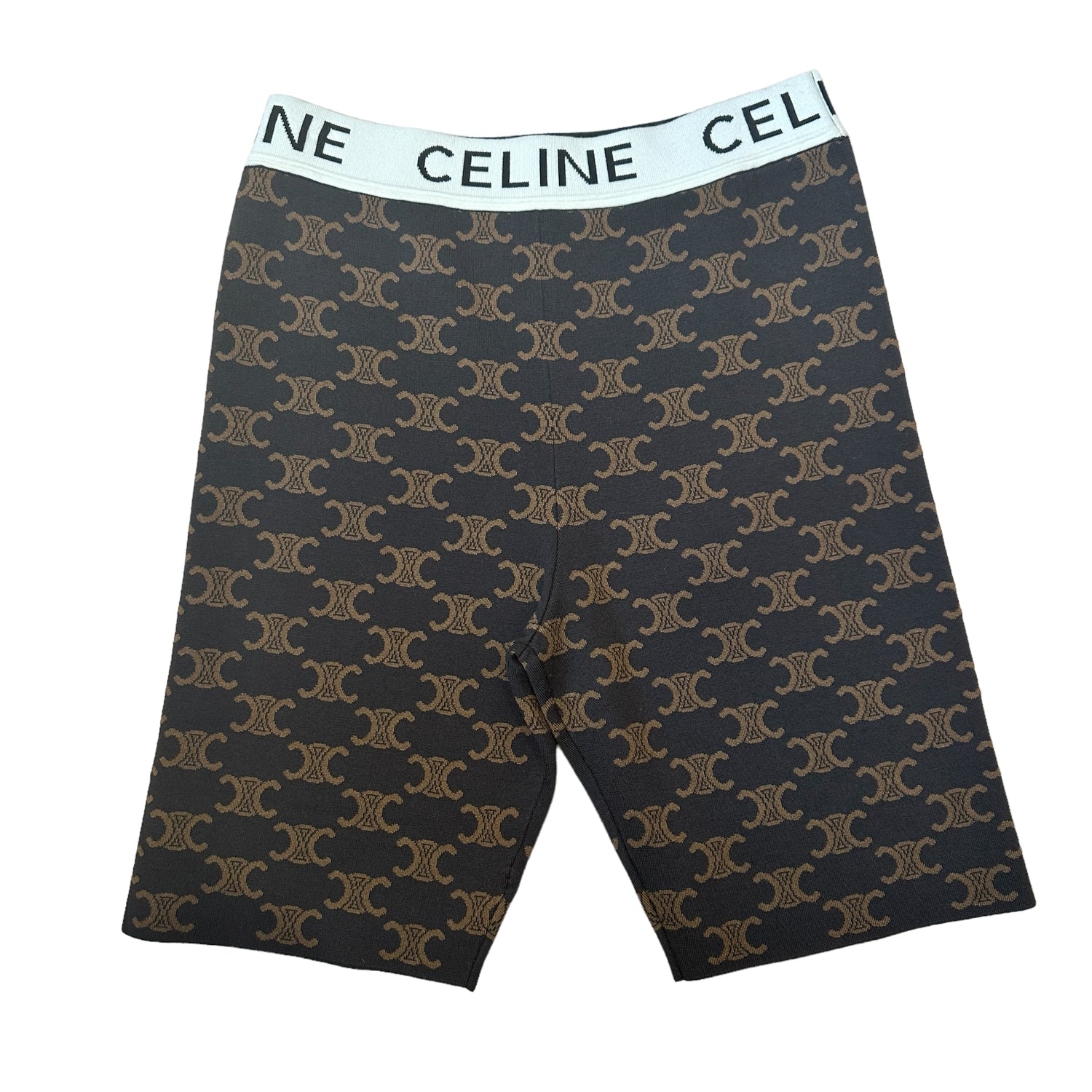 Celine brown 2023 Triomphe logo shorts. Elasticised waist with Celine logo black on white. Very stretchy and soft material. Designer size Small.