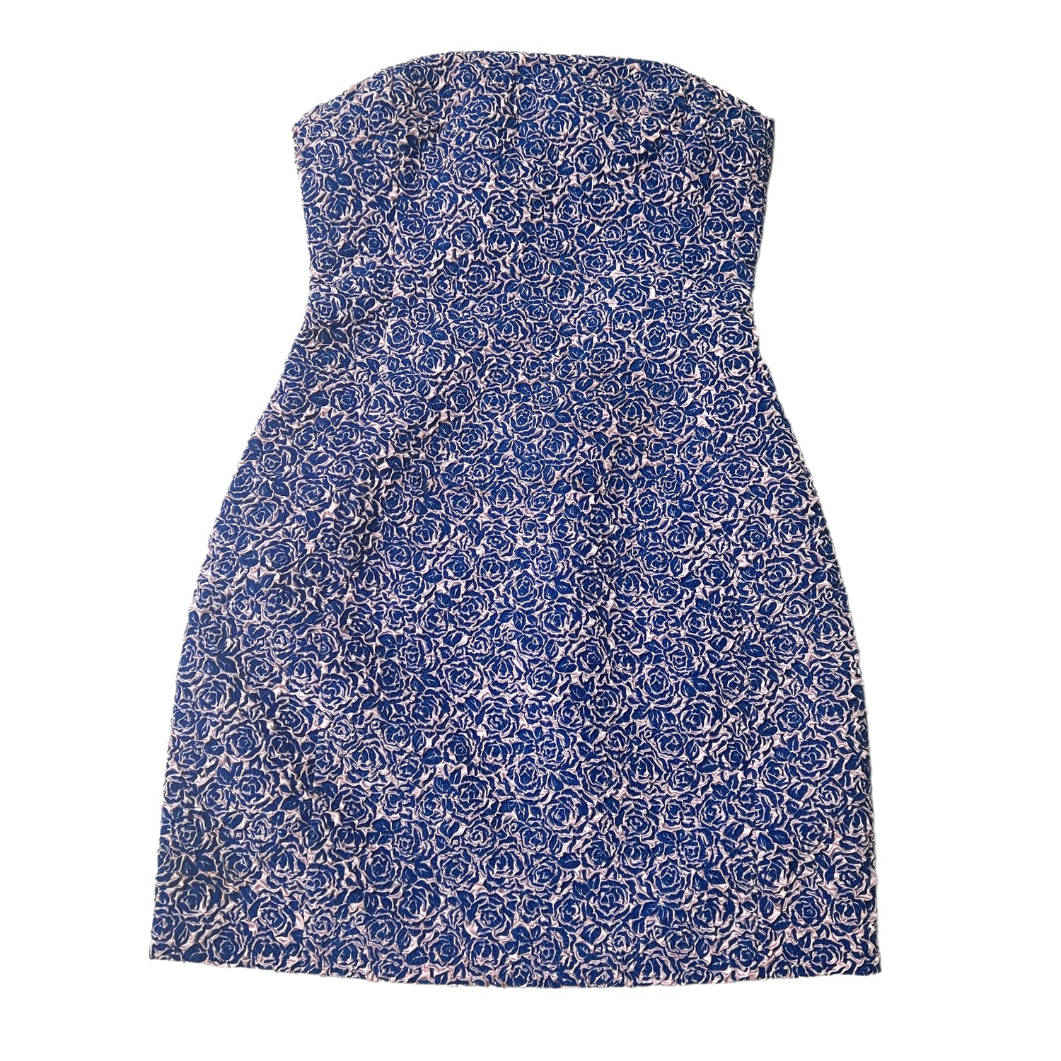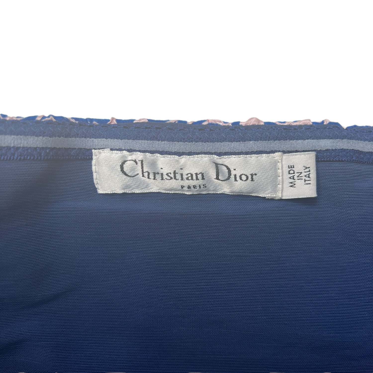 Christian Dior 2010 vintage dress by Galliano. Bustier and strapless style. Flower print on a textured finish. Two slit pockets. Concealed zipper at back.