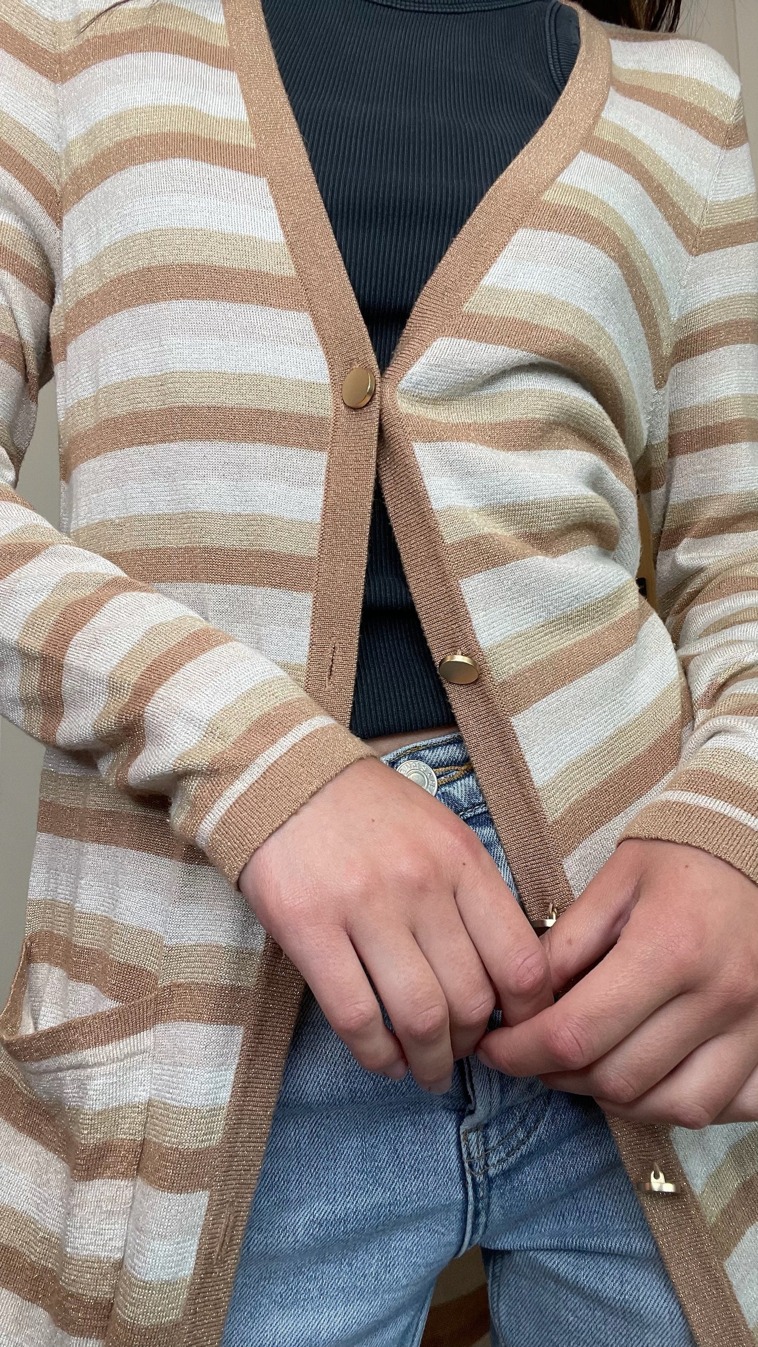 L'Agence cream & gold duster. Button down cardigan. Slit pockets. Designer size Medium.