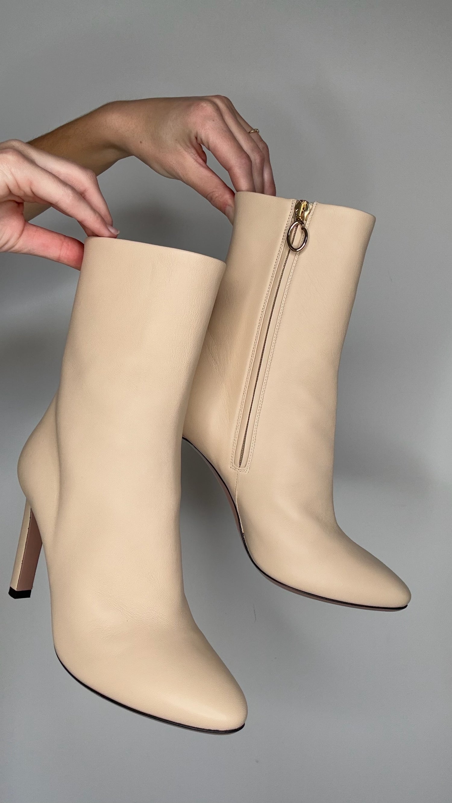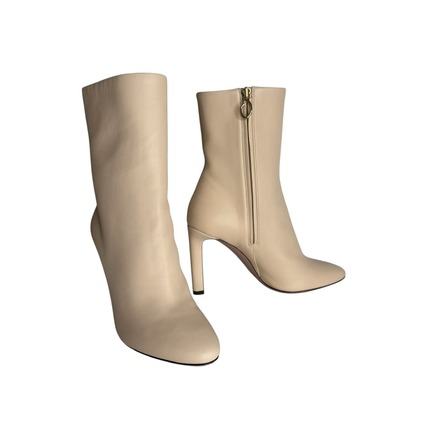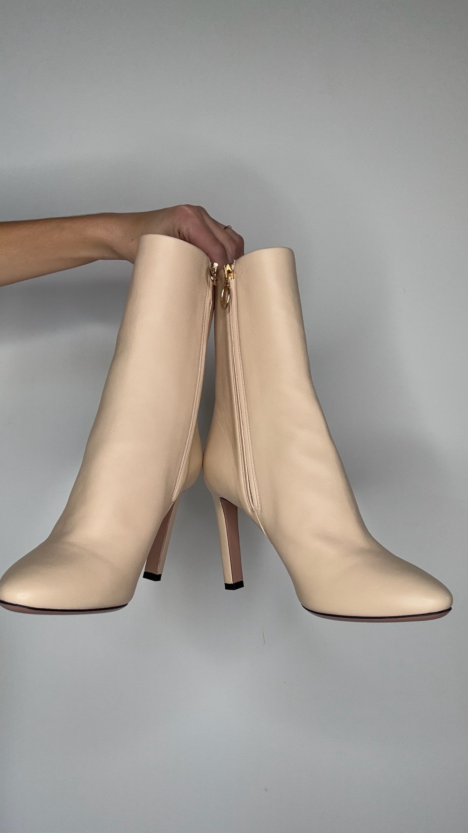 Oscar de la Renta cream leather boots. Made of the softest lambskin leather. Zipper closure at sides. Designer size 37.5