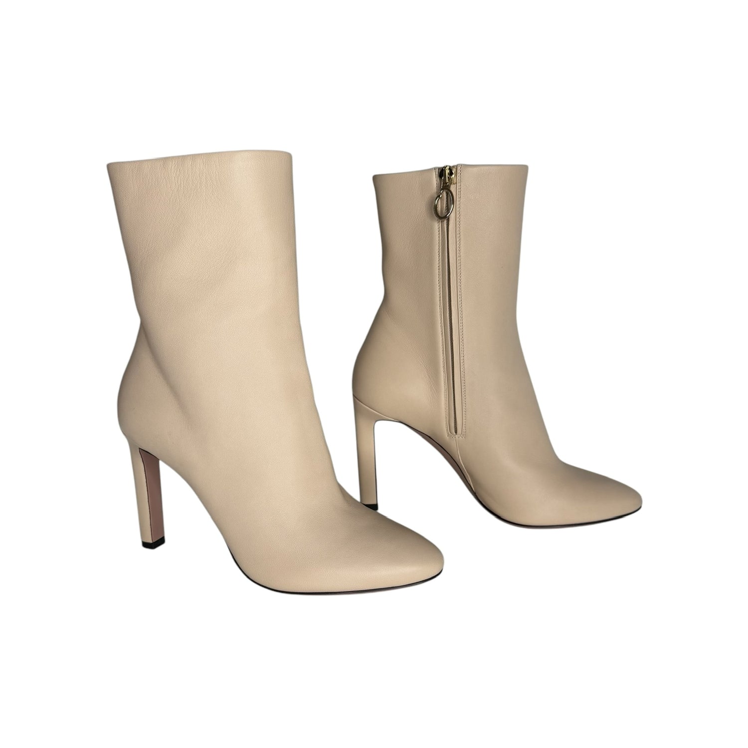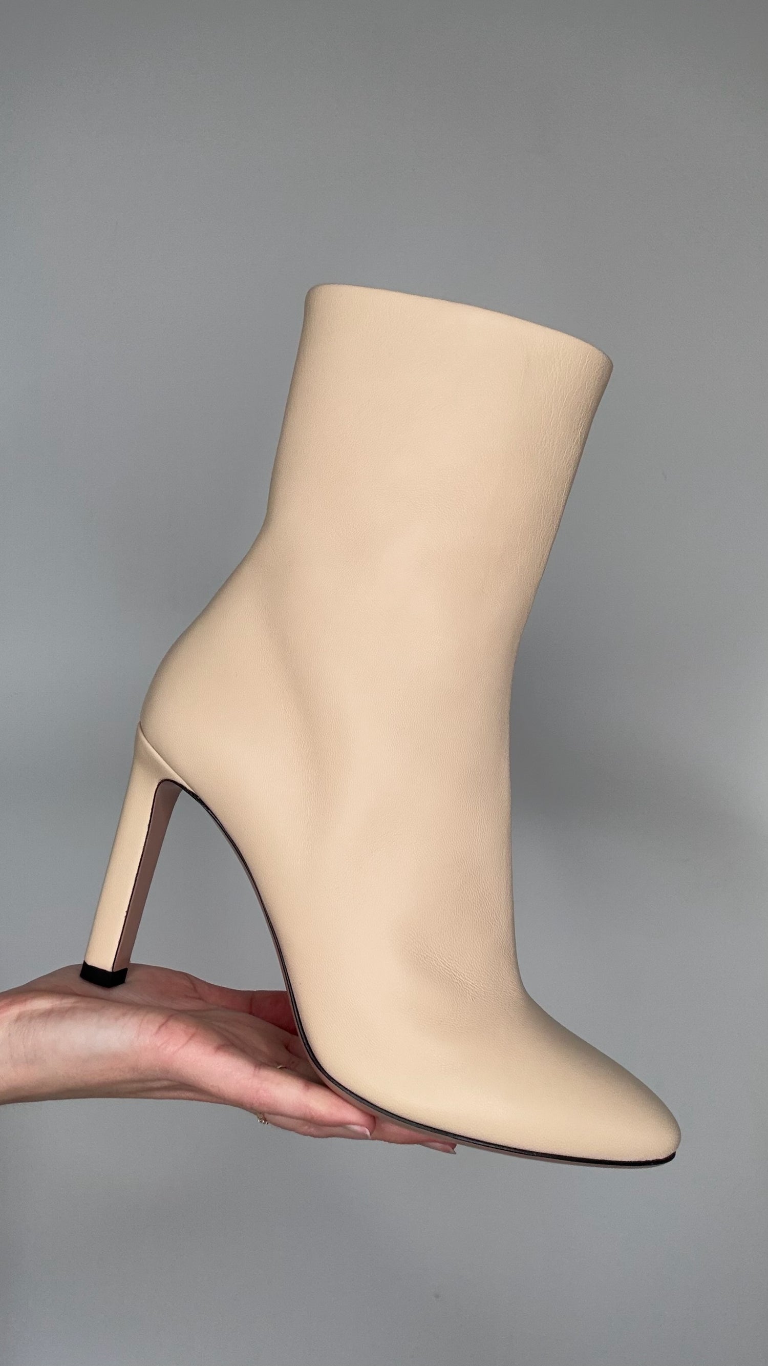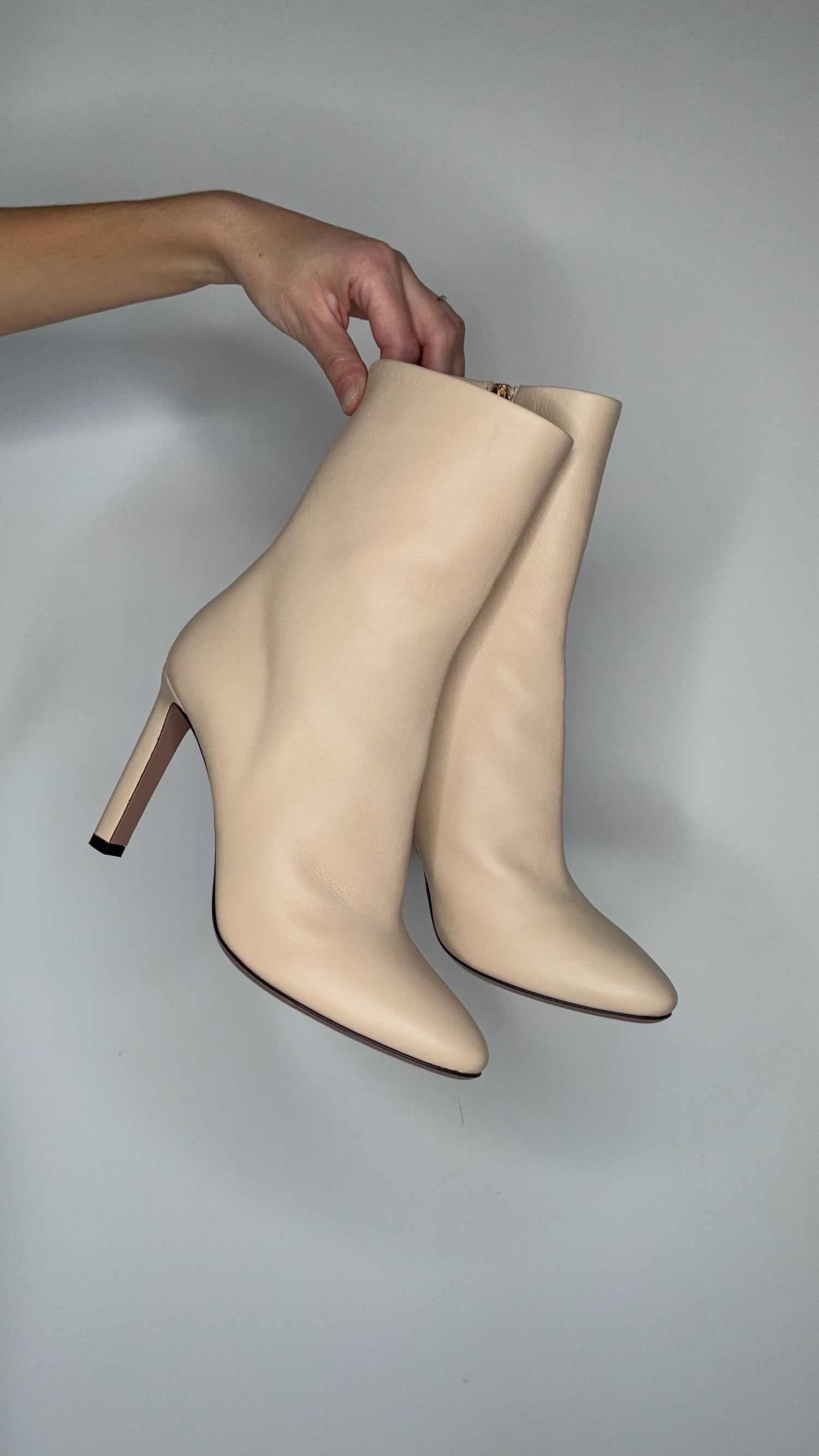 Oscar de la Renta cream leather boots. Made of the softest lambskin leather. Zipper closure at sides. Designer size 37.5