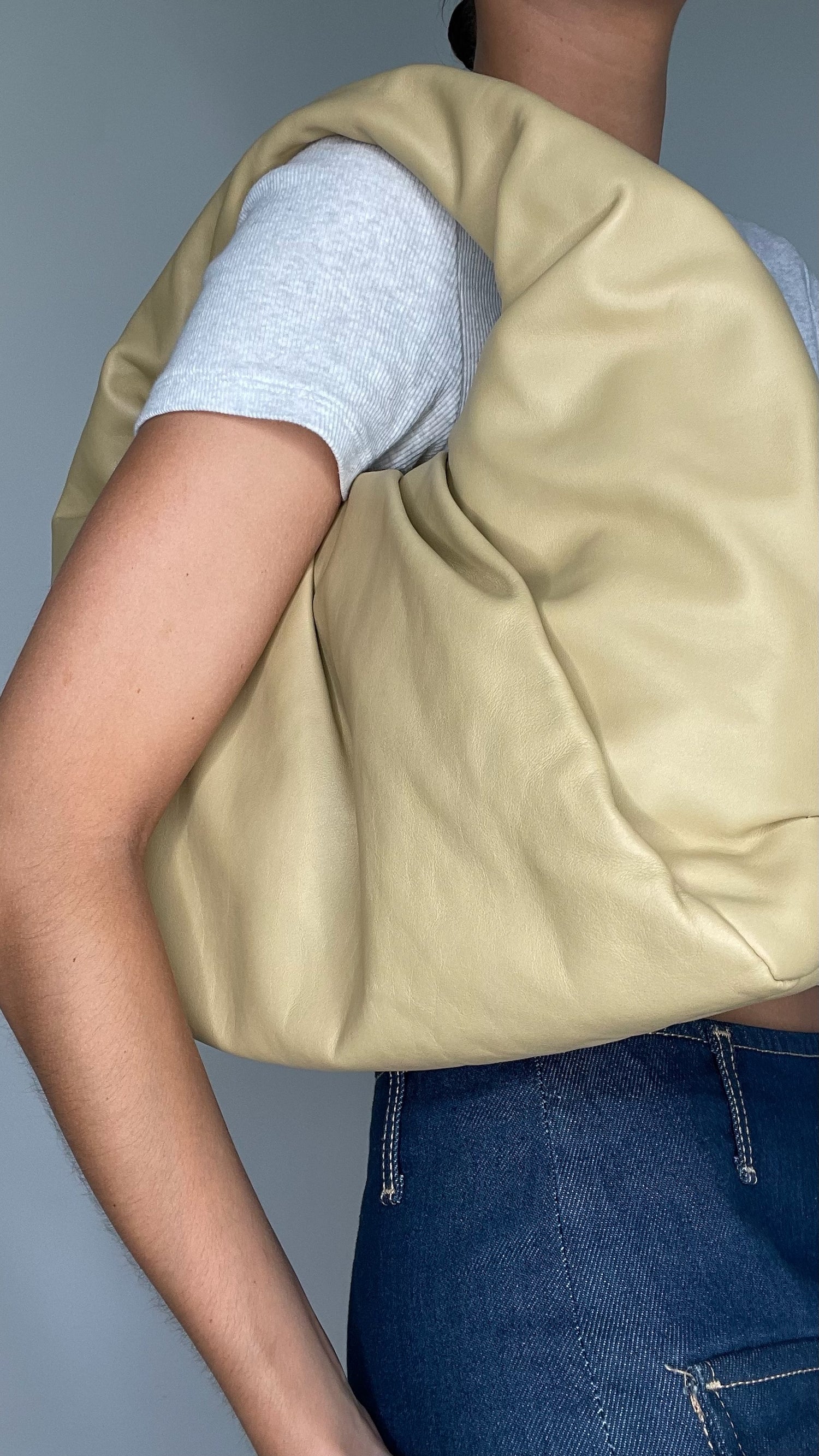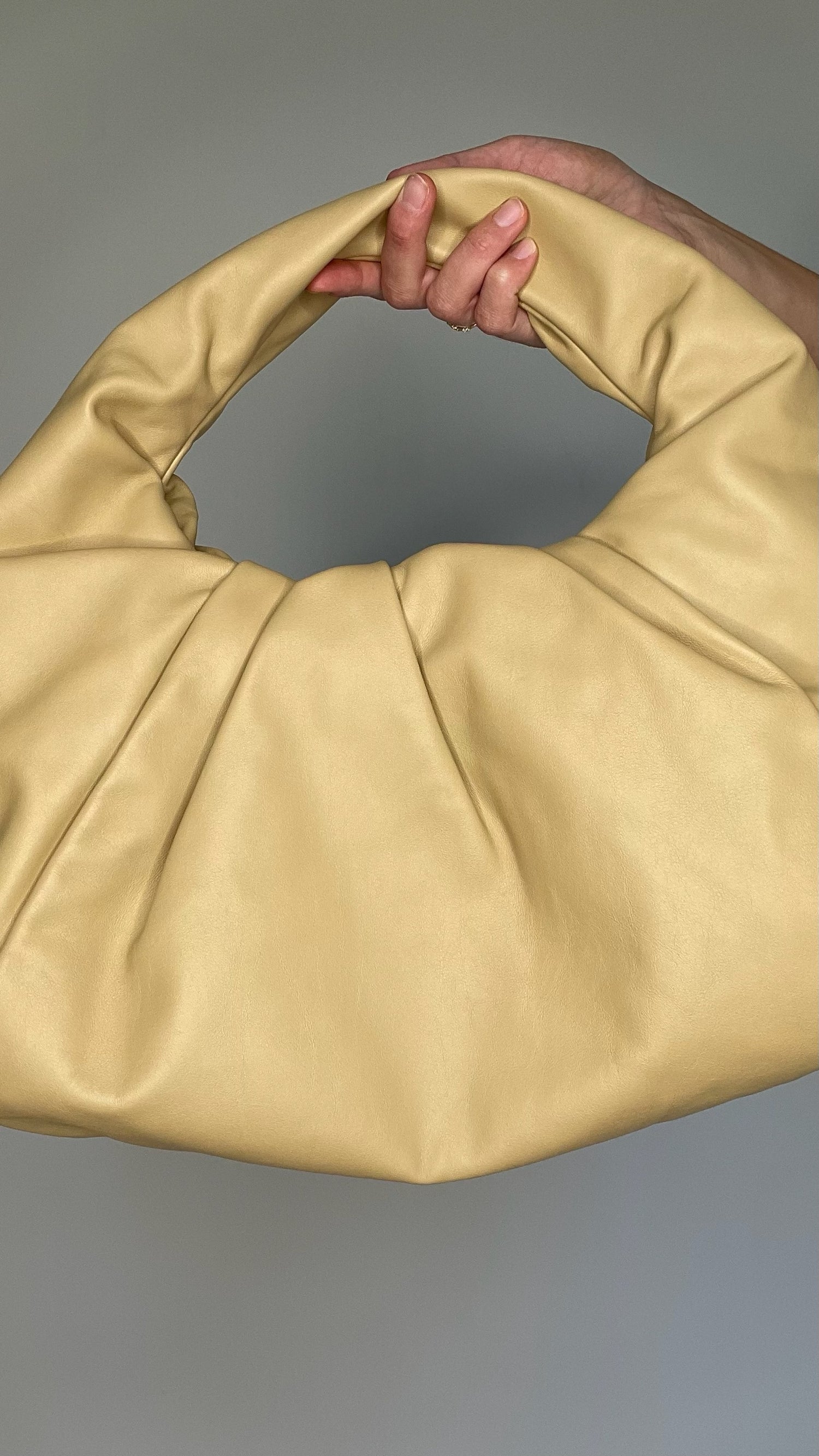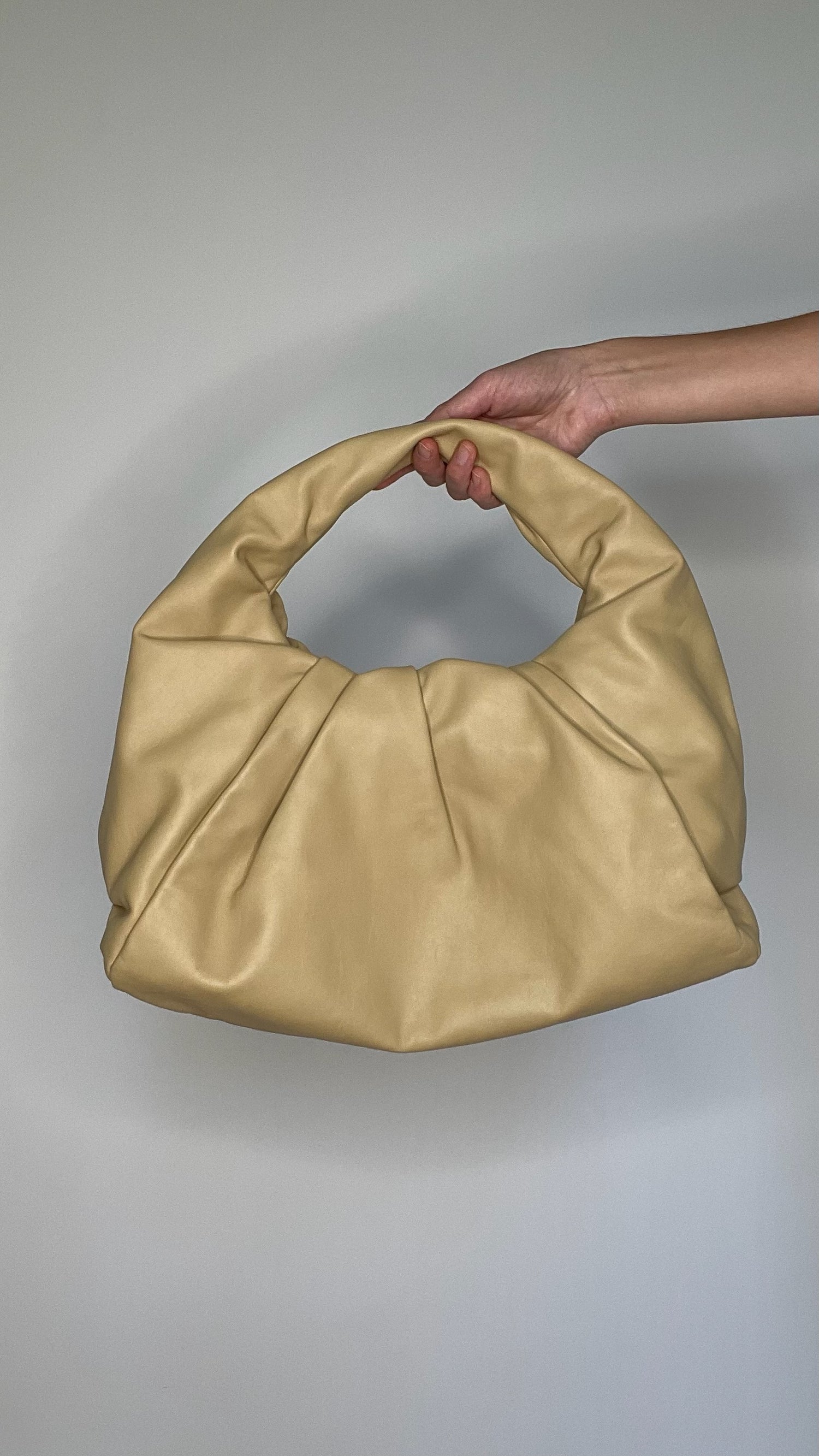 Bottega Veneta cream hobo bag. Buttery soft leather. Magnetic snap closure. Rushed leather.