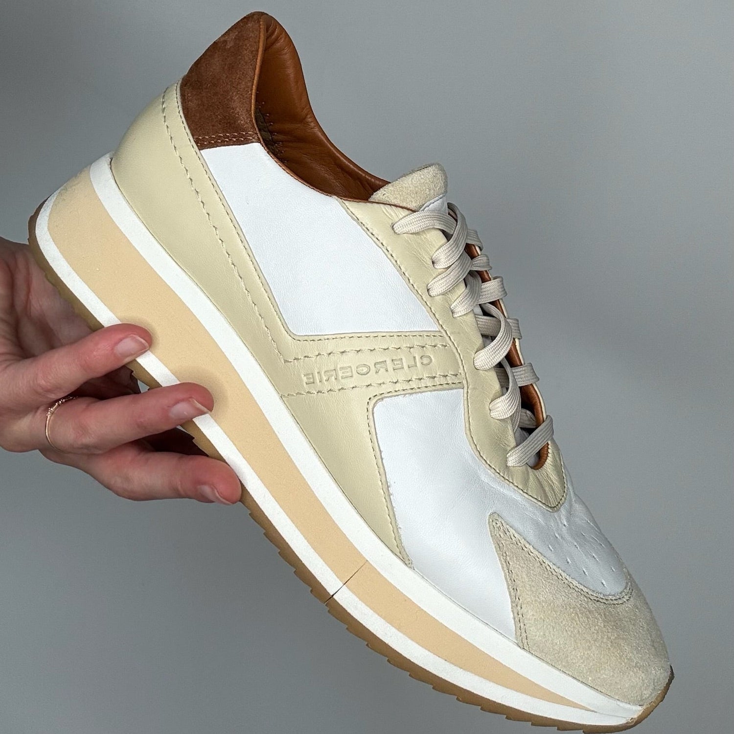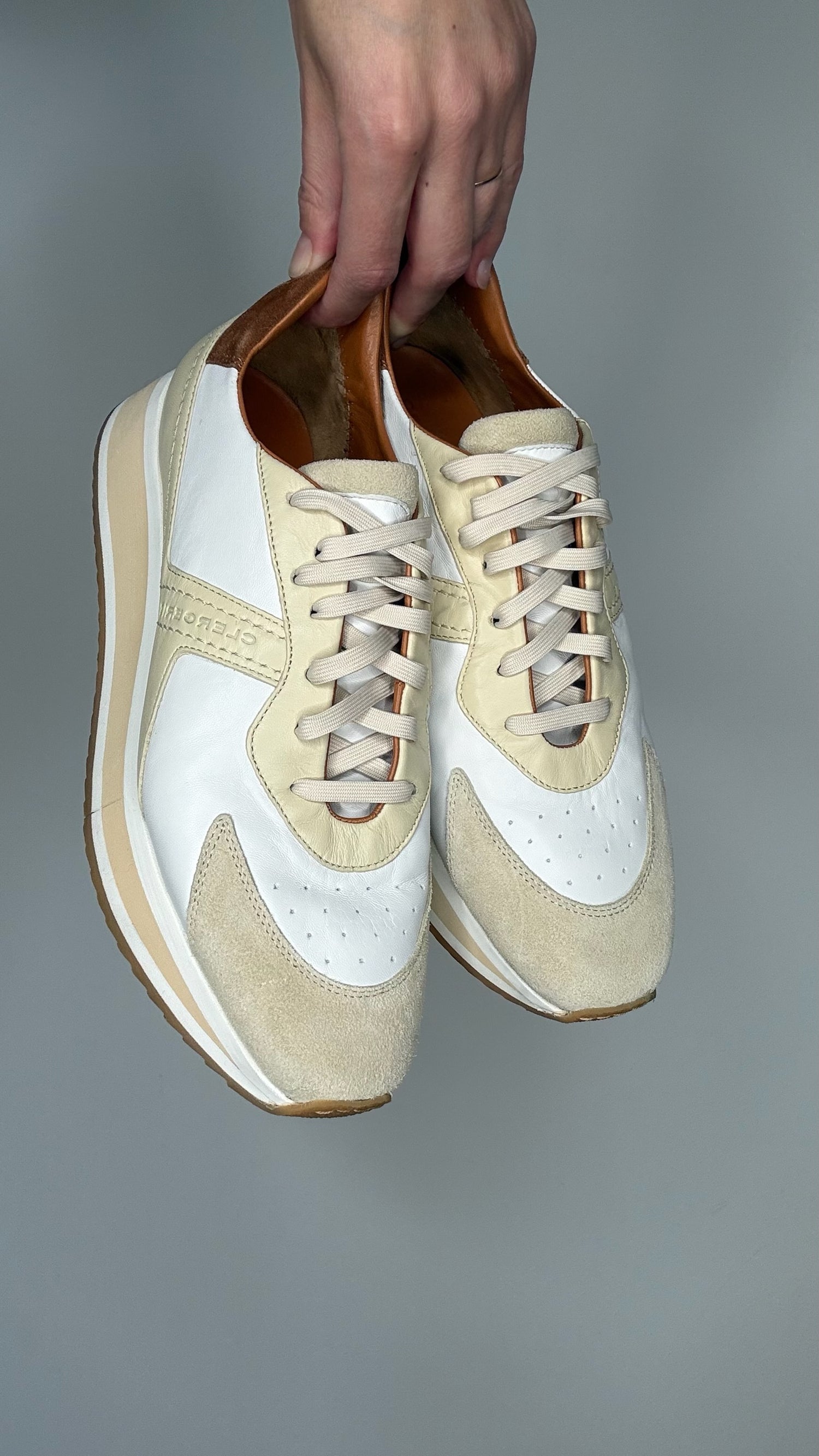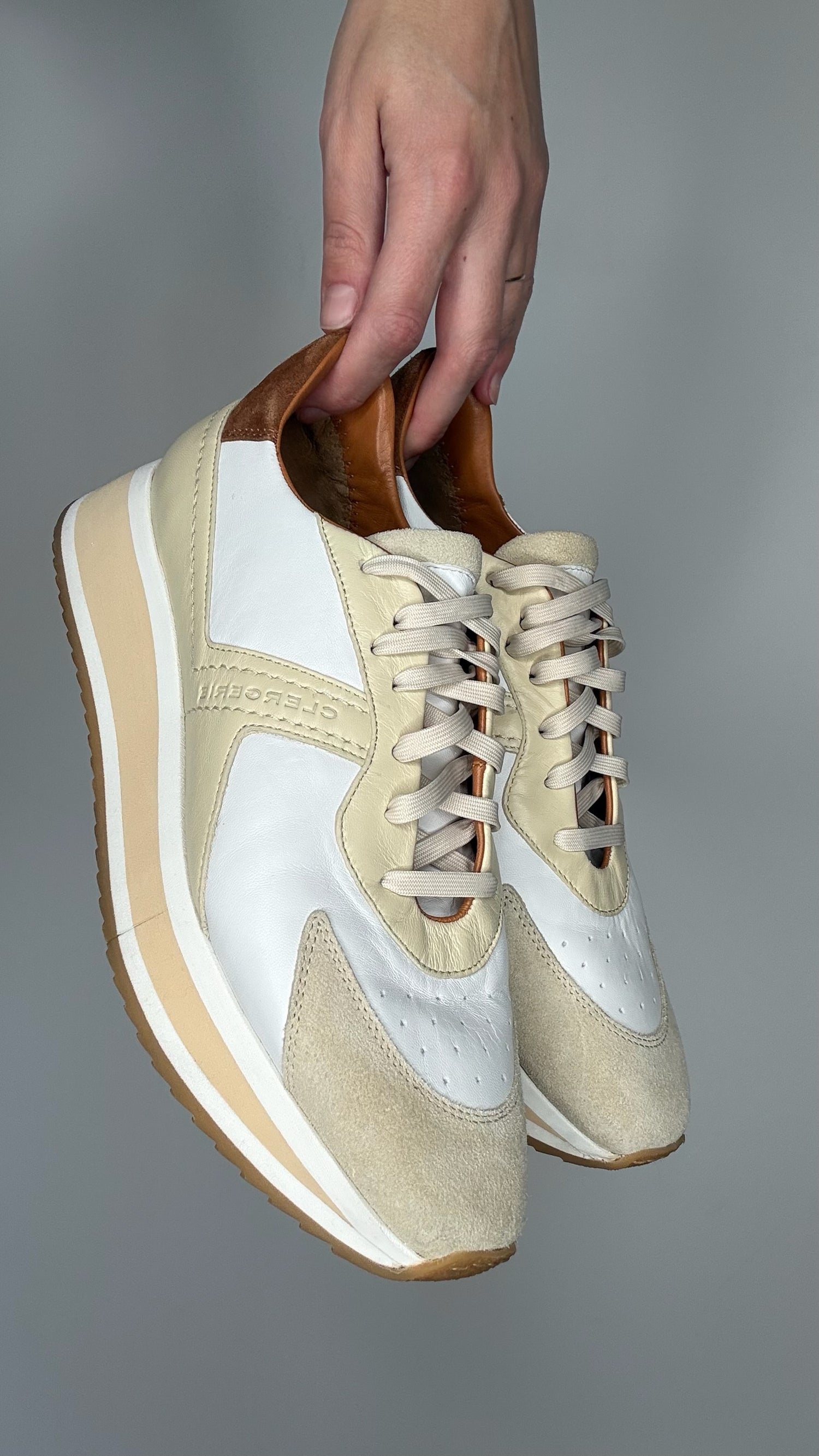 Robert Clergerie cream leather and suede sneakers. Designer size 39.5