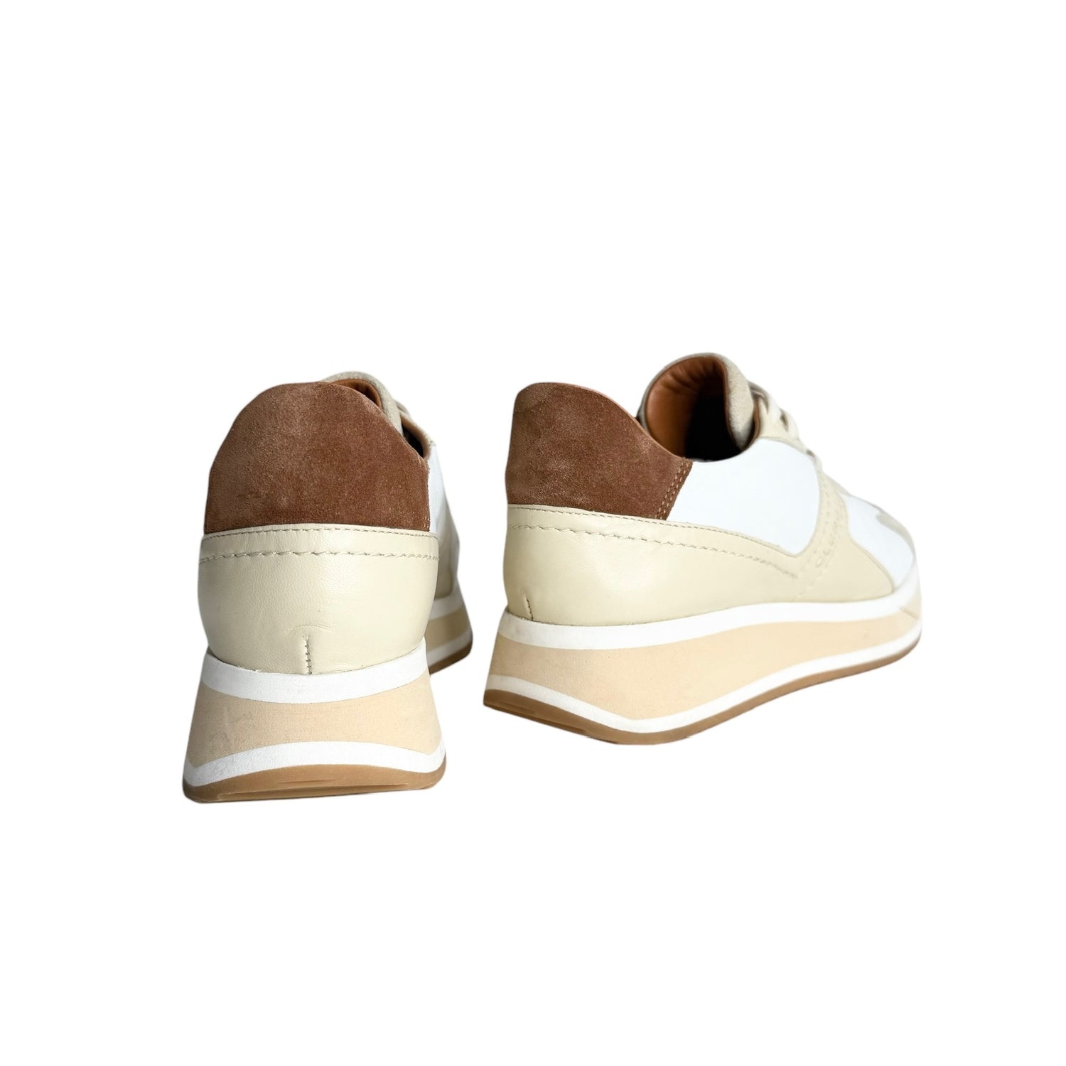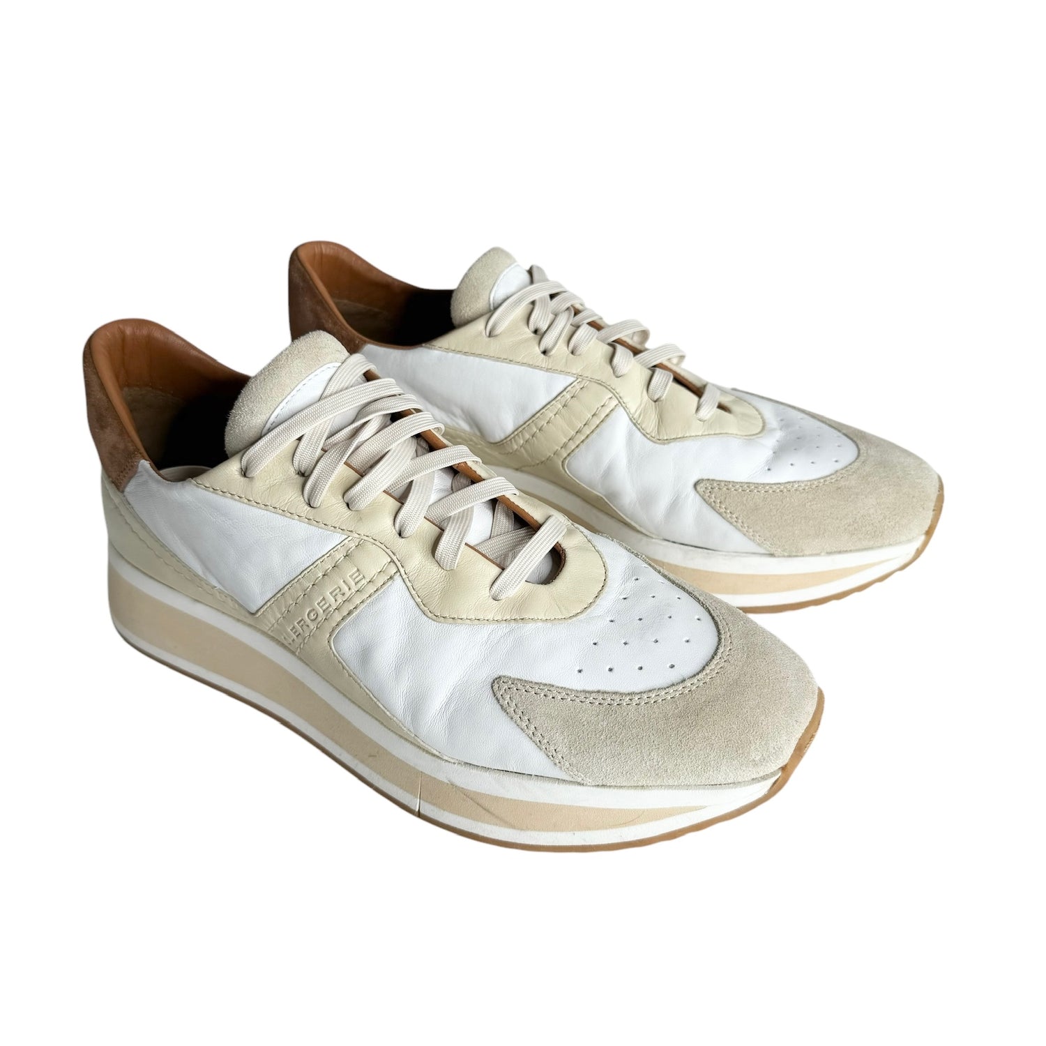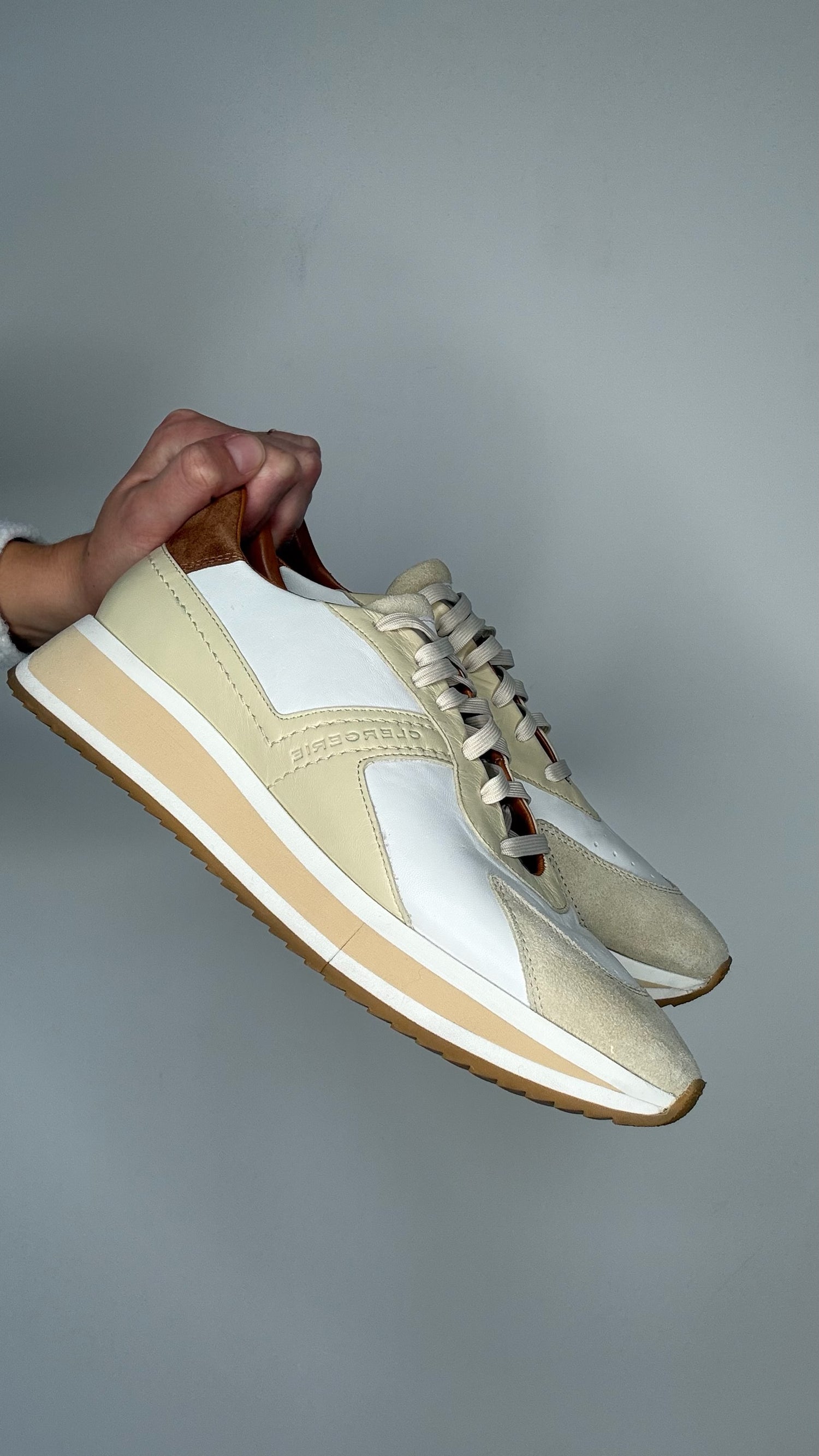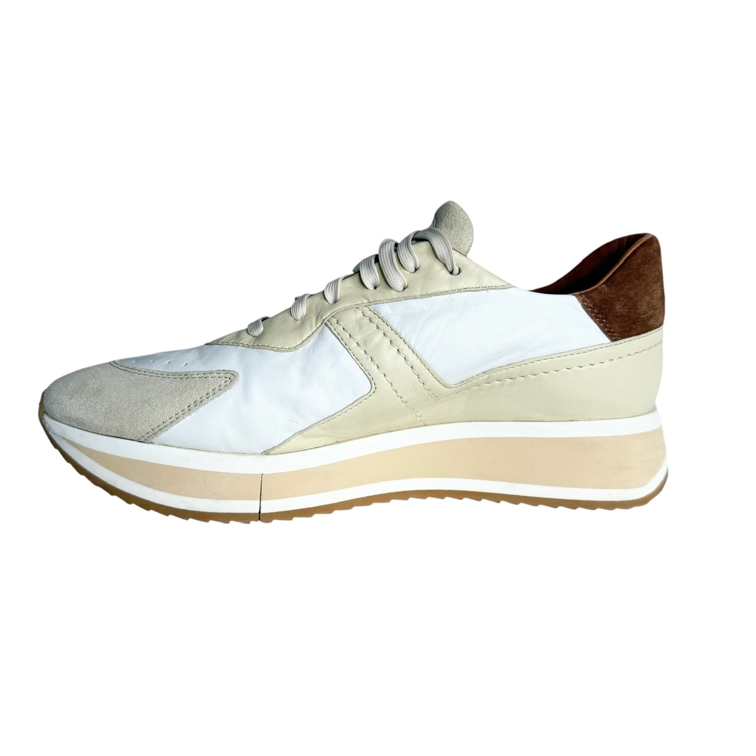 Robert Clergerie cream leather and suede sneakers. Designer size 39.5
