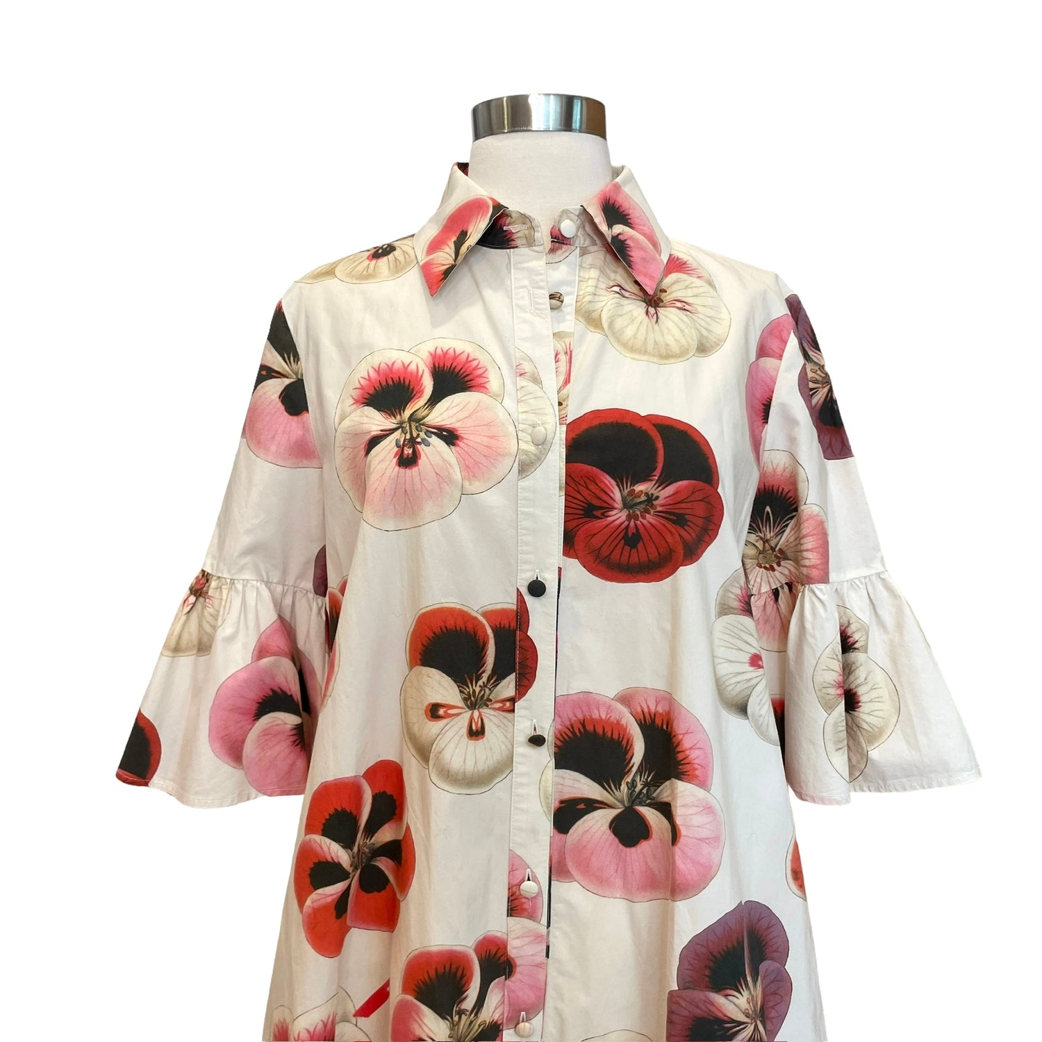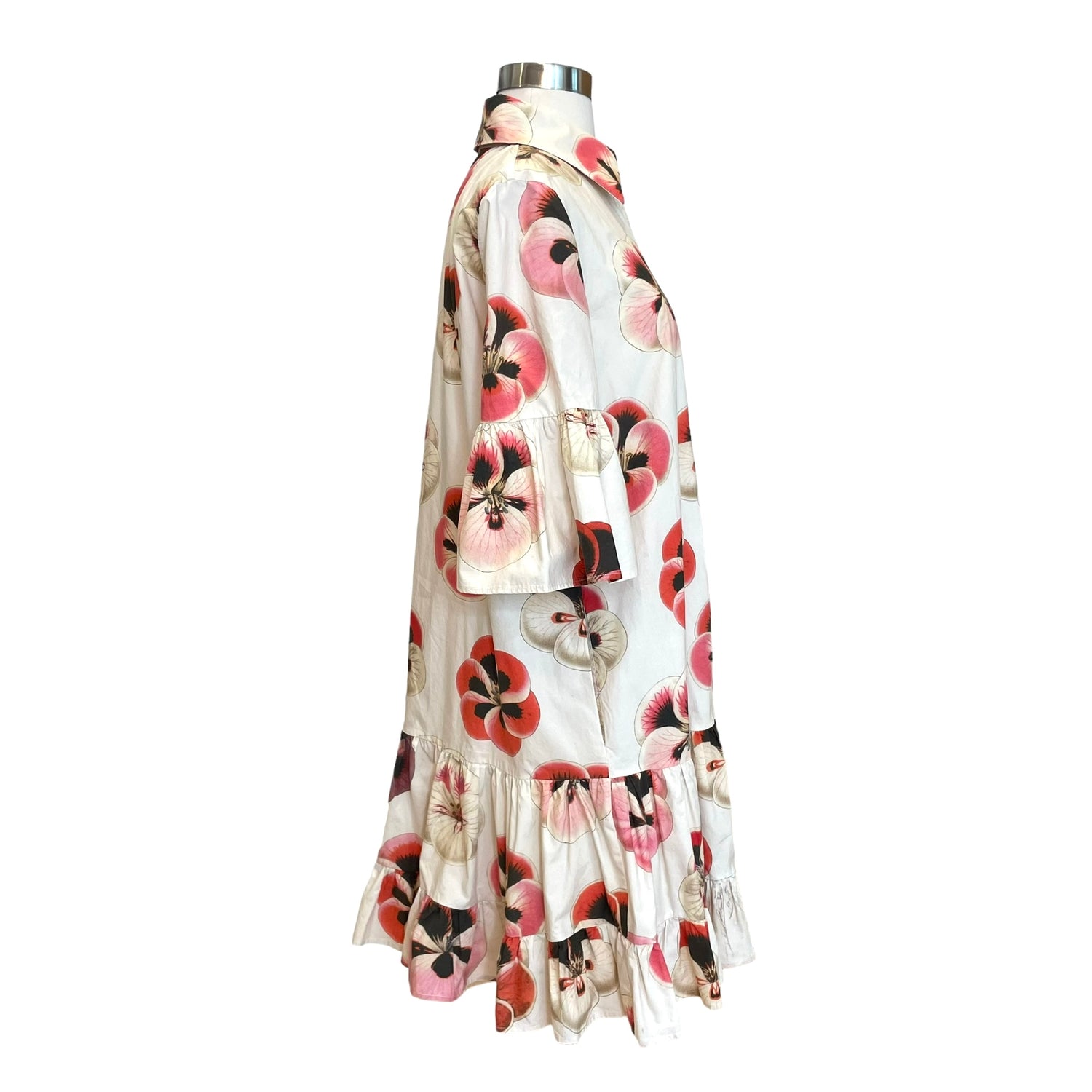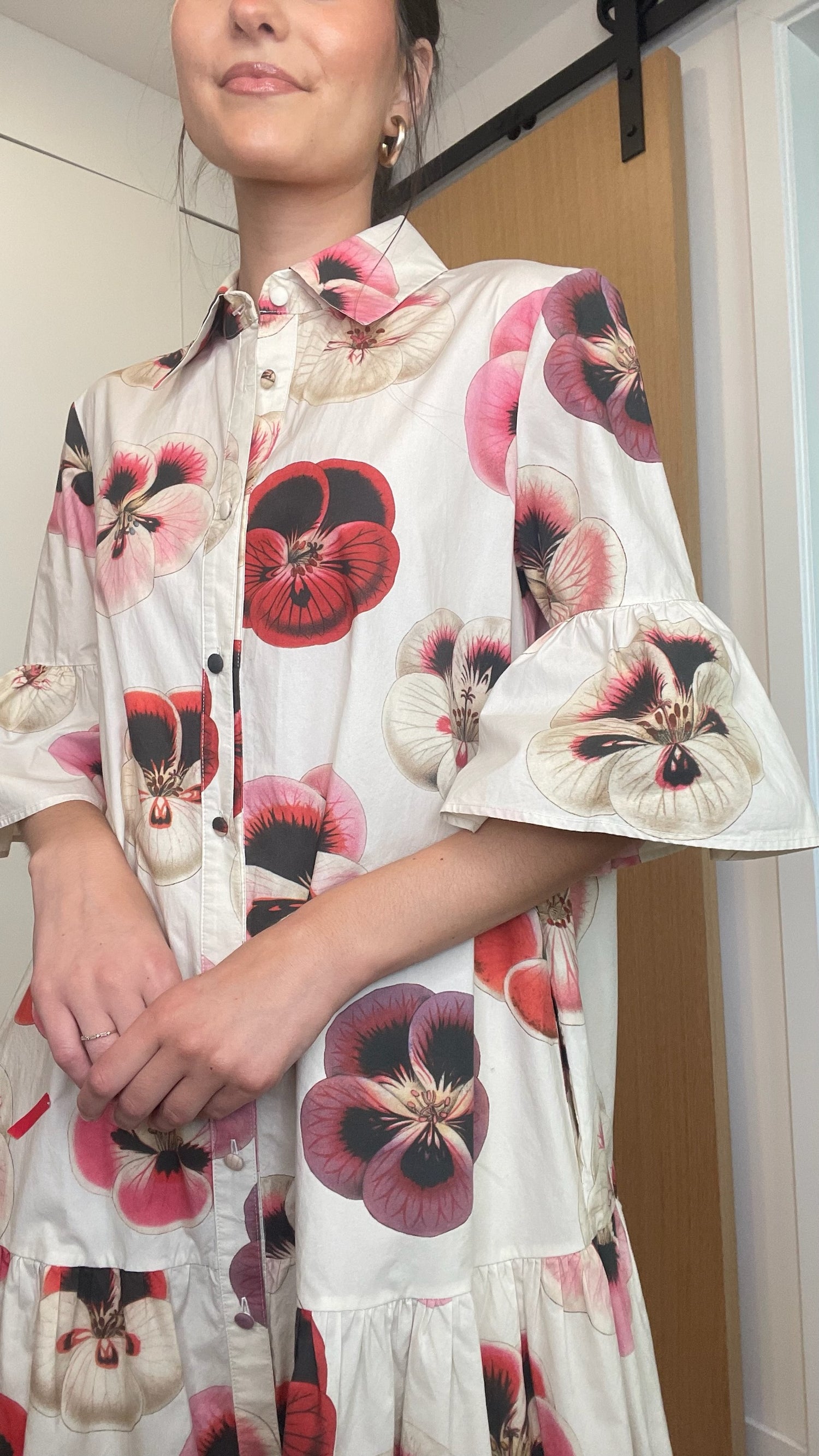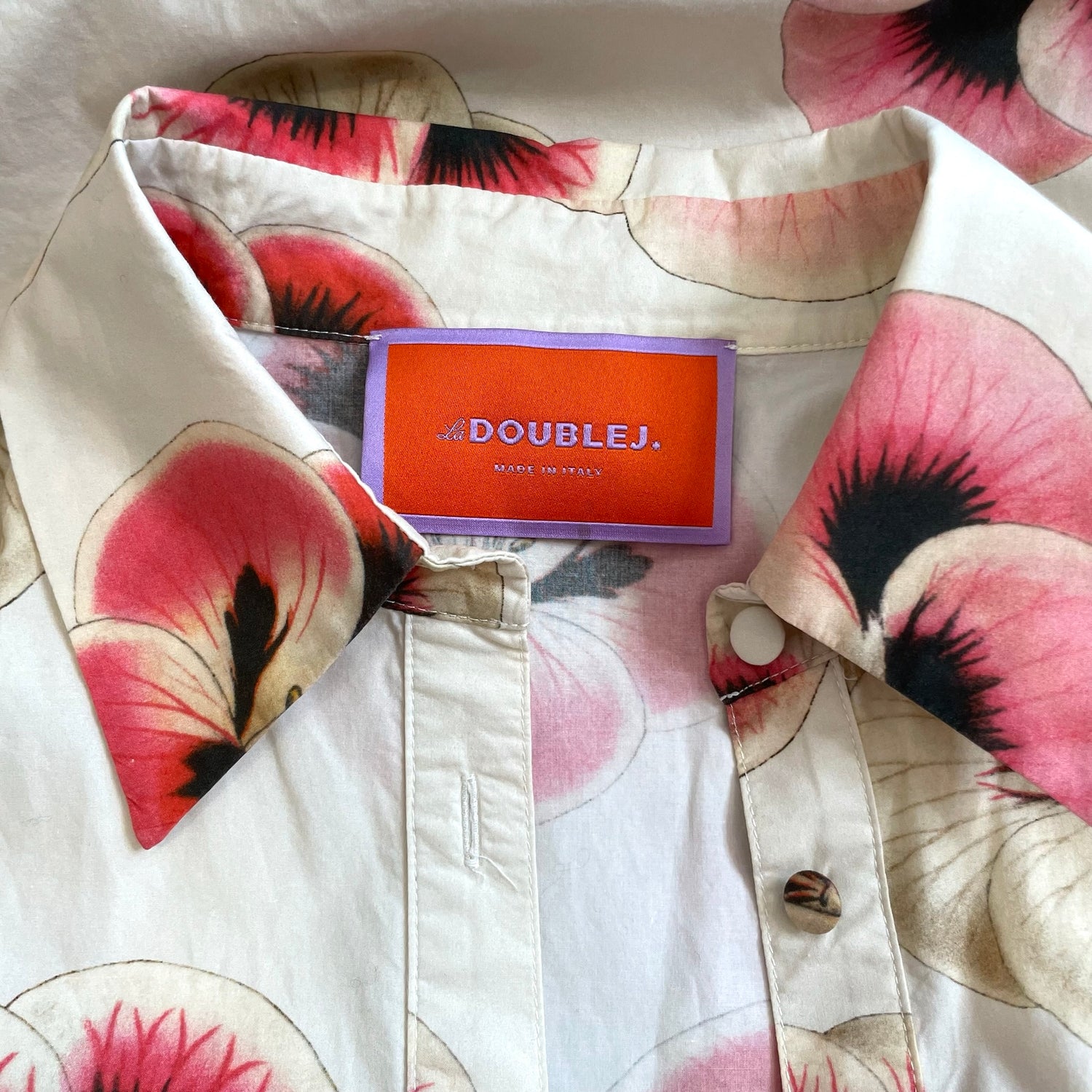 La Double J floral dress. Cream and pink. Button closure at front. Pointed collar. Slit pockets. Designer size medium.