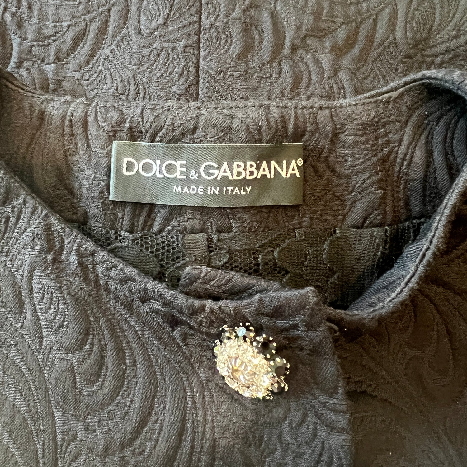 Dolce & Gabbana black cropped top. jacket to wear on top of dresses. Crystals embellished buttons with snap closure. Designer size 38.