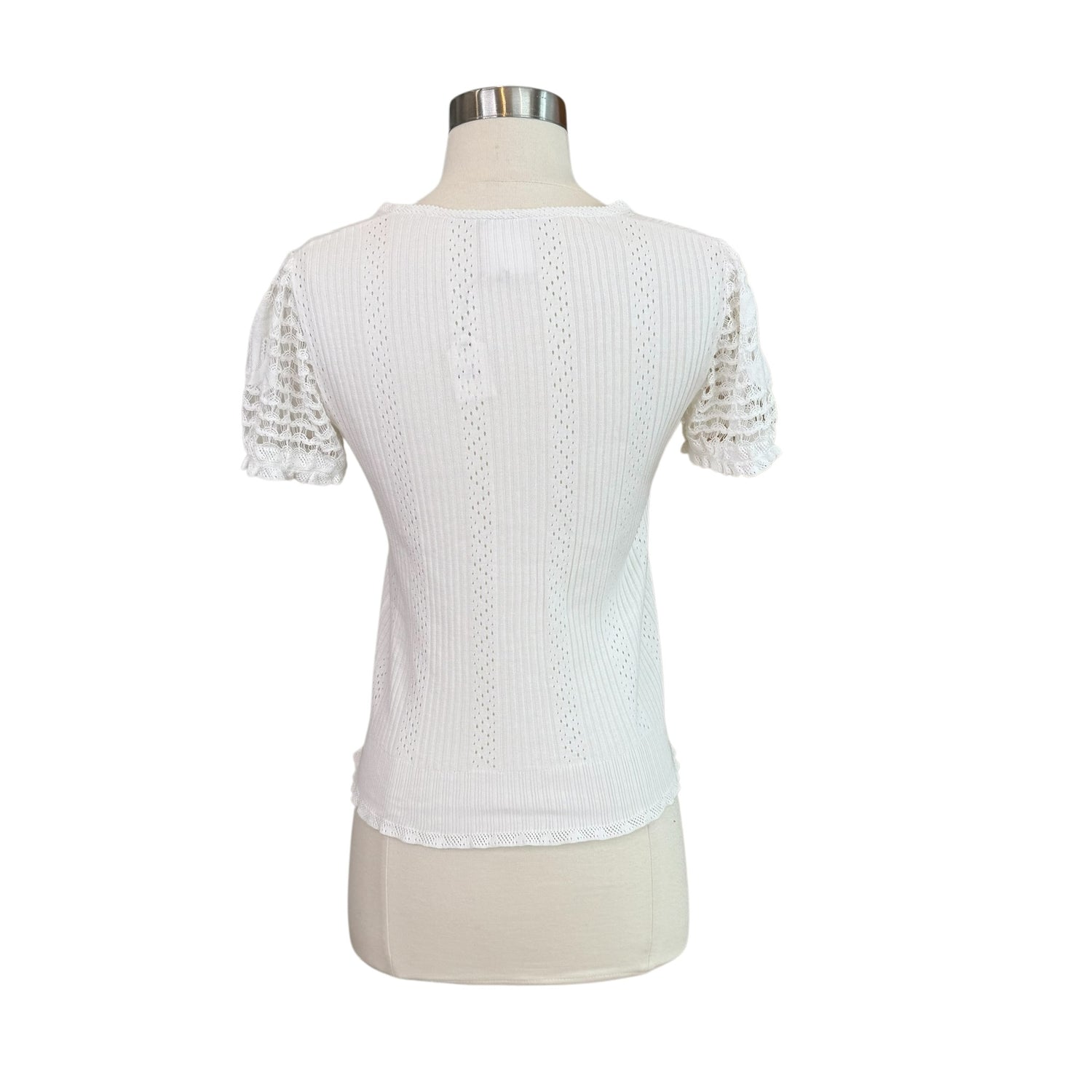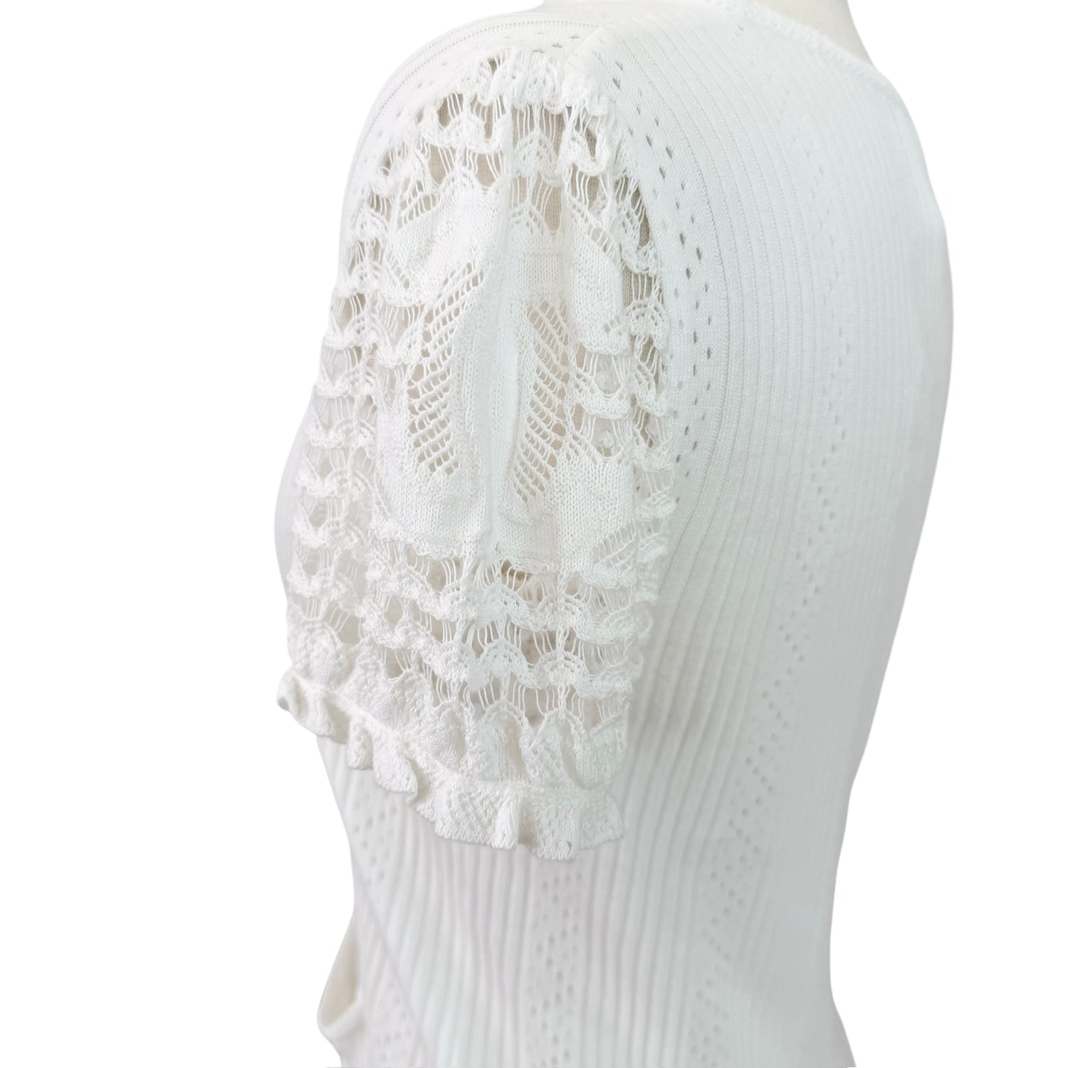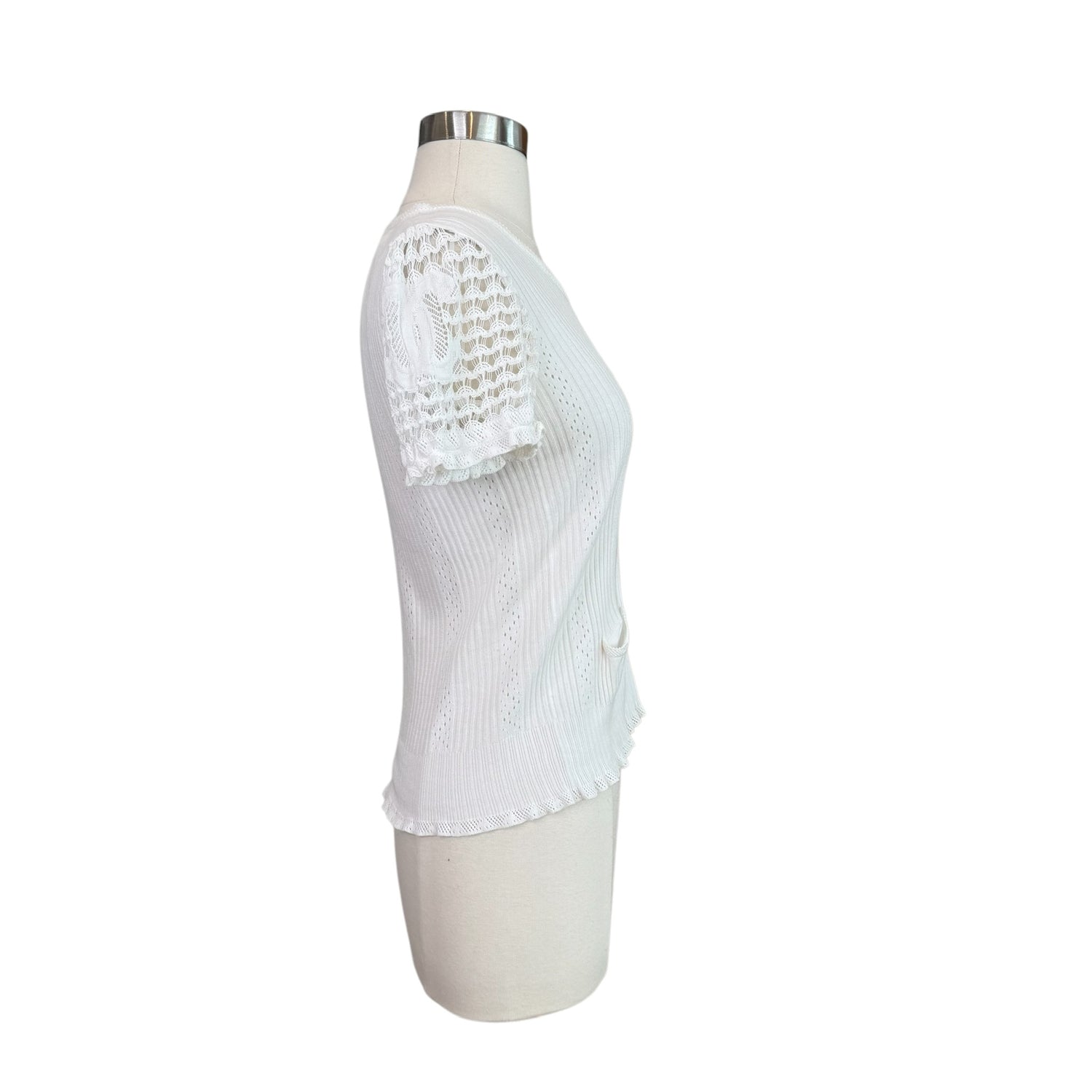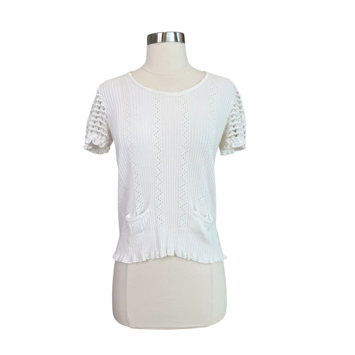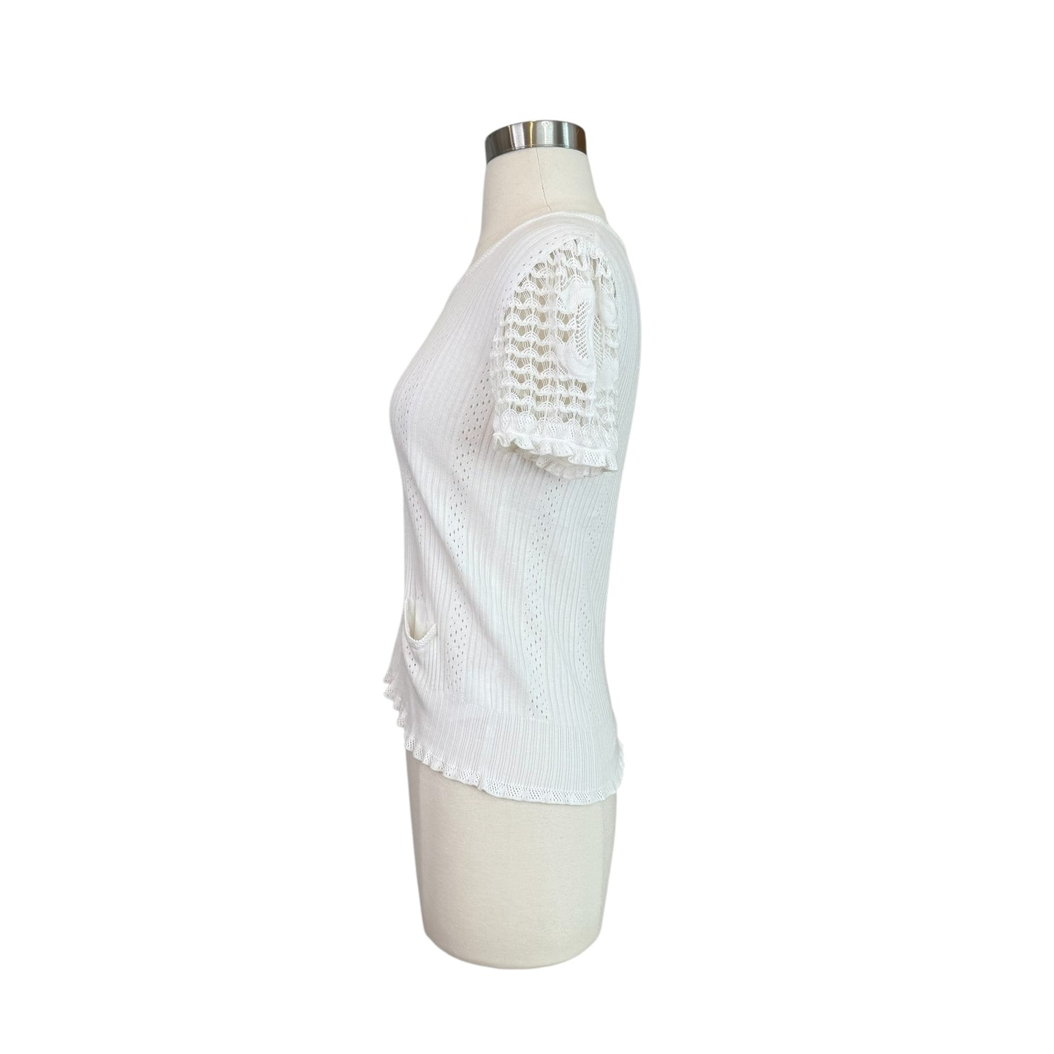 Chanel white top. Cruise 2005 collection. CC logo at sleeves. Pockets at front. Designer size 38.