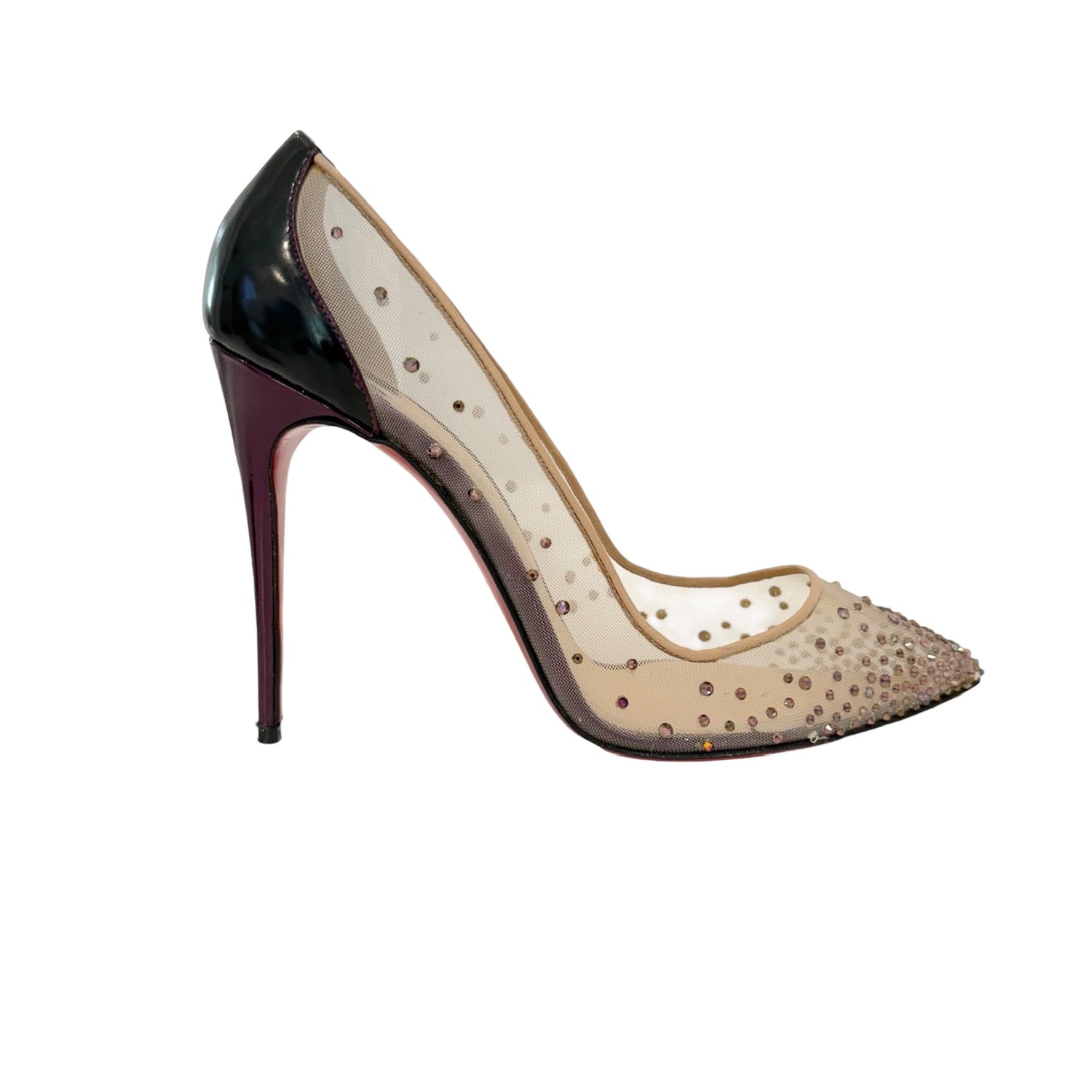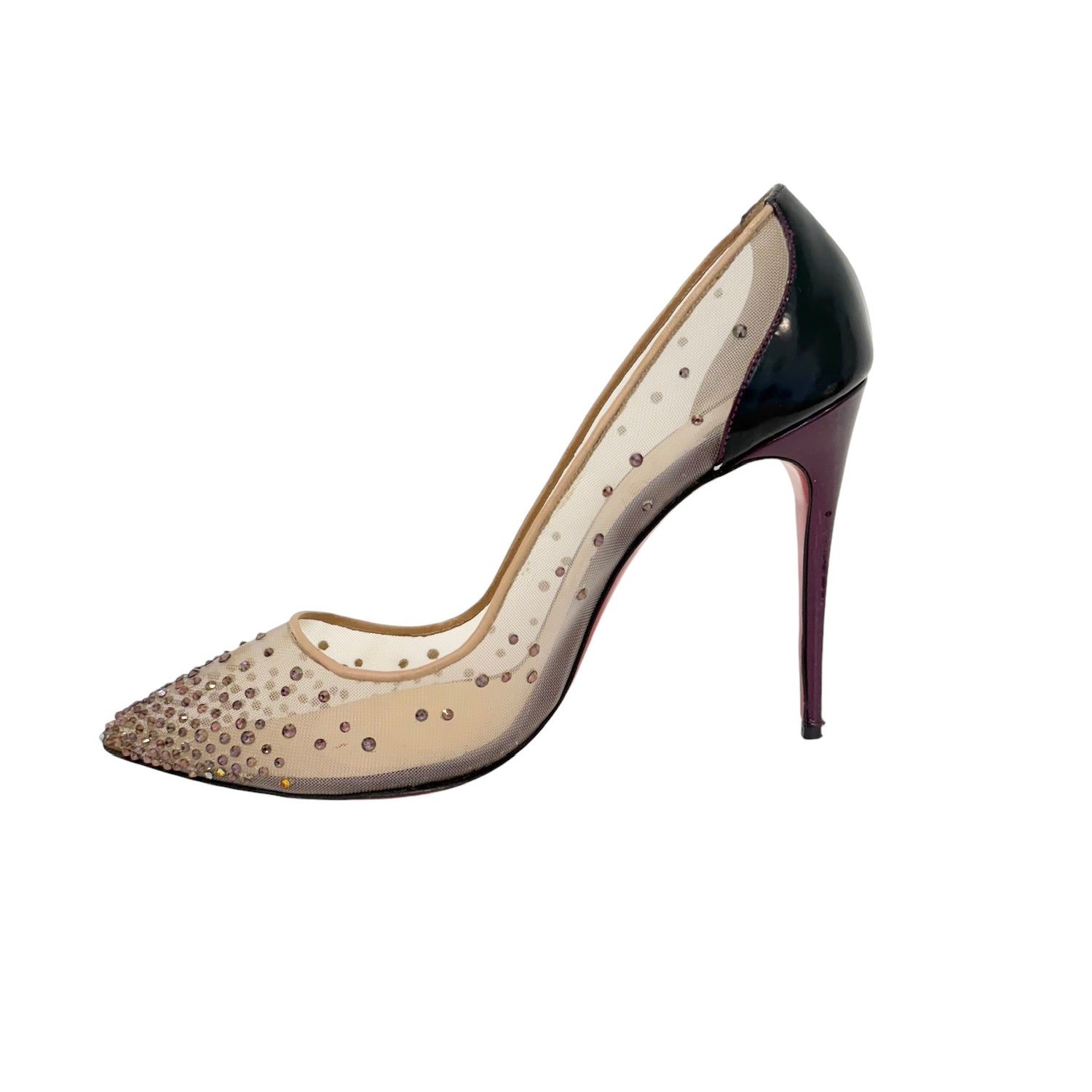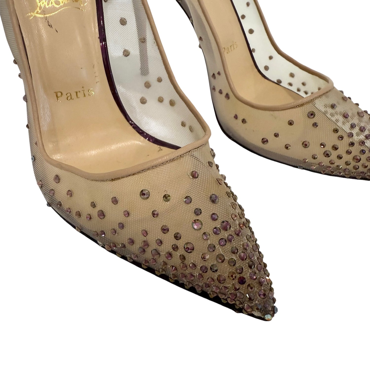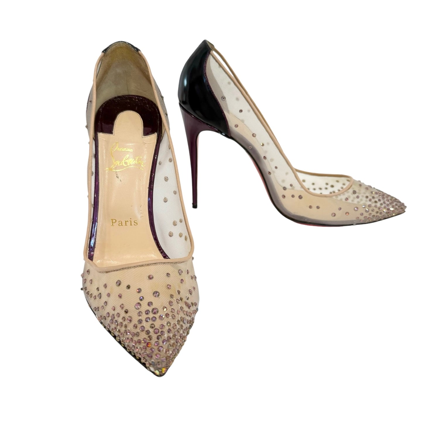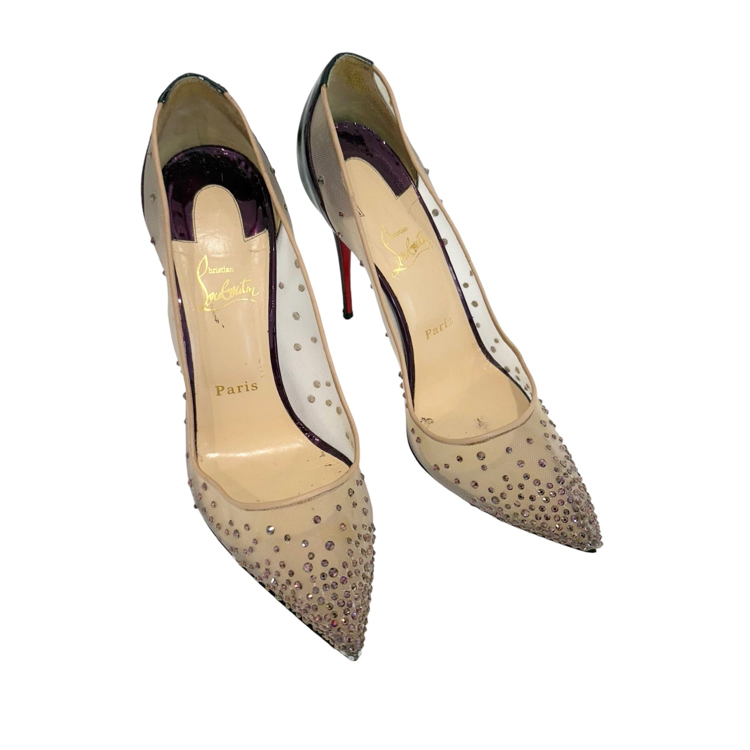 Christian Louboutin crystal embellished heels. Pointed toe. Designer size 40.
