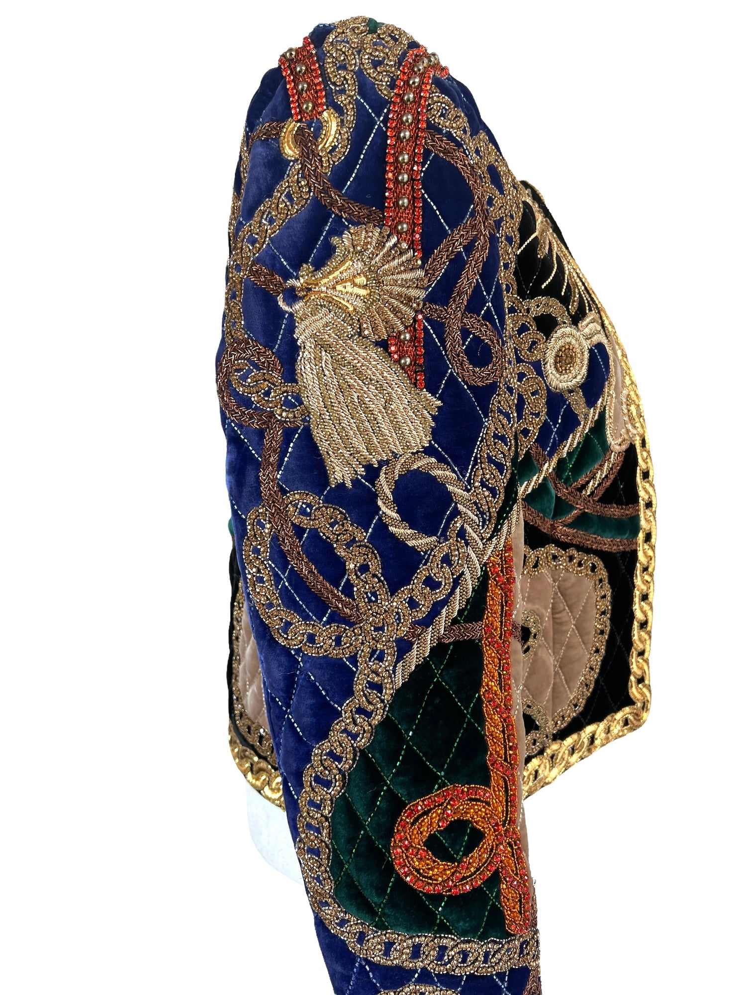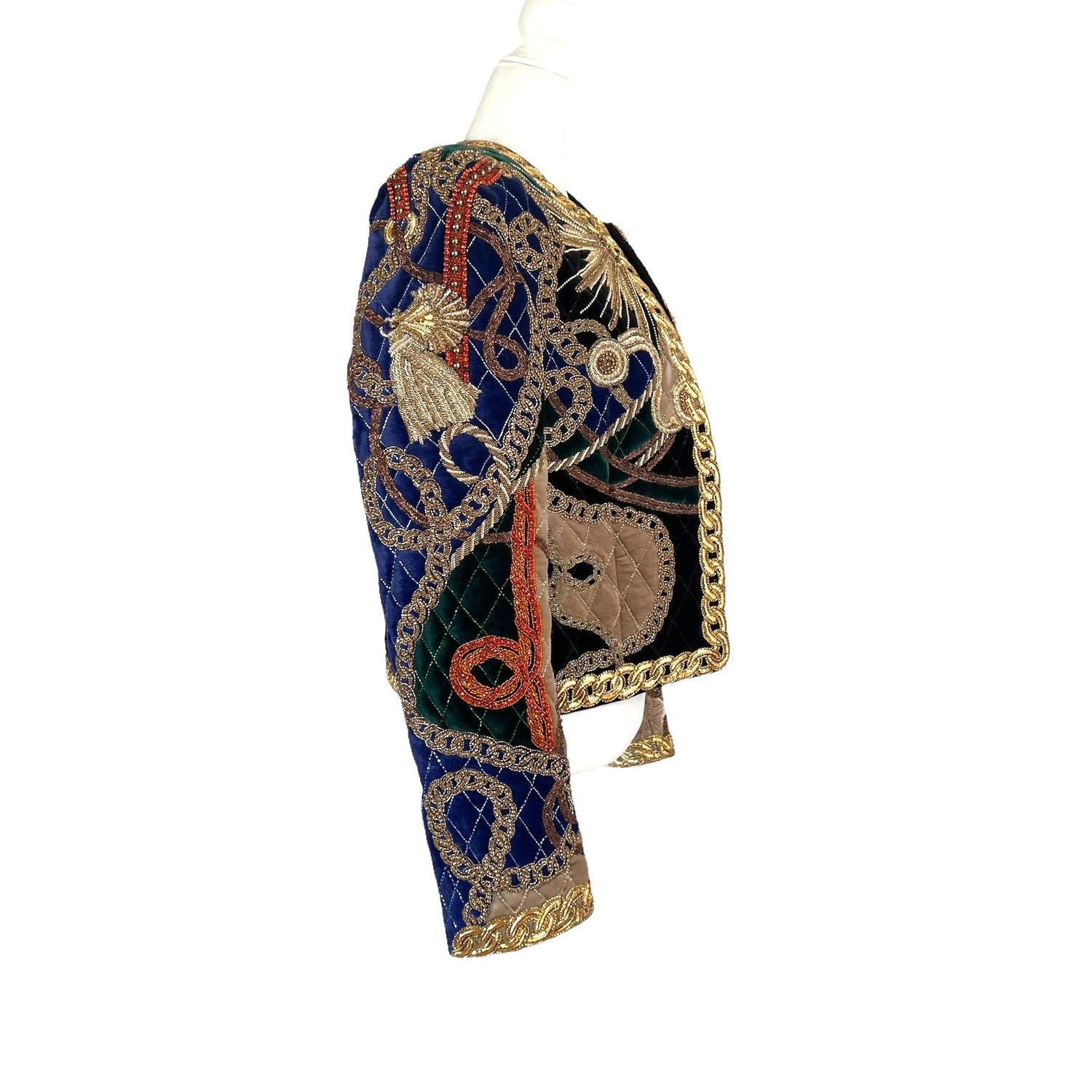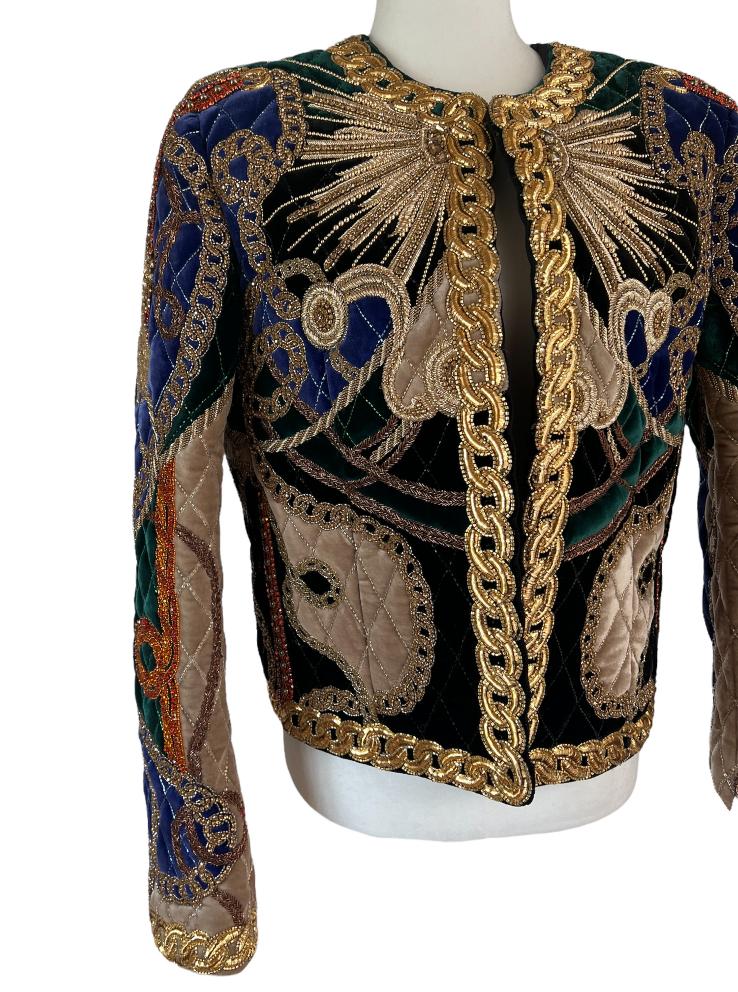 Incredibly precious jacket which was custom-made by Balmain. This needs to find a particular home. Made of the finest fabric and material. The colours are deep and vivid. Size 34.