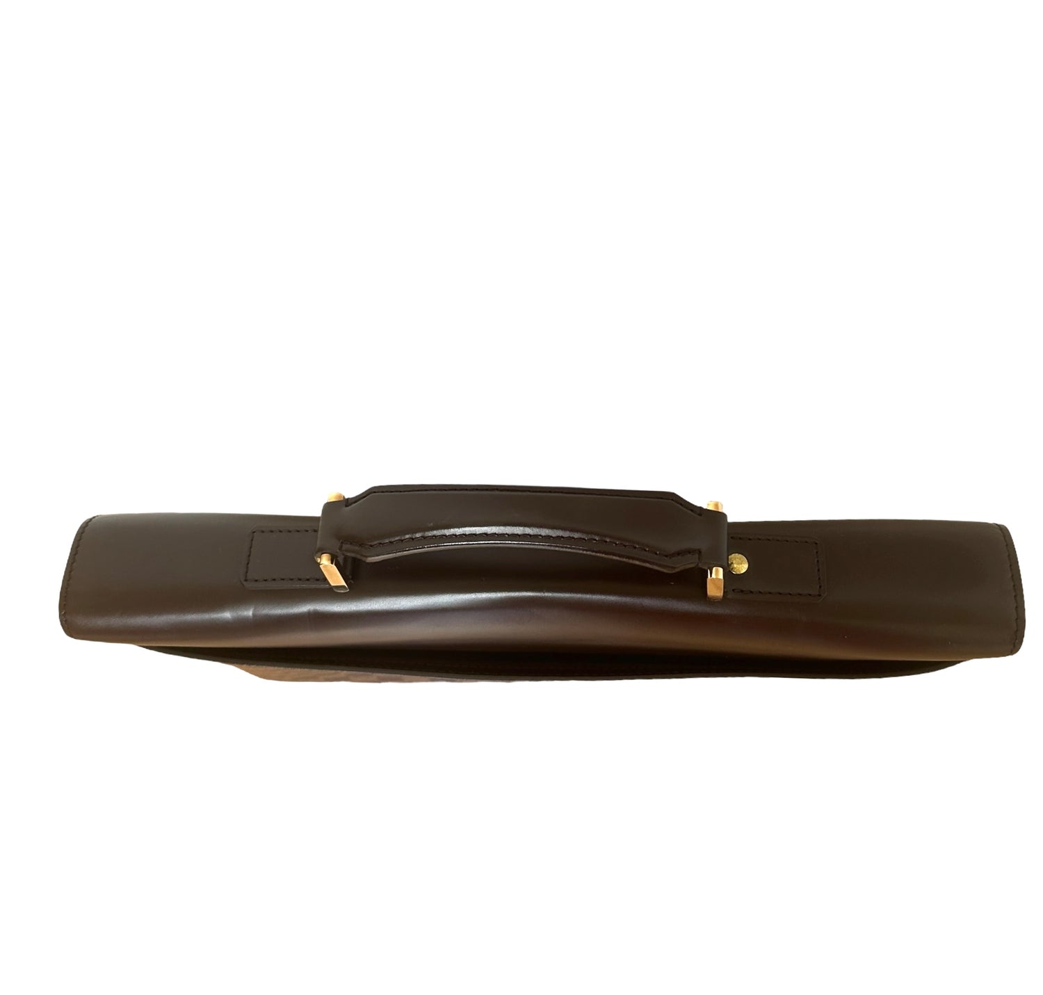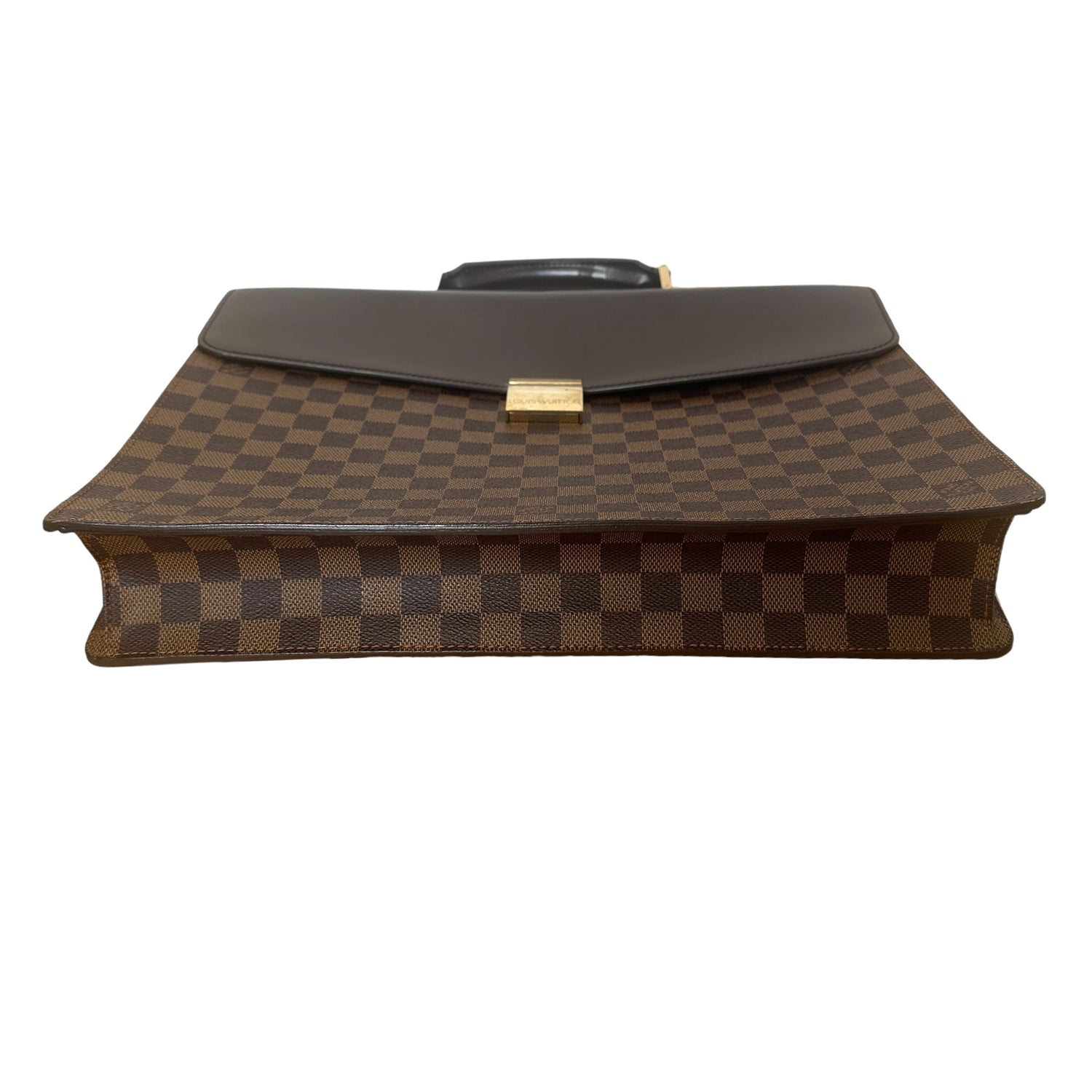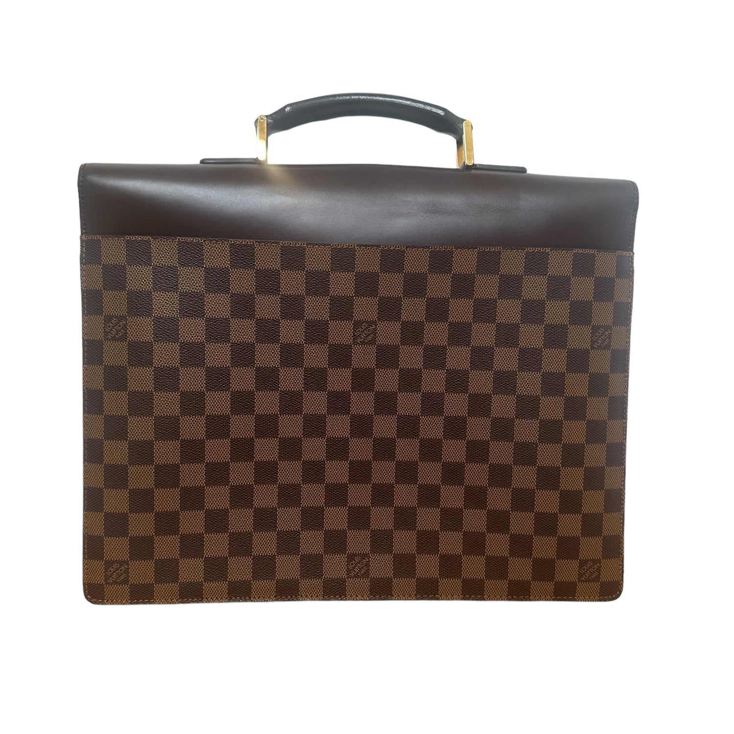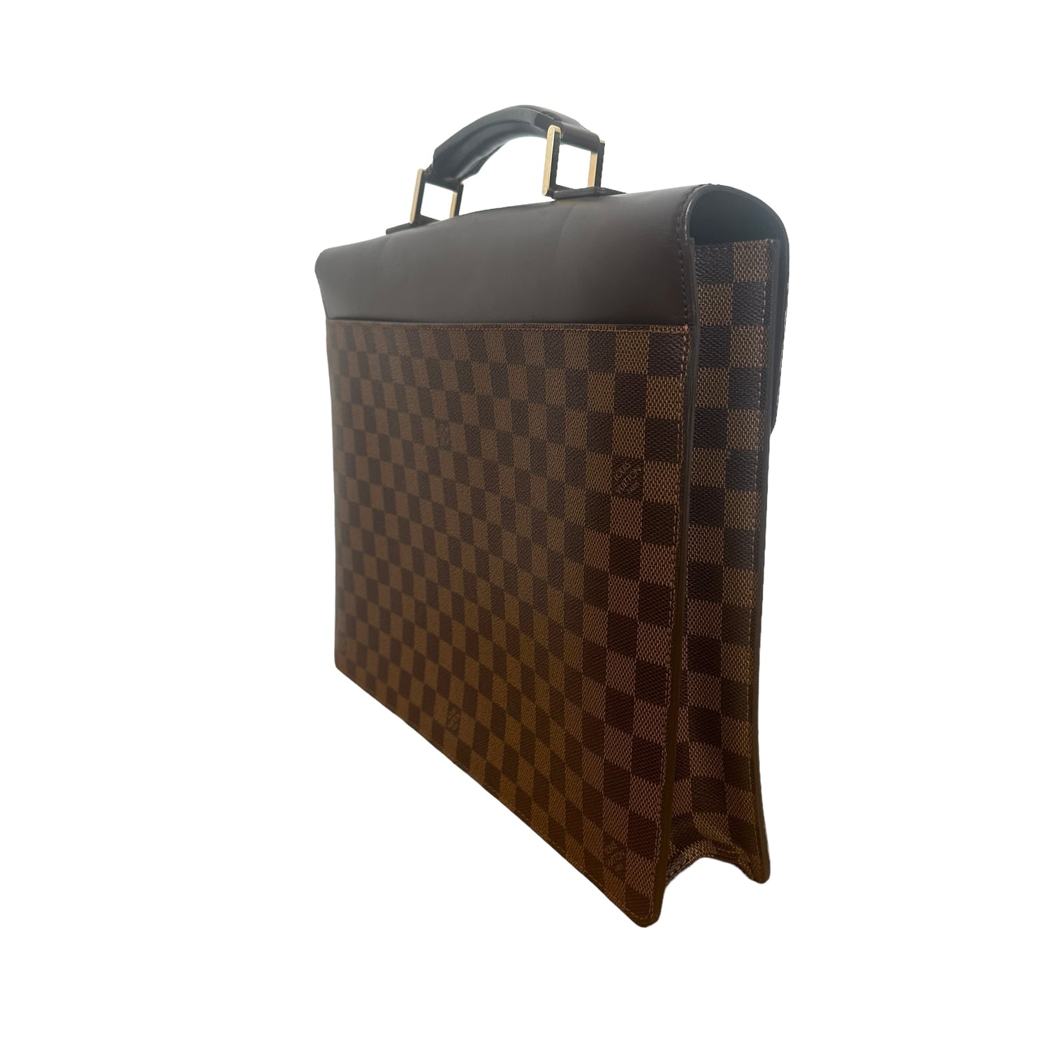 Louis Vuitton Damier briefcase. Brown coated canvas and leather. Gold-tone hardware.
