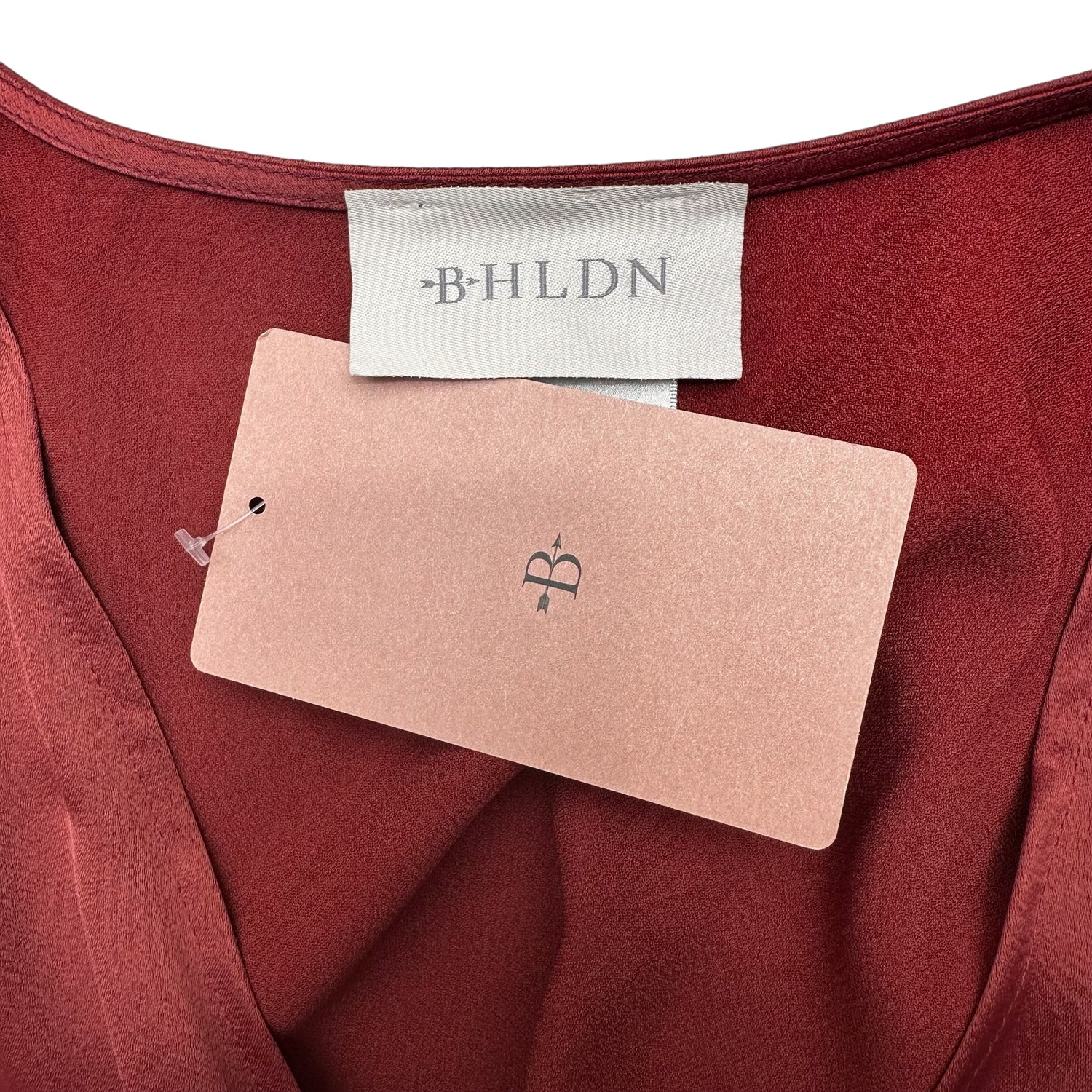 BHLDN long dress. Rich and deep copper color. Deep V-neck. Fitted waist.
