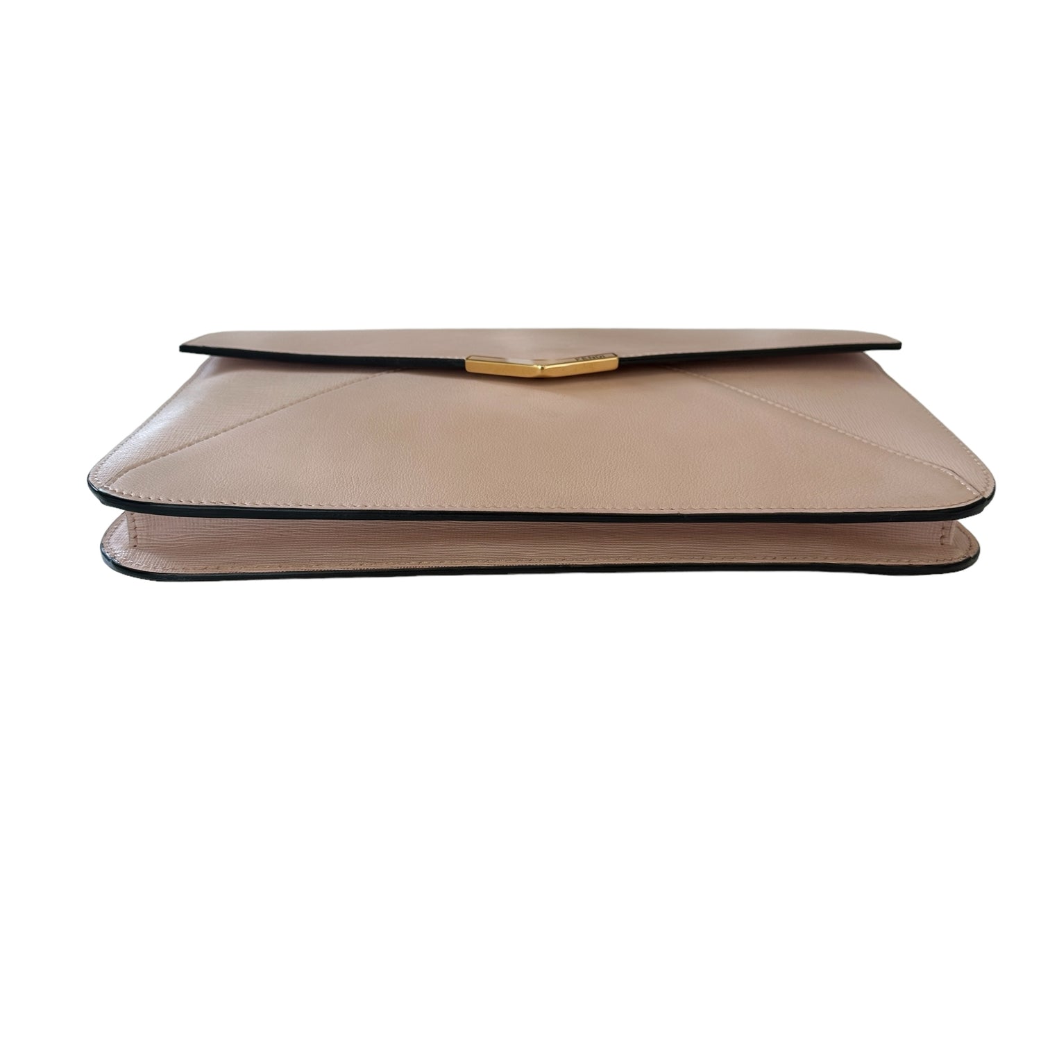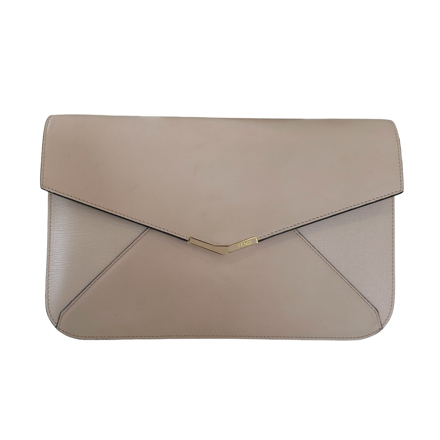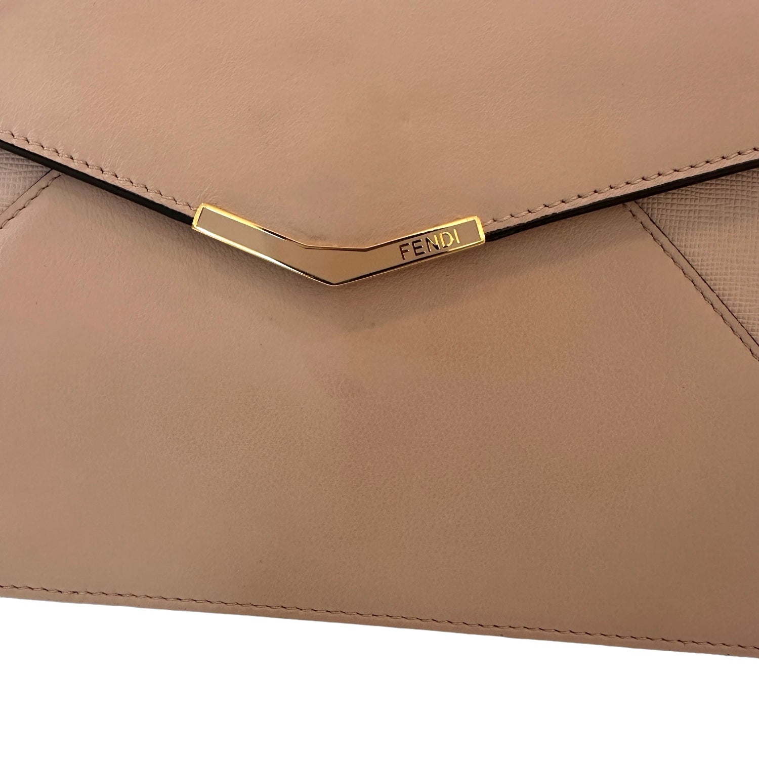 Fendi nude leather envelope. Two type of textured leather. Magnetic snap closure at top. Can be a wristlet or a clutch.