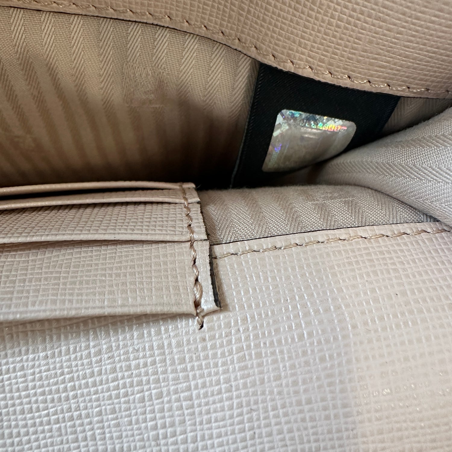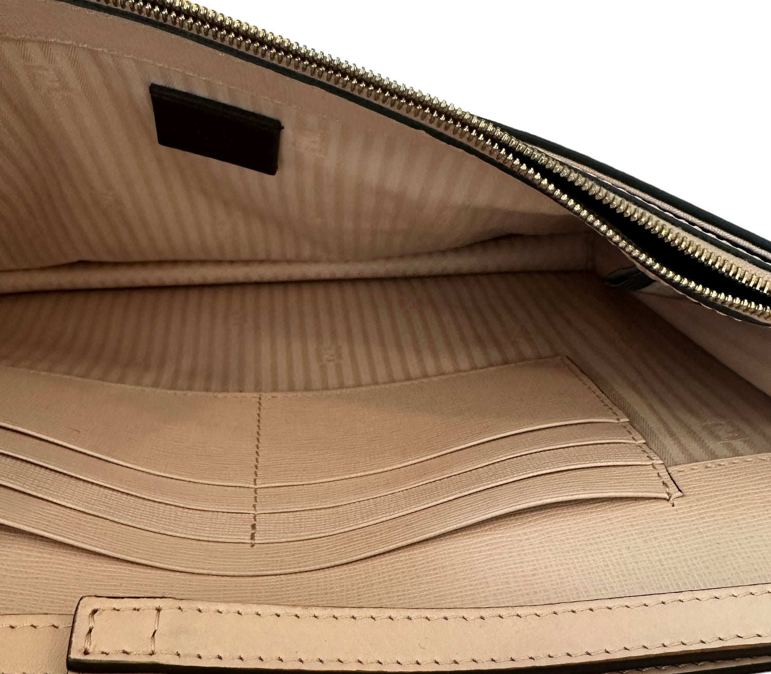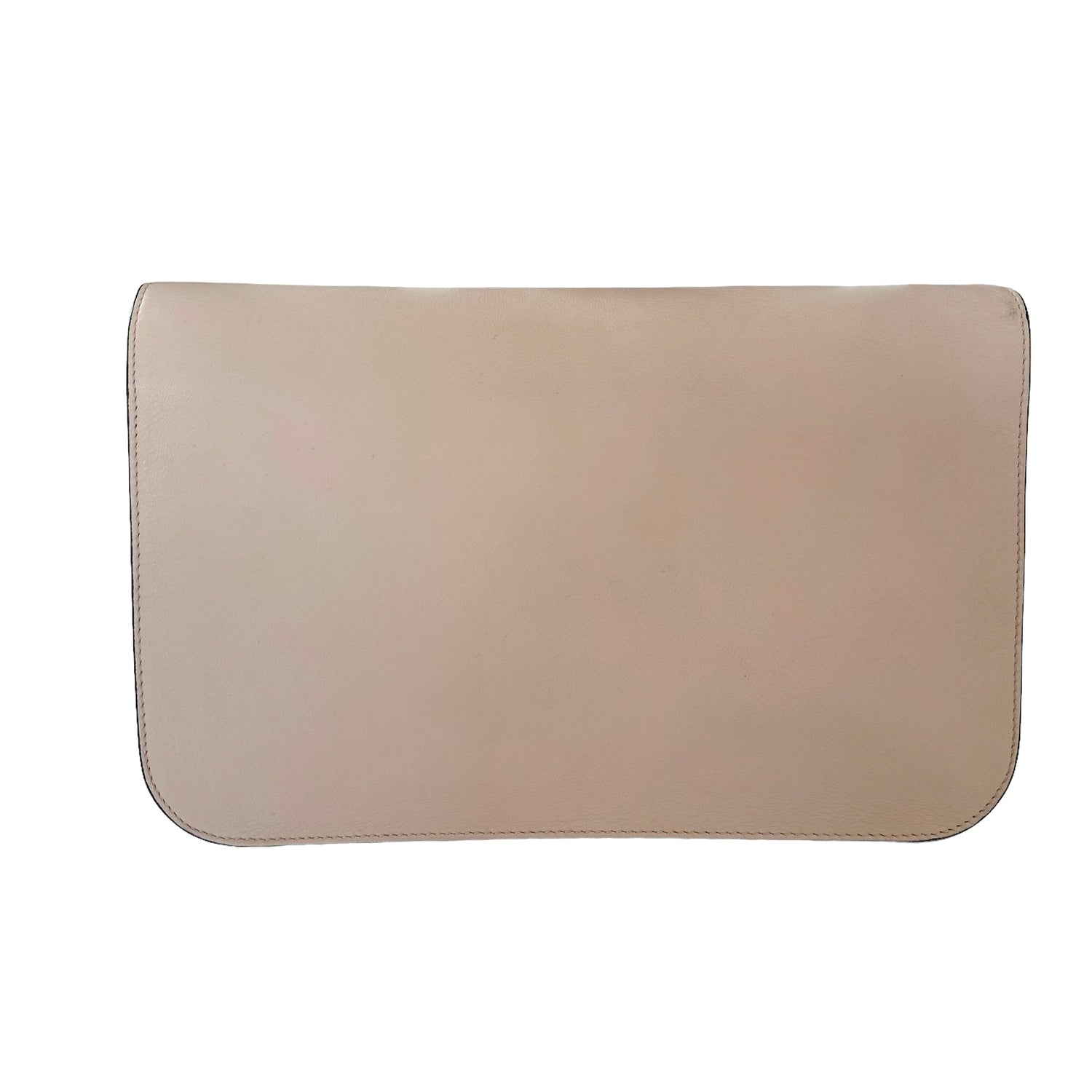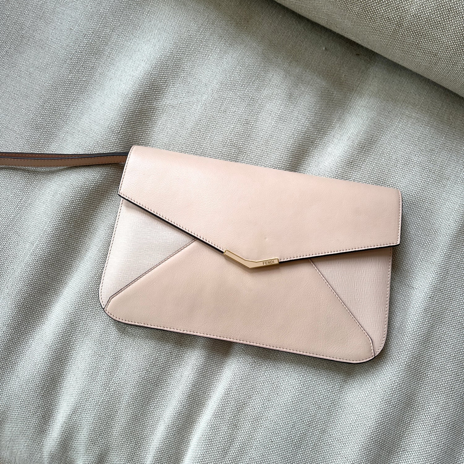 Fendi nude leather envelope. Two type of textured leather. Magnetic snap closure at top. Can be a wristlet or a clutch.
