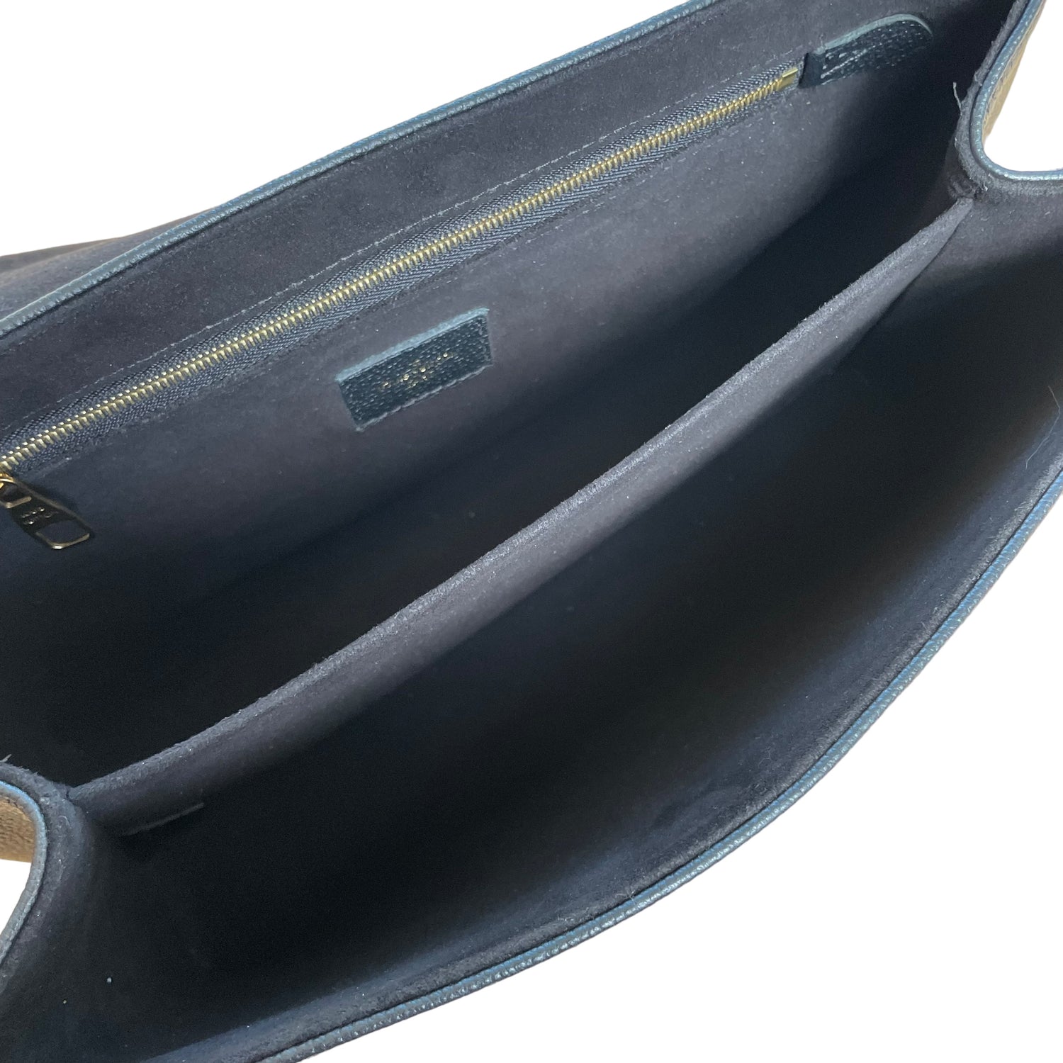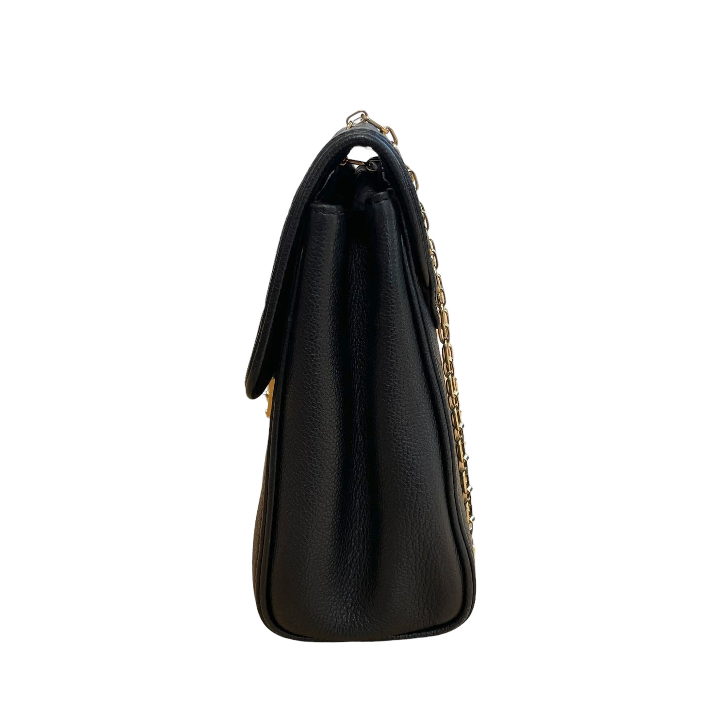 Louis Vuitton Empreinte Saint Germain shoulder bag in black leather with gold hardware. Two interior sections, front slit pocket, and zipper pocket. Comes with box.