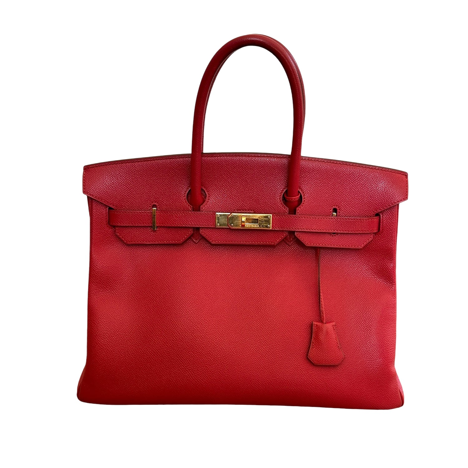 Hermes Birkin 35 bag. Red epsom leather with gold-plated hardware. Retourne stitching. Vintage from 2003 (G square stamp).