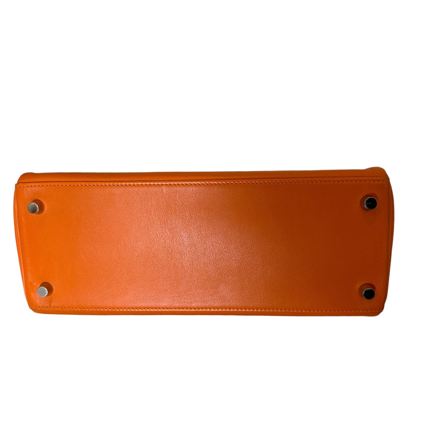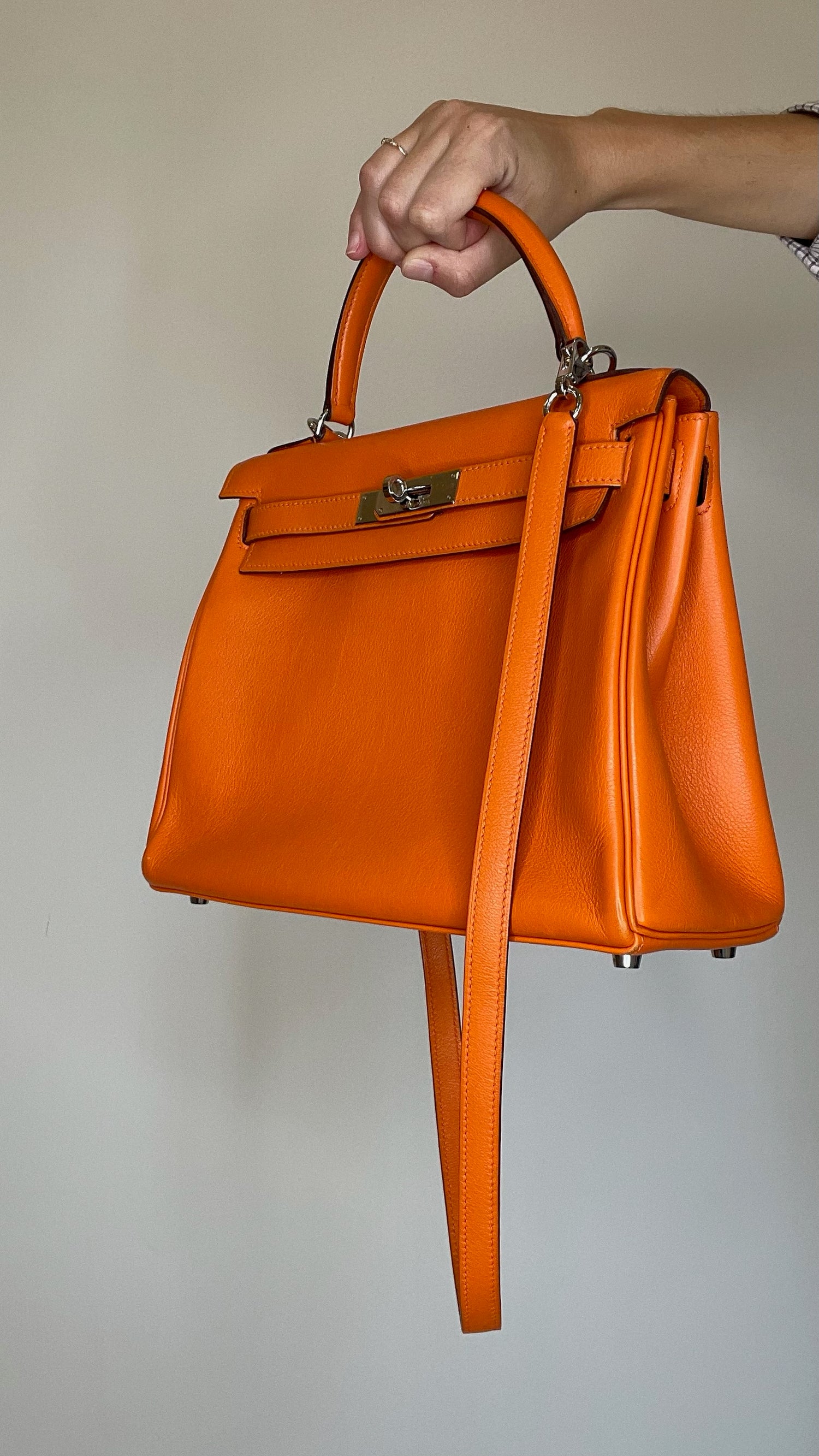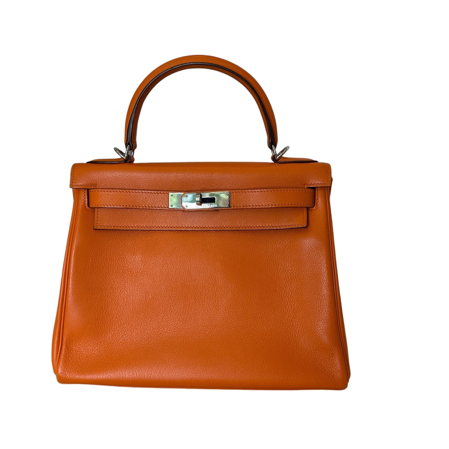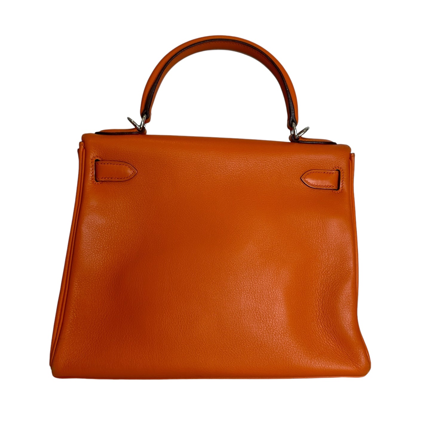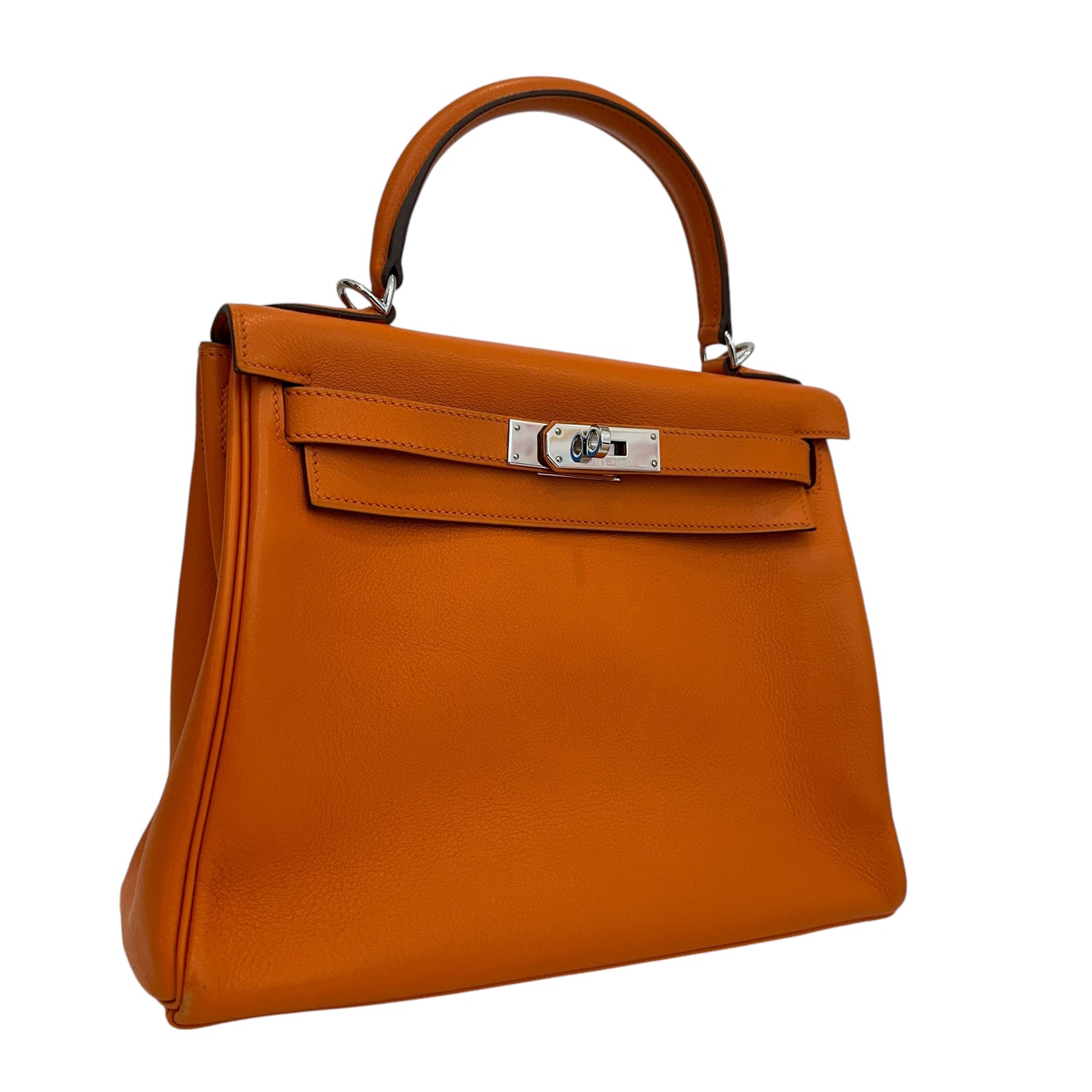 Hermes Kelly 28 bag. Swift leather in Orange d'H. Palladium hardware. 2006 (J Square stamp).