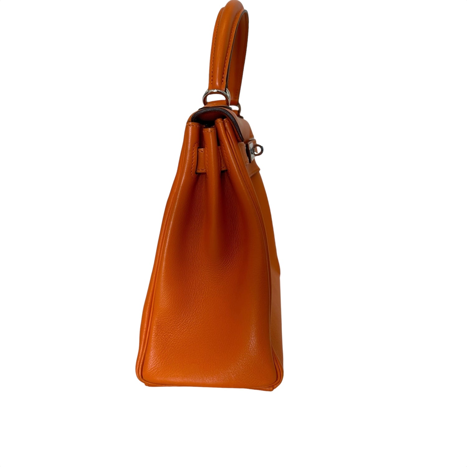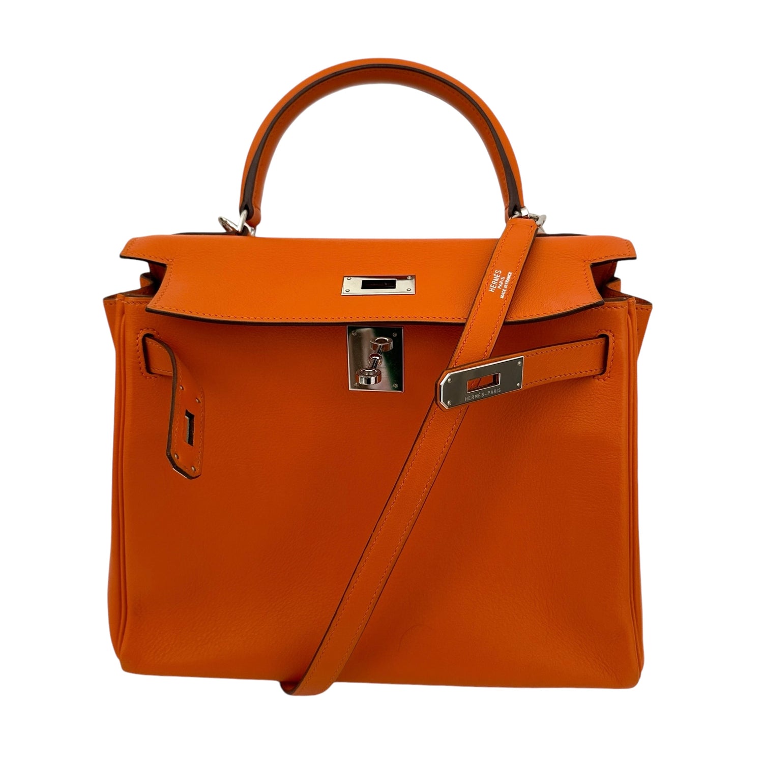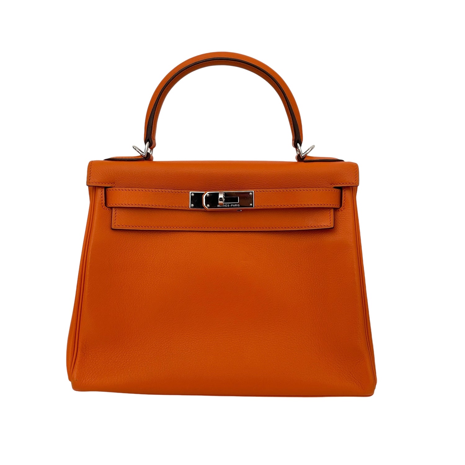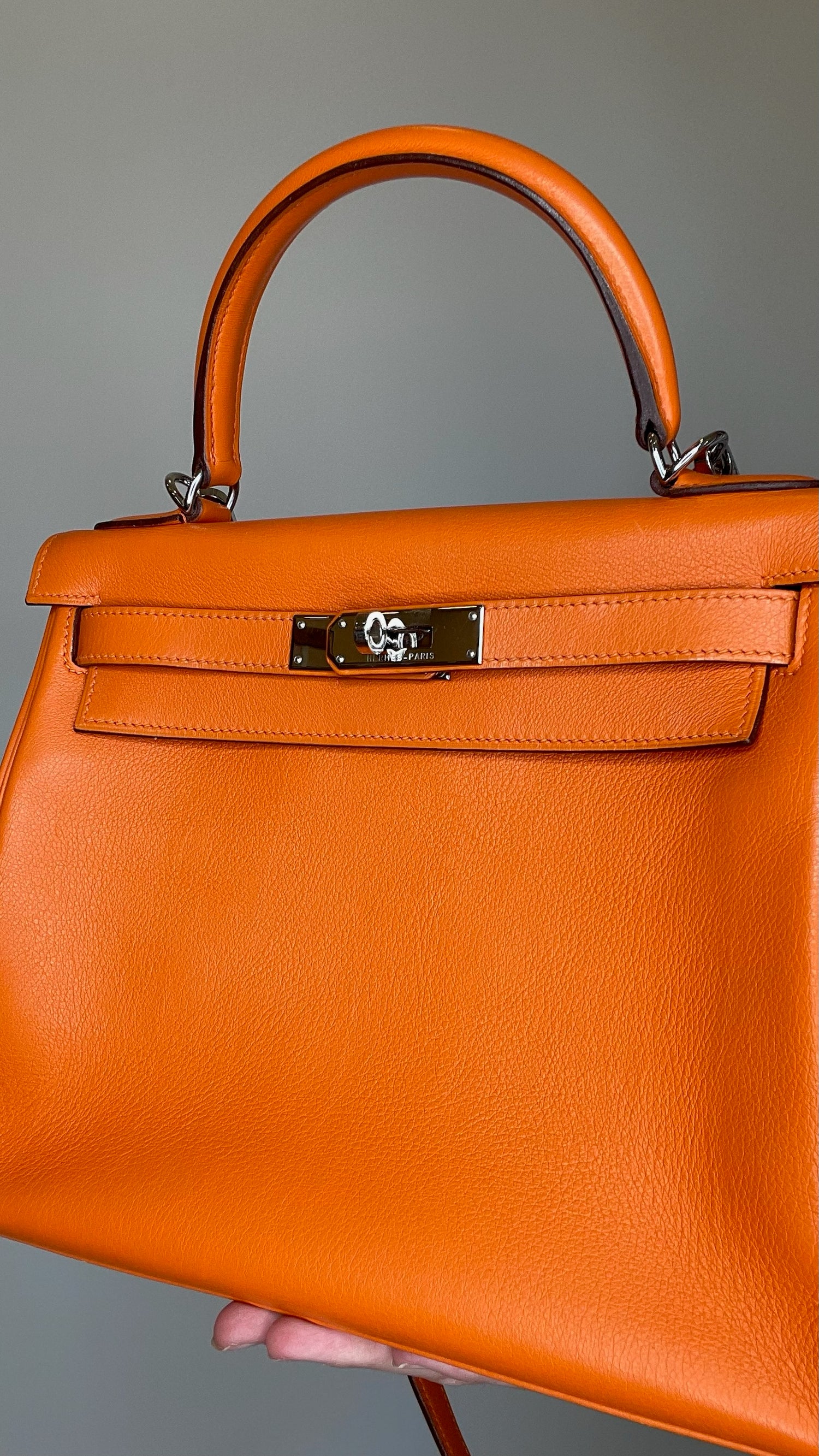 Hermes Kelly 28 bag. Swift leather in Orange d'H. Palladium hardware. 2006 (J Square stamp).