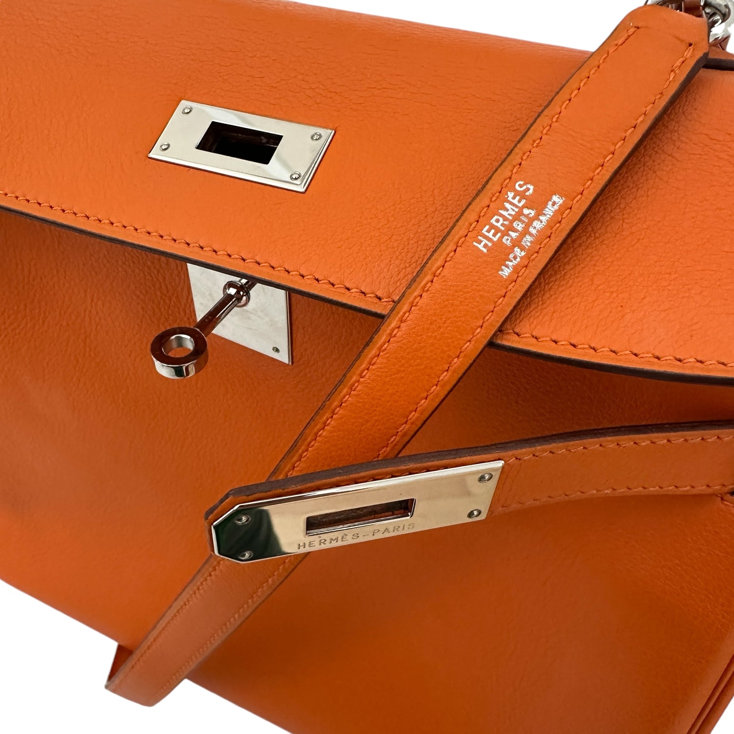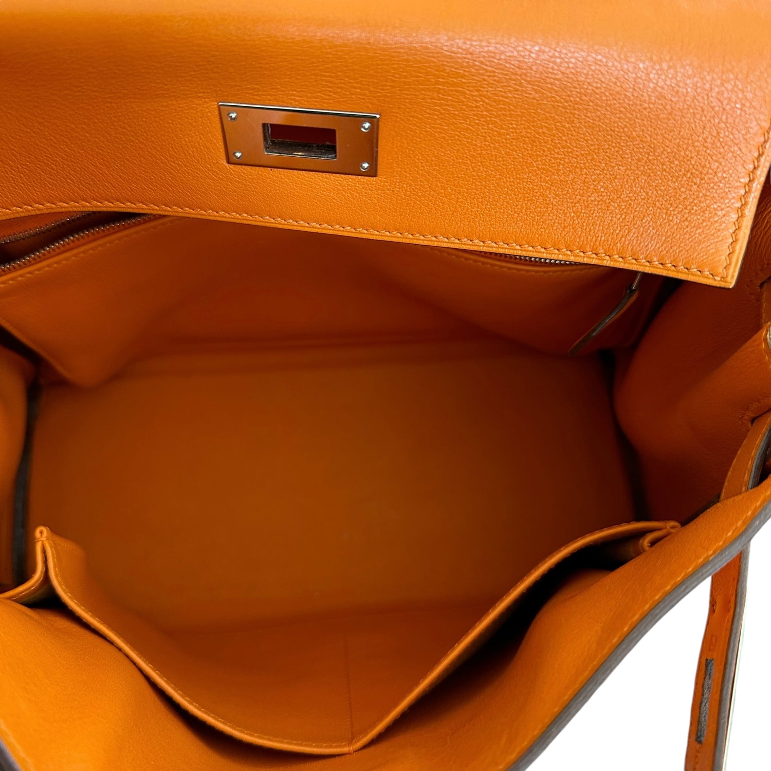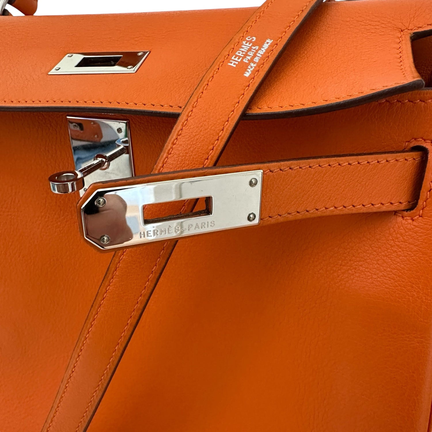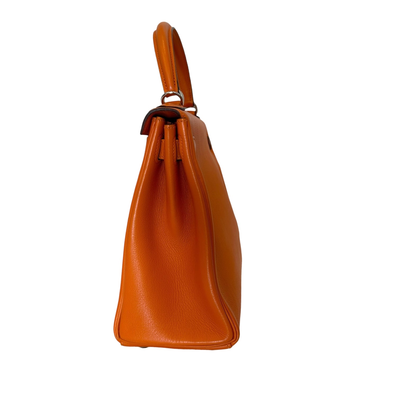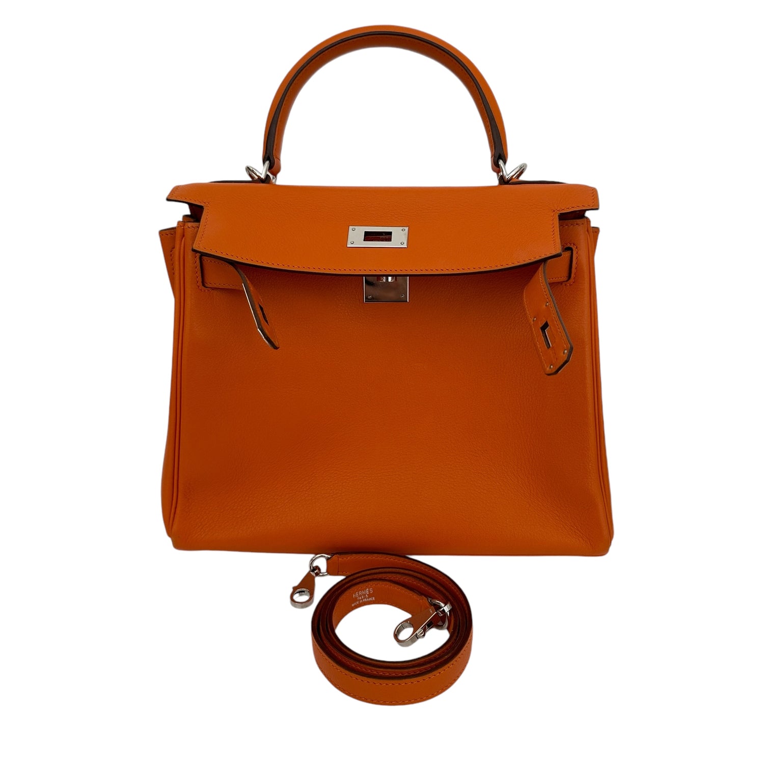 Hermes Kelly 28 bag. Swift leather in Orange d'H. Palladium hardware. 2006 (J Square stamp).