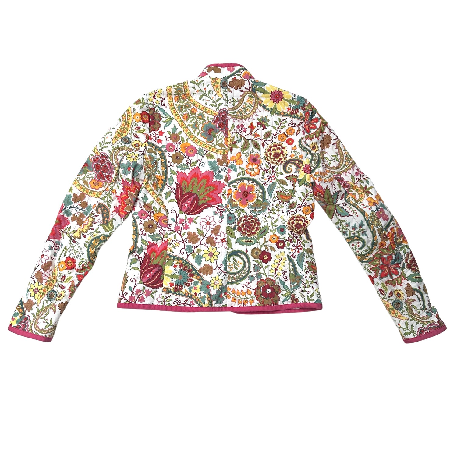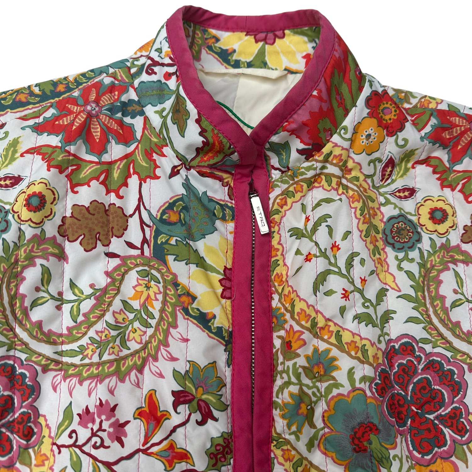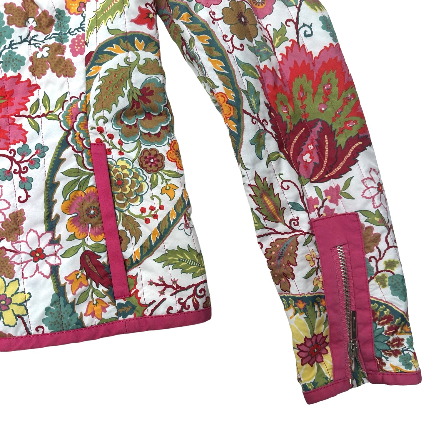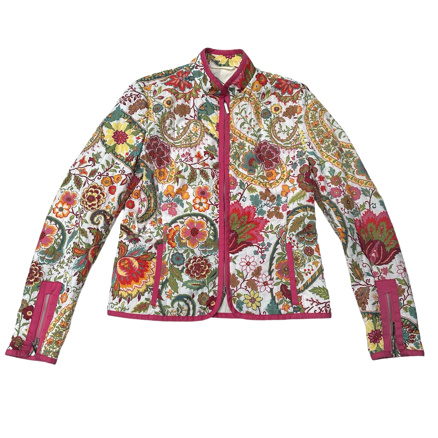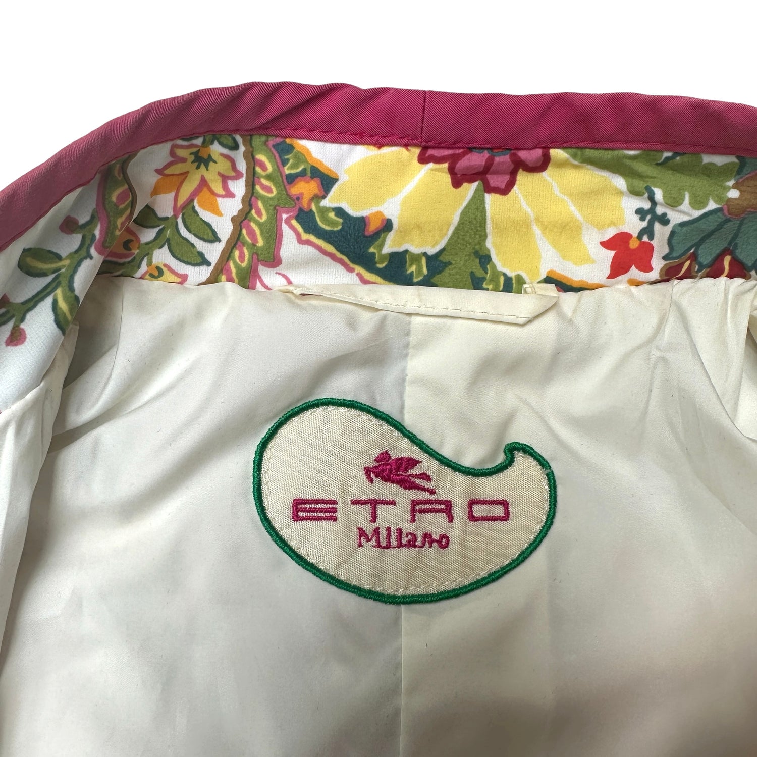 Etro pink and white floral pink jacket. Zip closure at front. Two pockets. Lightweight jacket perfect for mid season weather. Designer size 44.