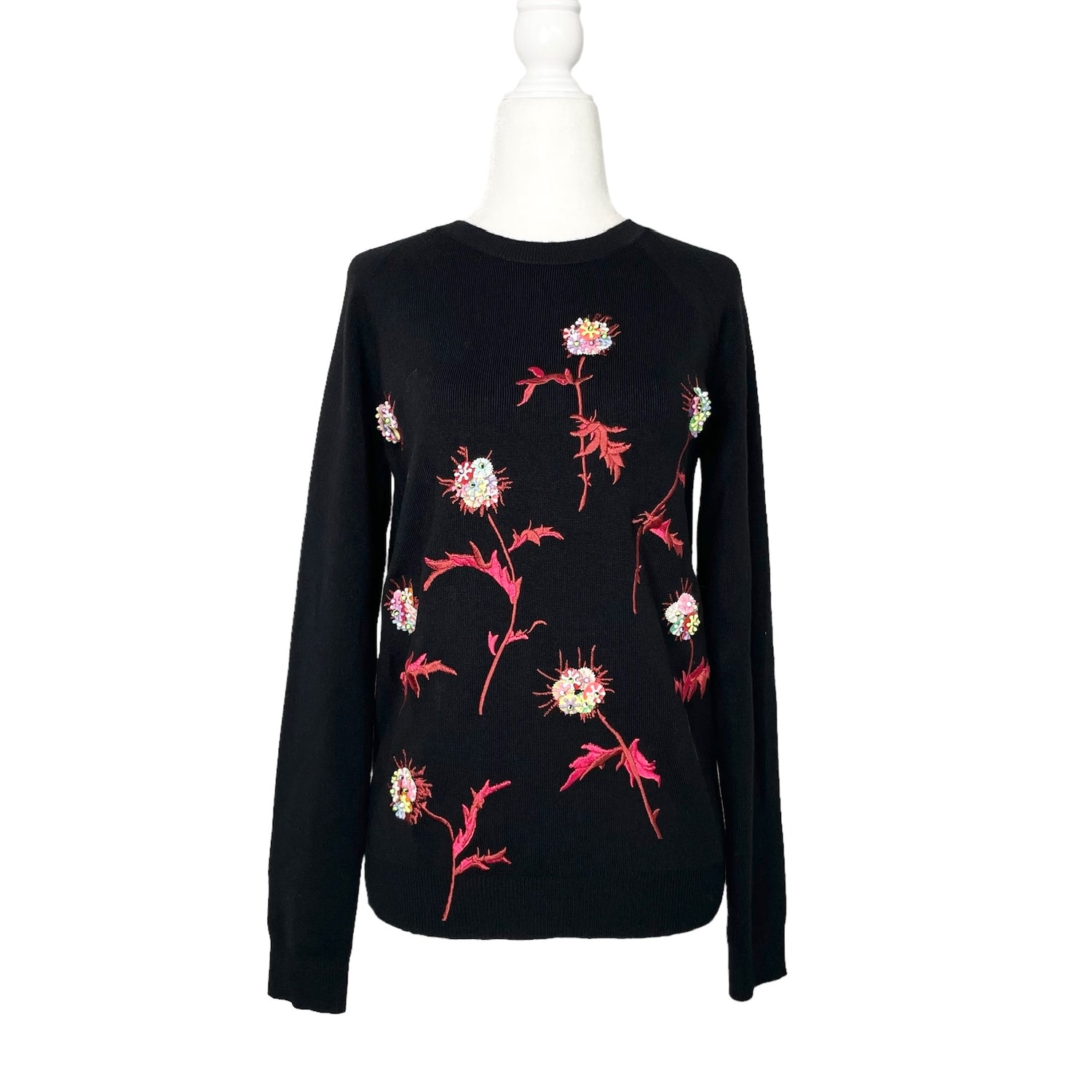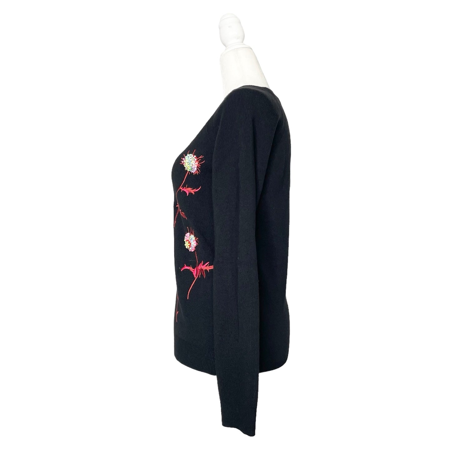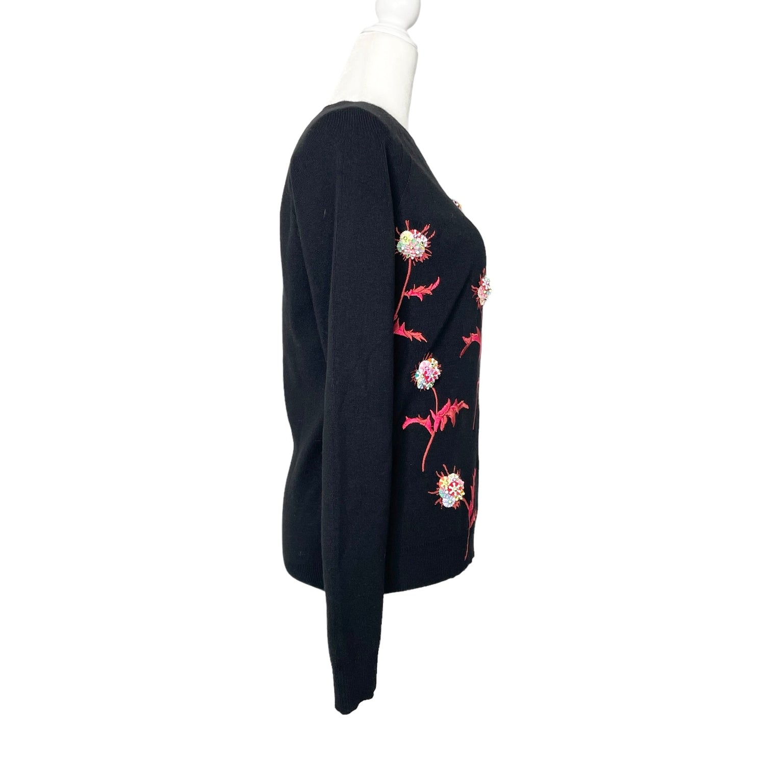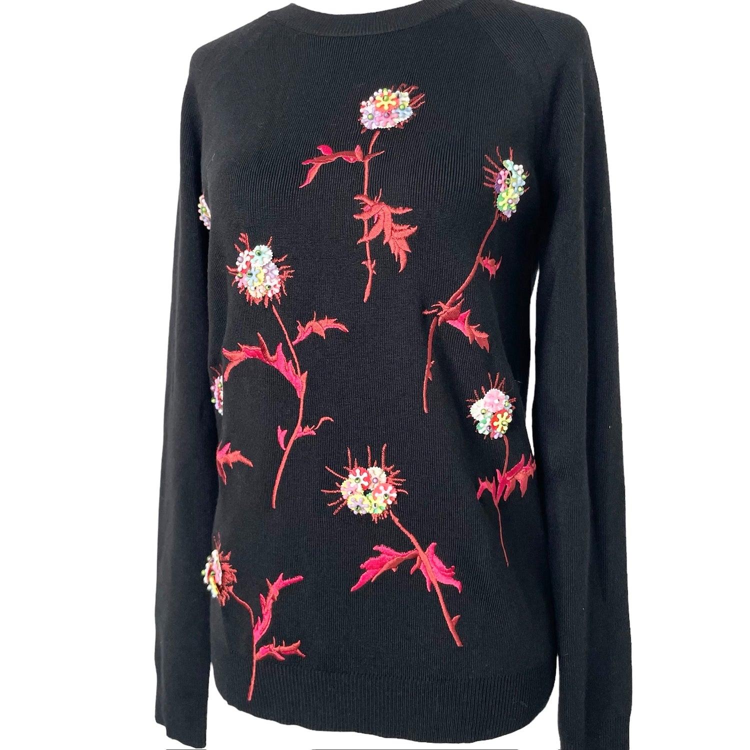 Kenzo black embellished sweater. Red embroidering and flower beading at front. Designer size small.
