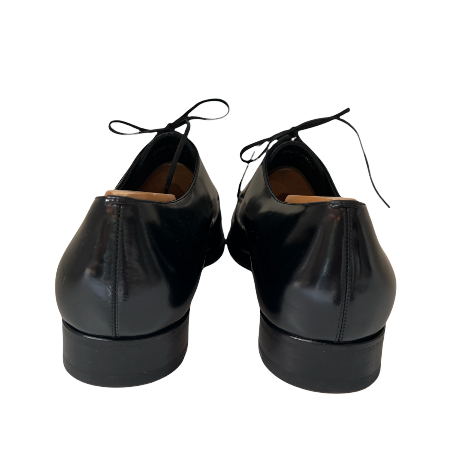 Dior Homme Leather derby shoes. Black leather. Semi-pointed toes. Lace-up closure at uppers. Designer size 44.