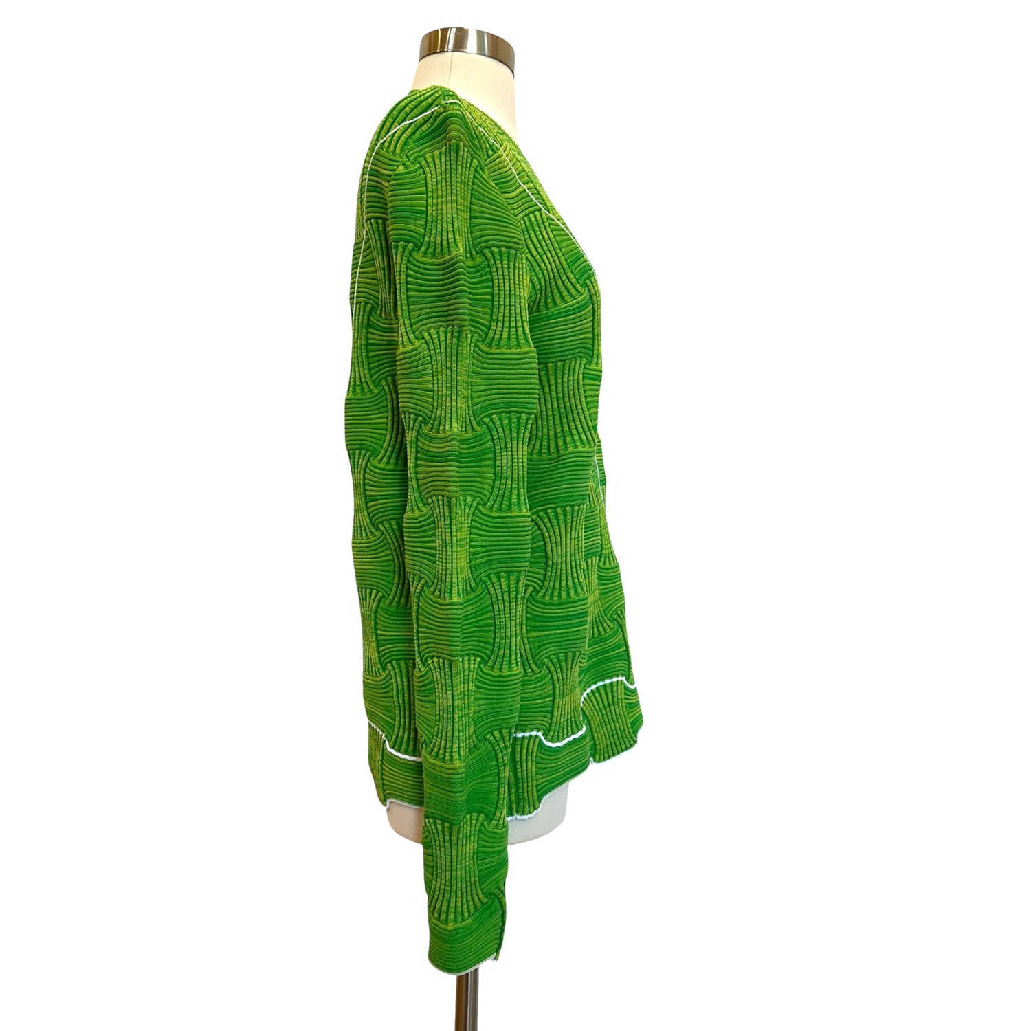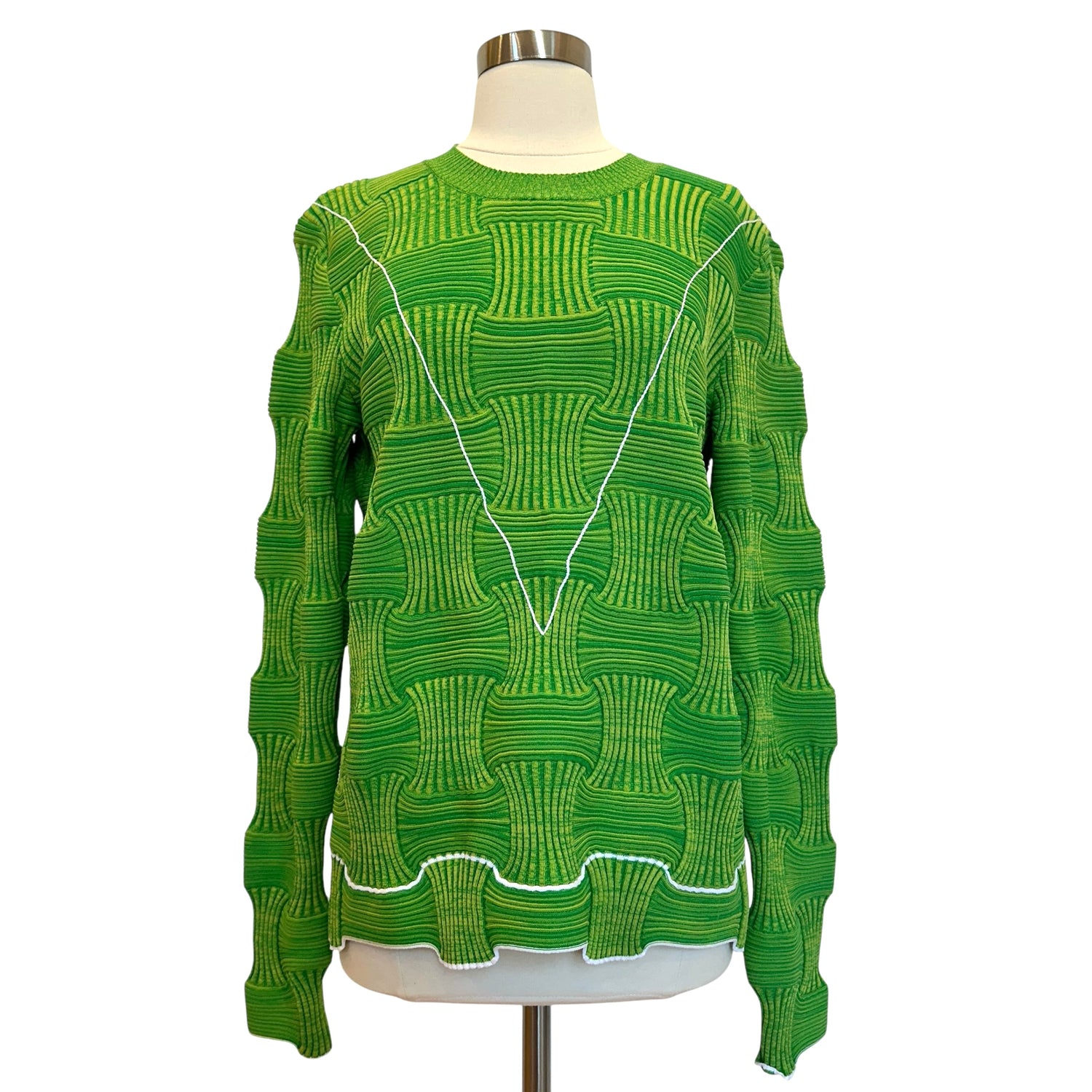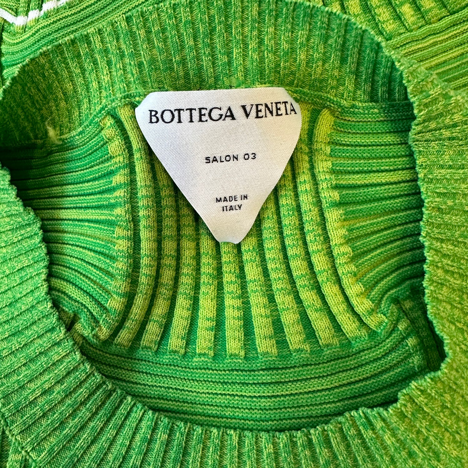 Bottega Veneta green intrecciato knit. Round neck. Stretchy fabric meant for a fitted look. Designer size medium.