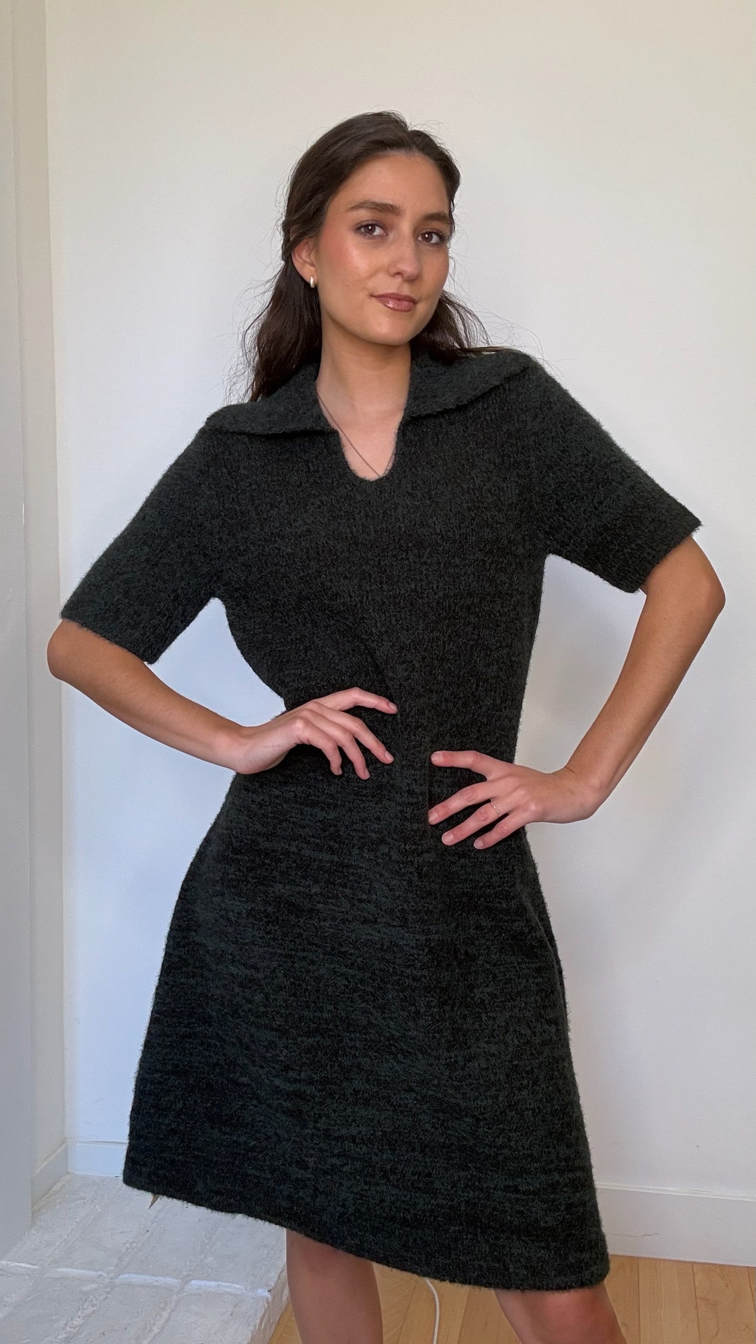 Proenza Schouler green dress. Pointed collar. Slip on sweater dress. Designer size Medium.