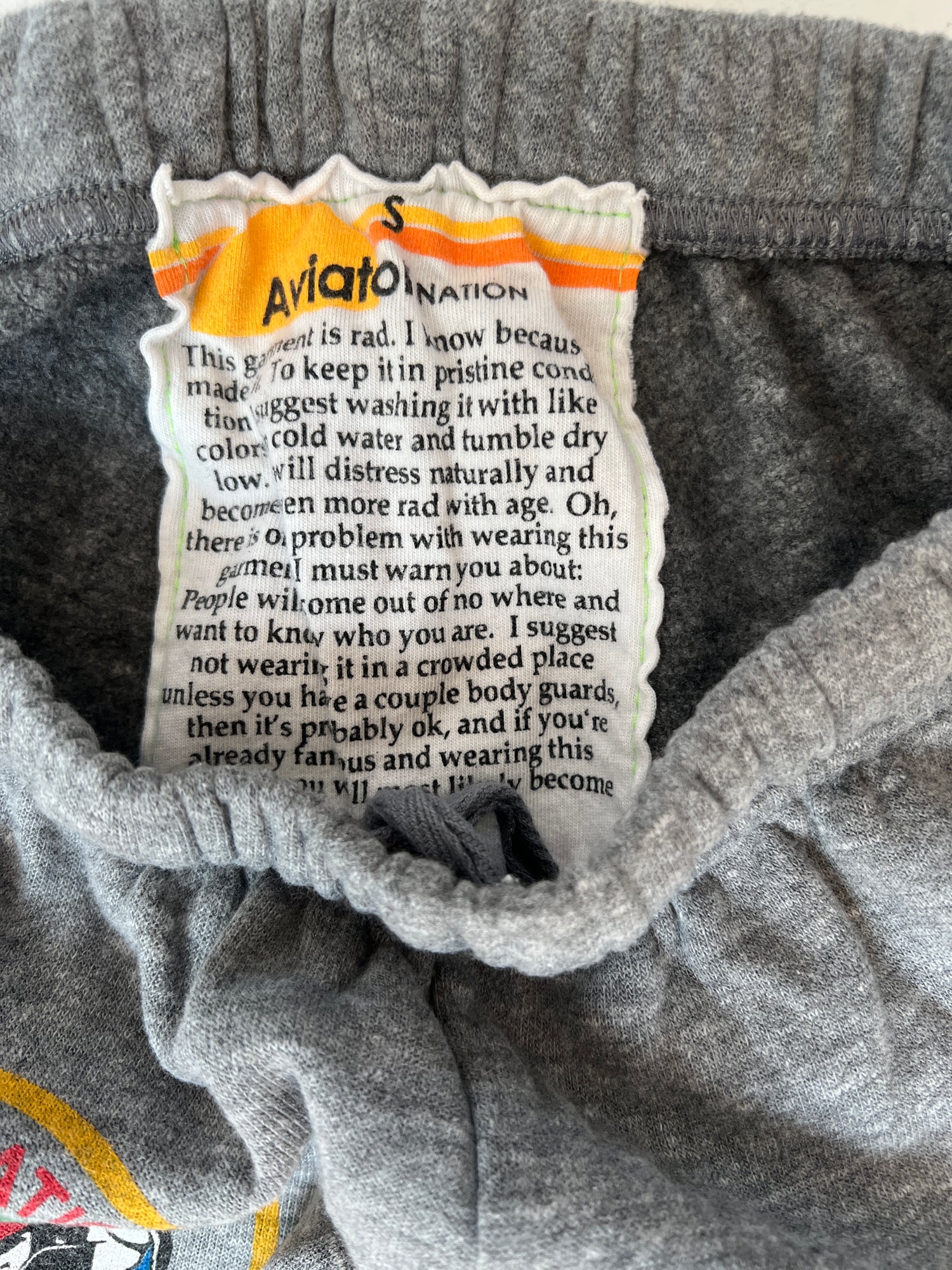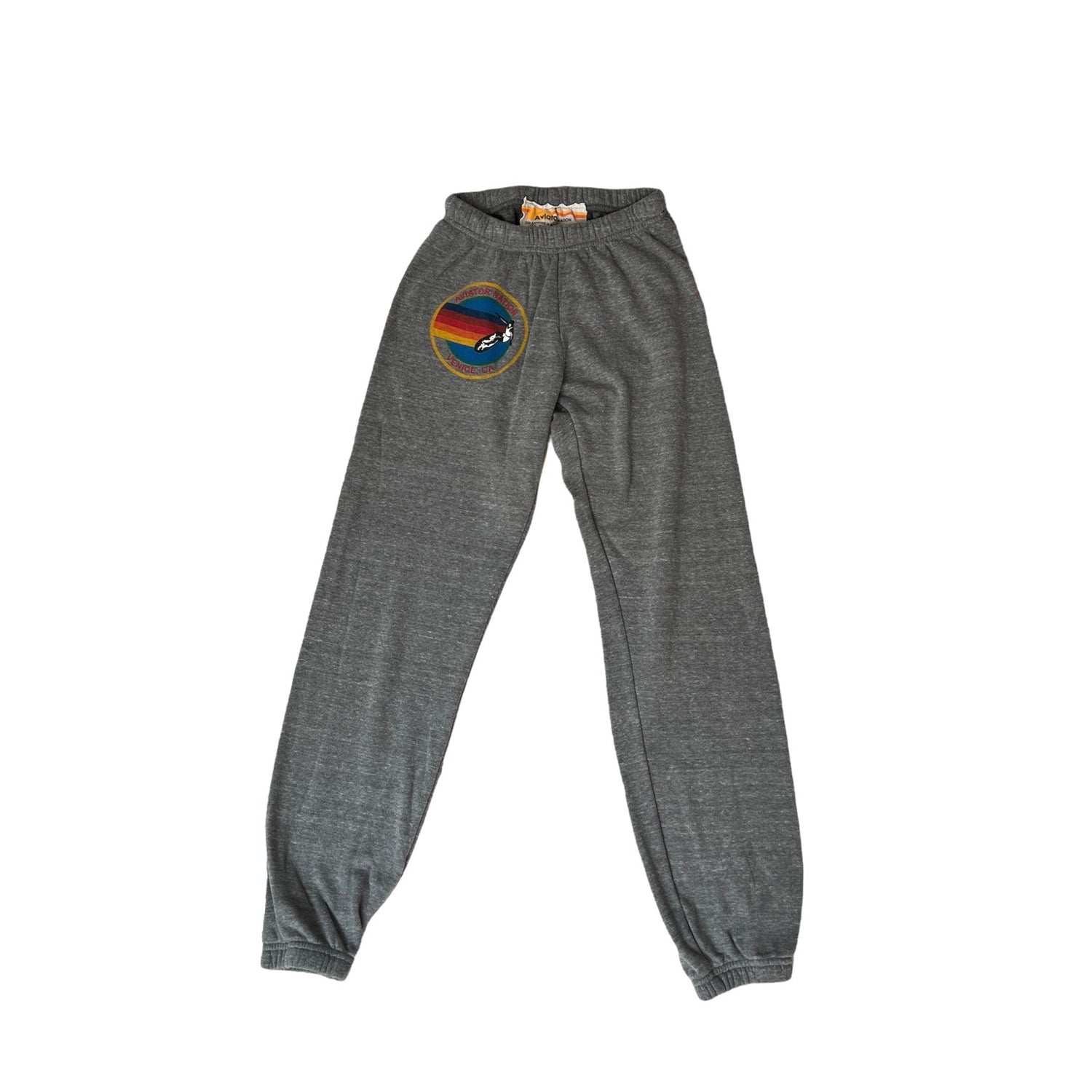 Iconic sweatpants from Aviator Nation. Multicolor brand name at side. Elasticized at wait and ankles. Embroidered logo at back and logo at front.