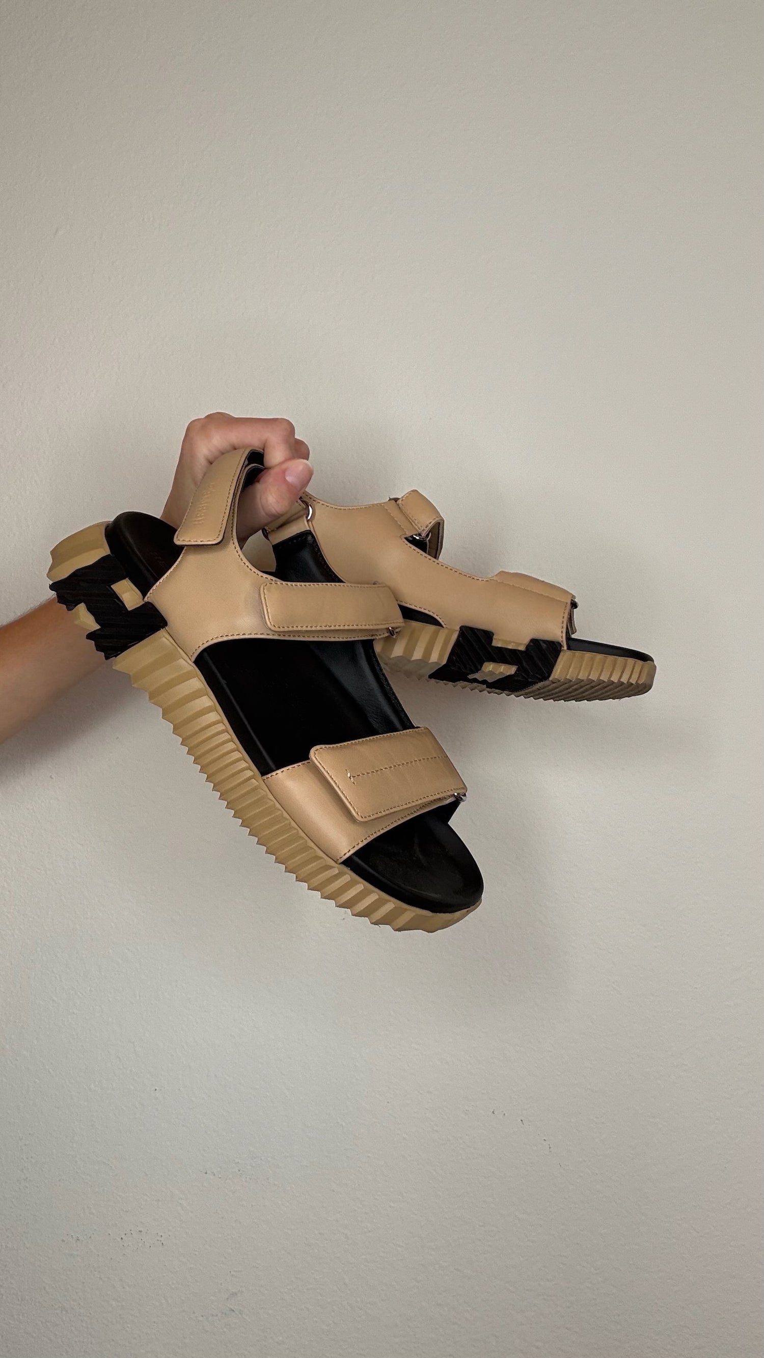 Hermes beige leather dad sandals w/ velcro straps. Designer size 39